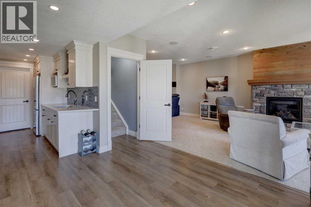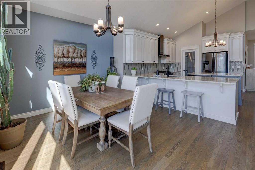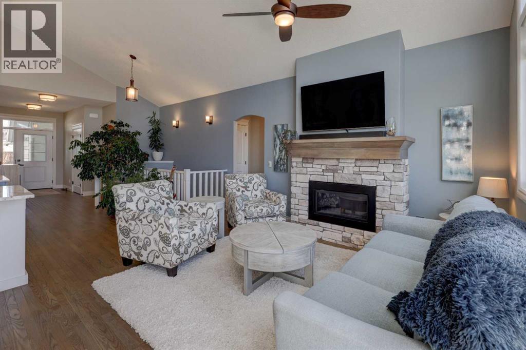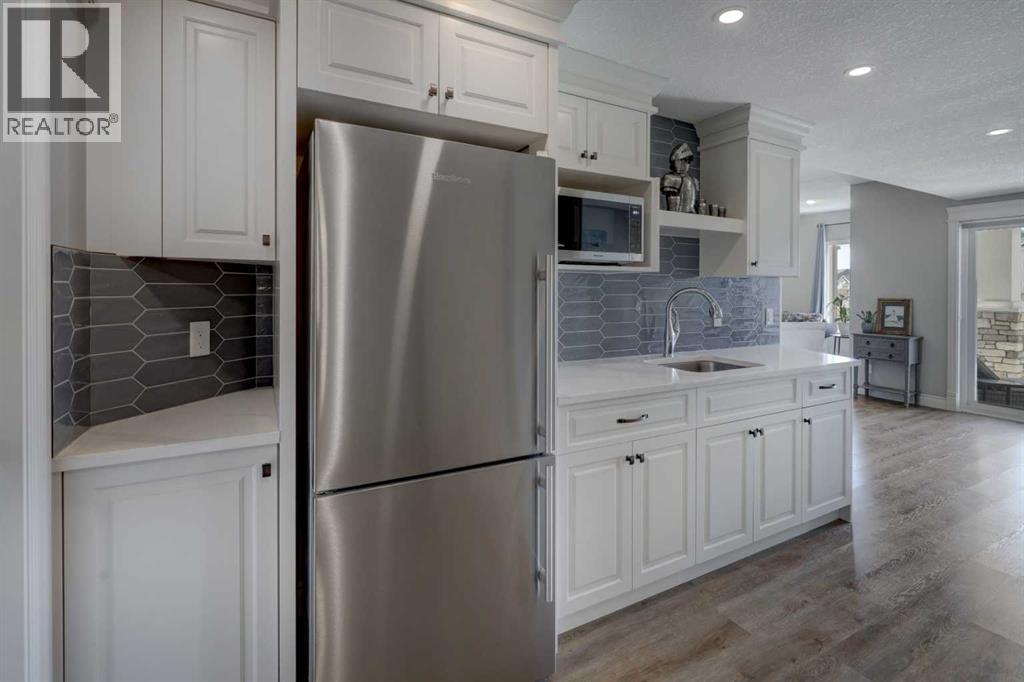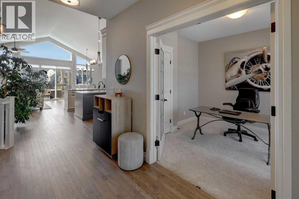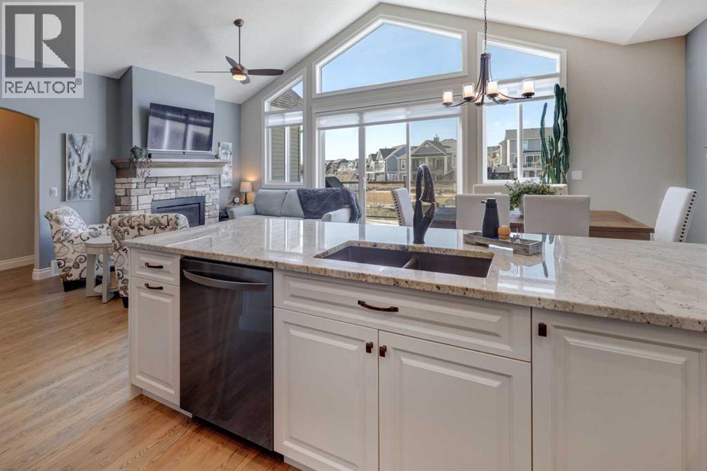 Welcome to this custom built McKee bungalow, proudly offered by the original owner and perfectly positioned on the waterfront in Bayside Estates. Featuring a triple tandem heated garage, this home offers exceptional space for all your vehicles, tools and toys. Step inside to a bright and inviting main floor, showcasing rich hardwood flooring and 9 foot ceilings throughout, complemented by central air conditioning to keep you comfortable year round.. Just off the entrance, a dedicated home office provides the ideal space for remote work or quiet study. As you move further in, the chef-inspired kitchen impresses with custom colors, including cream cabinetry, Black stainless steel appliances, granite countertops with a breakfast bar and a walk-in pantry with an elegant French door. The heart of the home is highlighted by soaring vaulted ceilings and stunning south-facing windows that flood the dining and living areas with natural light. A cozy fireplace creates the perfect ambiance for relaxing evenings. The spacious primary retreat offers a true escape, complete with a luxurious 5 piece ensuite featuring a soaker tub, separate shower, dual vanities and a walk in closet. Step out from the living room onto the expansive upper deck, finished with durable Duradek, where you can take in peaceful waterfront views. A convenient 2-piece bathroom and main floor laundry complete this level. Downstairs, the fully developed walkout basement is designed for entertaining, featuring 9 foot ceilings and a massive recreation and games area with a second fireplace. A custom-built wet bar and kitchenette add both function and flair. This level also includes two additional bedrooms and a 4-piece bathroom. Outside, your private backyard oasis awaits—complete with a concrete patio and direct water access. Whether you're considering a future dock or simply enjoying the setting, this space is perfect for morning coffee or unwinding with a glass of wine in the evening. Located just a short w alk to Nose Creek School (K–4) and close to parks, playgrounds, sports fields, shopping, restaurants, and everyday amenities, this home offers an unbeatable lifestyle. Waterfront. Luxury. Location. This one truly has it all. (id:51989)