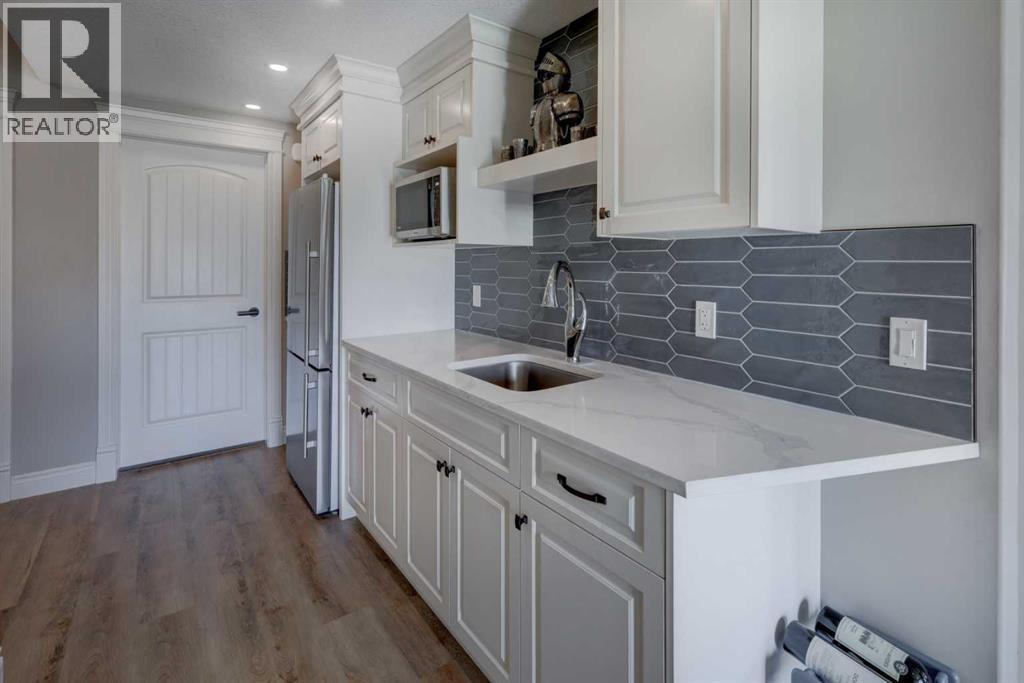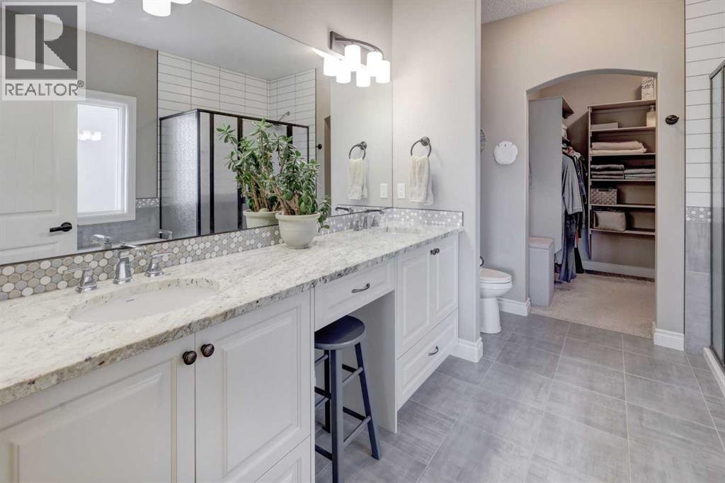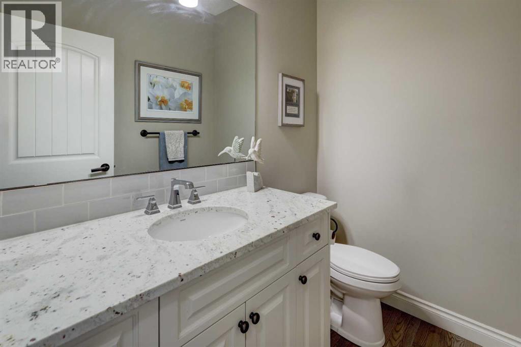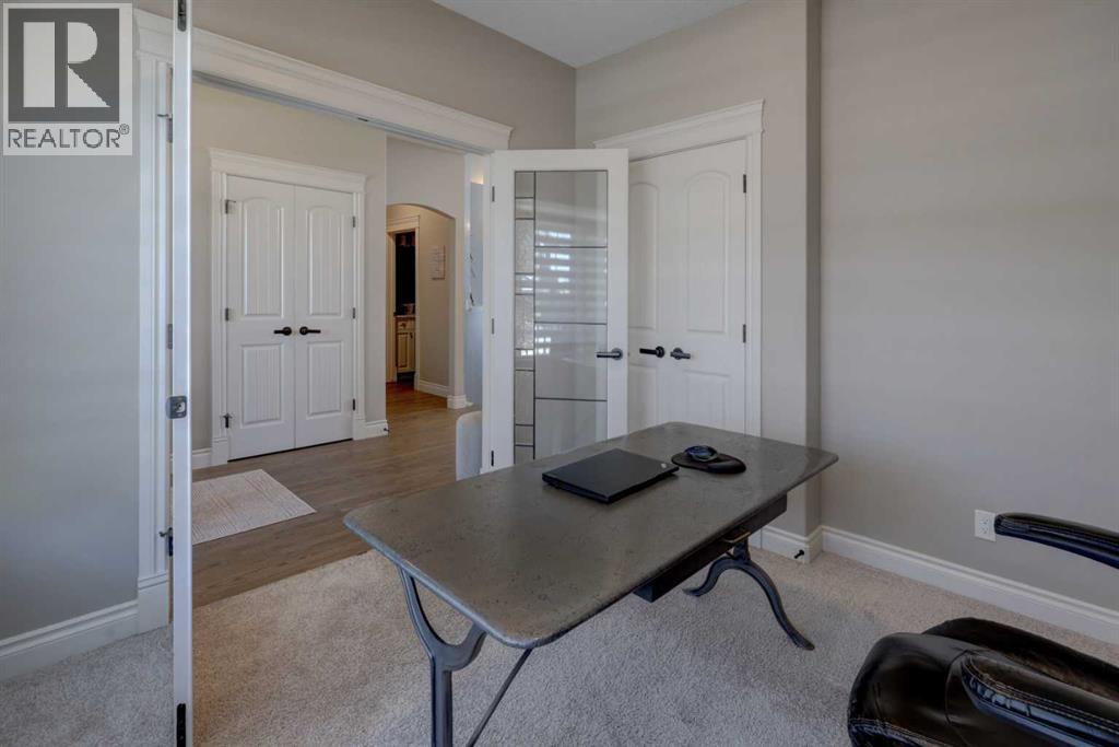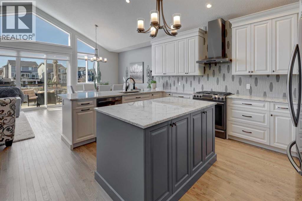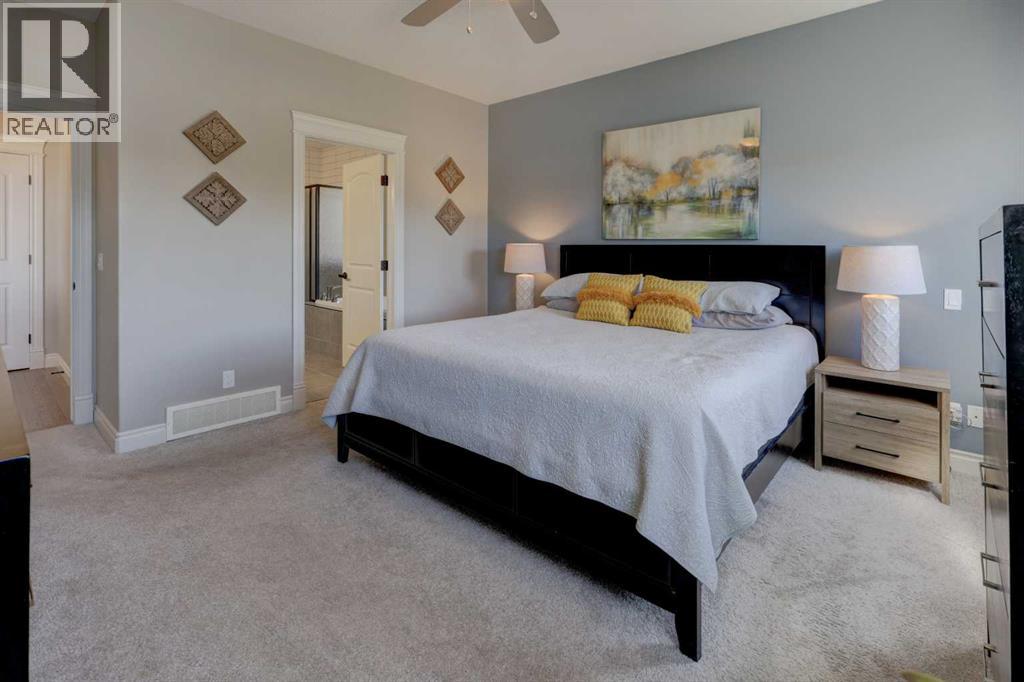 Welcome to this custom built McKee bungalow, proudly offered by the original owner and perfectly positioned on the waterfront in Bayside Estates. Featuring a triple tandem heated garage, this home offers exceptional space for all your vehicles, tools and toys. Step inside to a bright and inviting main floor, showcasing rich hardwood flooring and 9 foot ceilings throughout, complemented by central air conditioning to keep you comfortable year round.. Just off the entrance, a dedicated home office provides the ideal space for remote work or quiet study. As you move further in, the chef-inspired kitchen impresses with custom colors, including cream cabinetry, Black stainless steel appliances, granite countertops with a breakfast bar and a walk-in pantry with an elegant French door. The heart of the home is highlighted by soaring vaulted ceilings and stunning south-facing windows that flood the dining and living areas with natural light. A cozy fireplace creates the perfect ambiance for relaxing evenings. The spacious primary retreat offers a true escape, complete with a luxurious 5 piece ensuite featuring a soaker tub, separate shower, dual vanities and a walk in closet. Step out from the living room onto the expansive upper deck, finished with durable Duradek, where you can take in peaceful waterfront views. A convenient 2-piece bathroom and main floor laundry complete this level. Downstairs, the fully developed walkout basement is designed for entertaining, featuring 9 foot ceilings and a massive recreation and games area with a second fireplace. A custom-built wet bar and kitchenette add both function and flair. This level also includes two additional bedrooms and a 4-piece bathroom. Outside, your private backyard oasis awaits—complete with a concrete patio and direct water access. Whether you're considering a future dock or simply enjoying the setting, this space is perfect for morning coffee or unwinding with a glass of wine in the evening. Located just a short w alk to Nose Creek School (K–4) and close to parks, playgrounds, sports fields, shopping, restaurants, and everyday amenities, this home offers an unbeatable lifestyle. Waterfront. Luxury. Location. This one truly has it all. (id:51989)