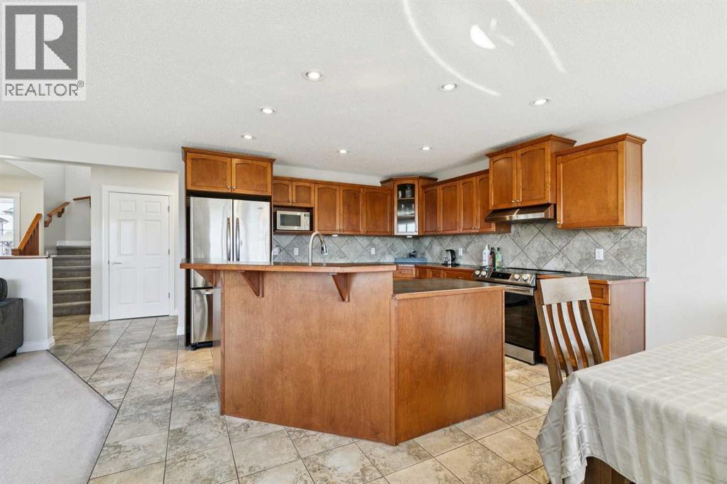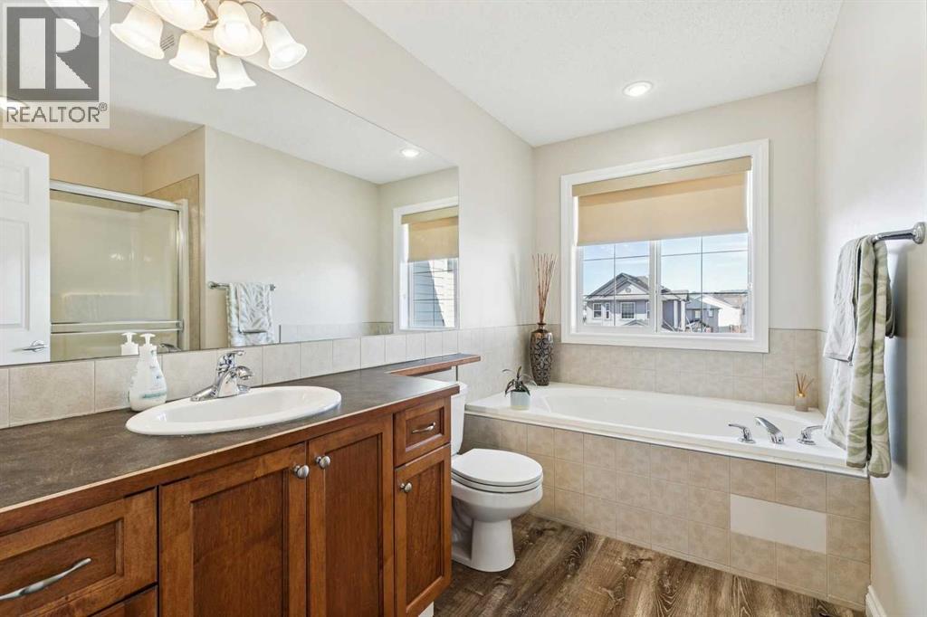 Bright, open two-story home featuring neutral finishes, air conditioning, and a fully finished walkout basement with Illegal suite. The main floor offers a functional kitchen with good natural light and an efficient layout, flowing into the main living areas. Upstairs includes a versatile bonus room, providing additional space for a family room, office, or play area. The primary bedroom features a 4-piece ensuite with durable vinyl plank flooring. Additional highlights include a Kinetico water softener system and a hot water heater replaced in 2018. A practical home with thoughtful upgrades. (id:51989)