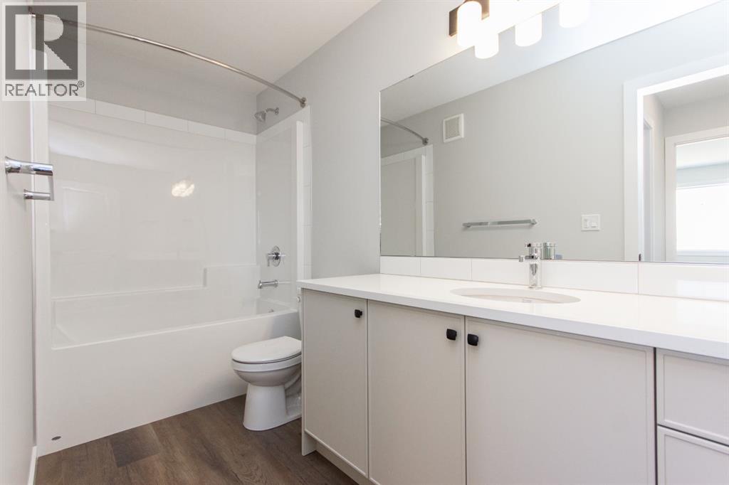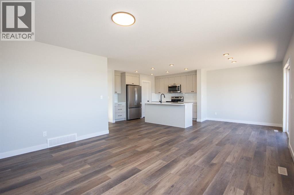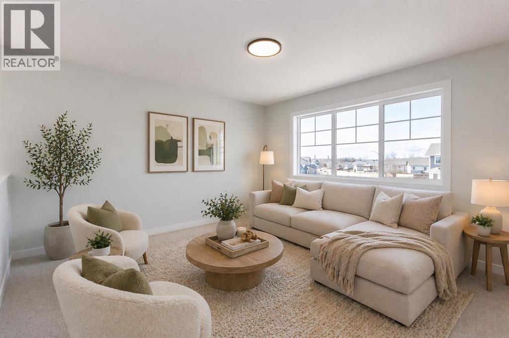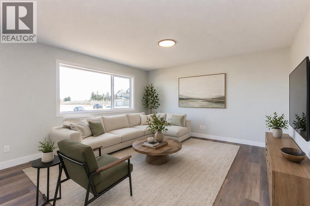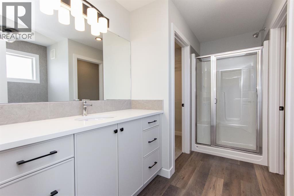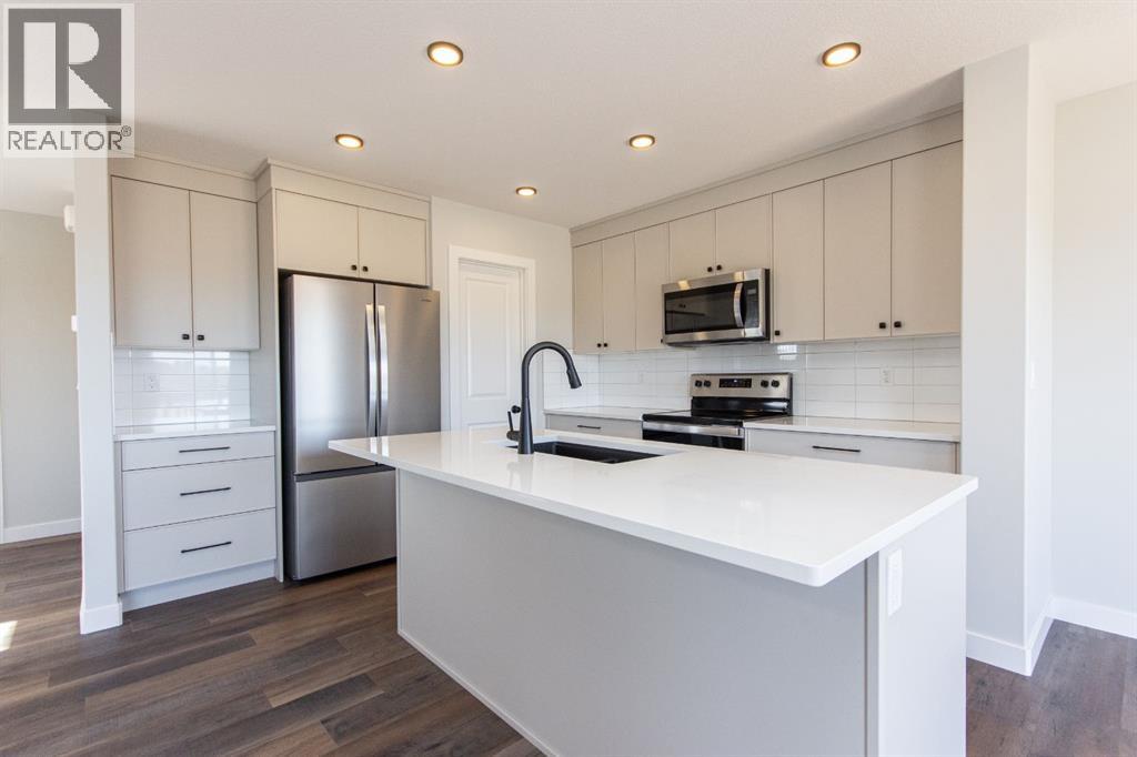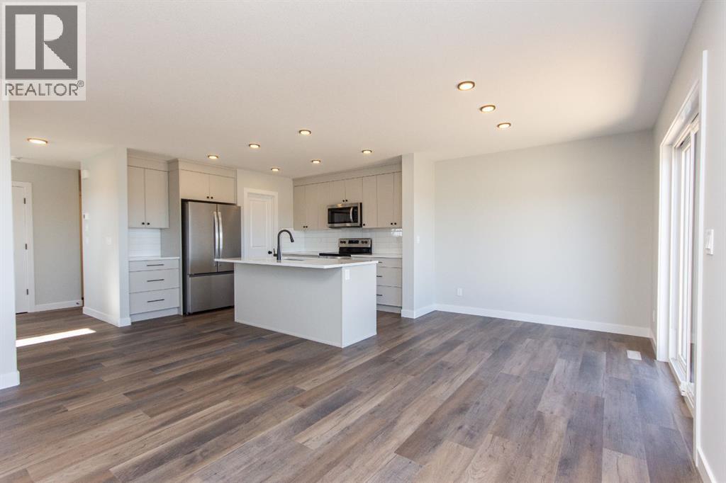 Only steps from a huge park and playground reserve, and within walking distance to the high school, this brand new Laebon built home in beautiful Meadowlark Estates is available for immediate possession! Designed with family in mind, this spacious 1896 sq ft floor plan offers a wide open living space with vinyl plank flooring, large windows, and modern finishes throughout. A nicely appointed kitchen offers raised cabinetry, stainless steel appliances, quartz countertops, a large island with an eating bar, and a walk in pantry. The living area is bright and spacious, and the adjacent dining area offers access to the back deck through large sliding patio doors. Upstairs you'll find a spacious bonus room, two nicely sized kids rooms, a shared 4 pce bathroom, and conveniently located laundry. The large primary suite offers a 4 pce ensuite with a large soaker tub, walk in shower, private water closet, and a spacious walk in closet. The attached garage is insulated, drywalled, and taped and has a floor sump to keep your floor dry in the winter. If you need more space, the builder can complete the basement development for you, and allowances can also be provided for a washer and dryer to make this a completely move in ready package. A poured concrete front driveway, front sod, and rear topsoil to grade will be completed by the builder as weather permits. 1 year builder warranty and 10 year Alberta New Home Warranty are included. Taxes have yet to be assessed. (id:51989)