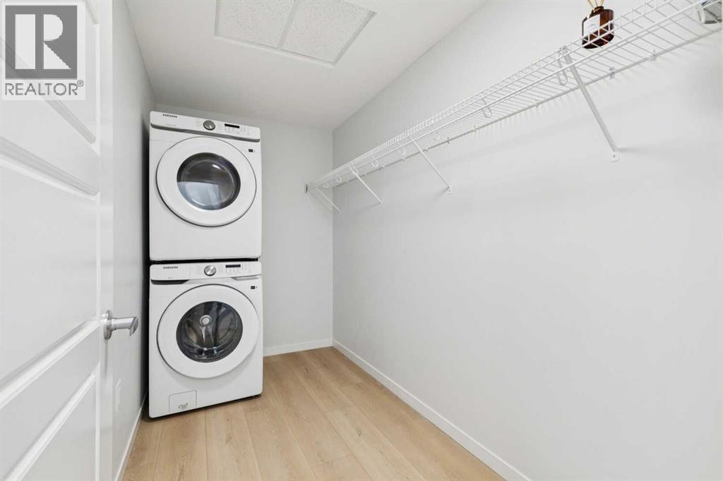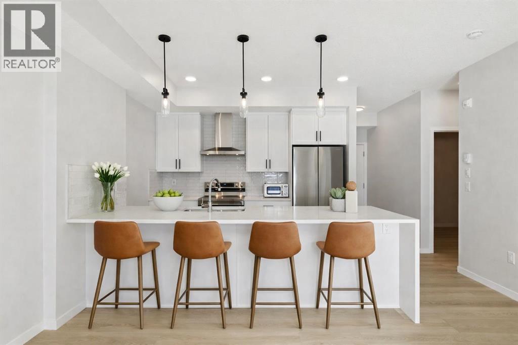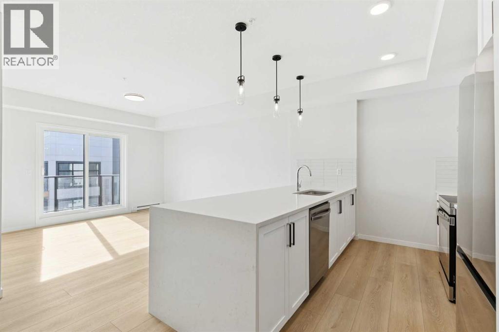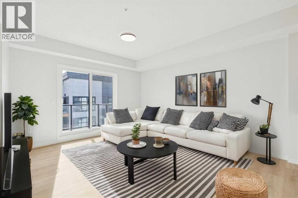 Top floor unit with an oversized south-facing patio, mountain views, and no buildings in front—an extremely rare find in Seton. Overlooking a peaceful rock garden instead of neighbouring buildings, this home enjoys incredible natural sunlight all day and unobstructed views while offering the privacy that many condo buyers are searching for.Welcome to Unit 6408 at Seton Serenity, offering nearly 771 sq ft of thoughtfully designed living space with 2 bedrooms, 2 full bathrooms, underground parking, and in-unit storage. The bright open layout features a spacious living and dining area that flows seamlessly to the large south-facing patio, creating the perfect space to relax, entertain, or enjoy the sun and mountain views.The kitchen stands out from other units in the complex with upgraded finishes including a waterfall quartz island, upgraded hood fan, and modern cabinetry, providing both style and functionality. Unlike many units, this home features durable luxury vinyl plank flooring throughout with no carpet, giving the space a clean, contemporary feel.The primary bedroom includes a private 4-piece ensuite, while the second bedroom and additional full bathroom make the layout ideal for guests, roommates, or a home office. A large laundry room with extra storage space adds convenience rarely found in condo living, and the condo fee includes everything except electricity!Additional highlights include secure underground parking and a well-managed building, all located in the heart of Seton—Calgary’s premier urban district in the south. Enjoy easy access to the South Health Campus, YMCA, restaurants, shopping, entertainment, and extensive walking paths, all just minutes from your door.A top floor unit with sun, views, and upgrades in one of Calgary’s fastest growing communities—this is condo living at its best. (id:51989)