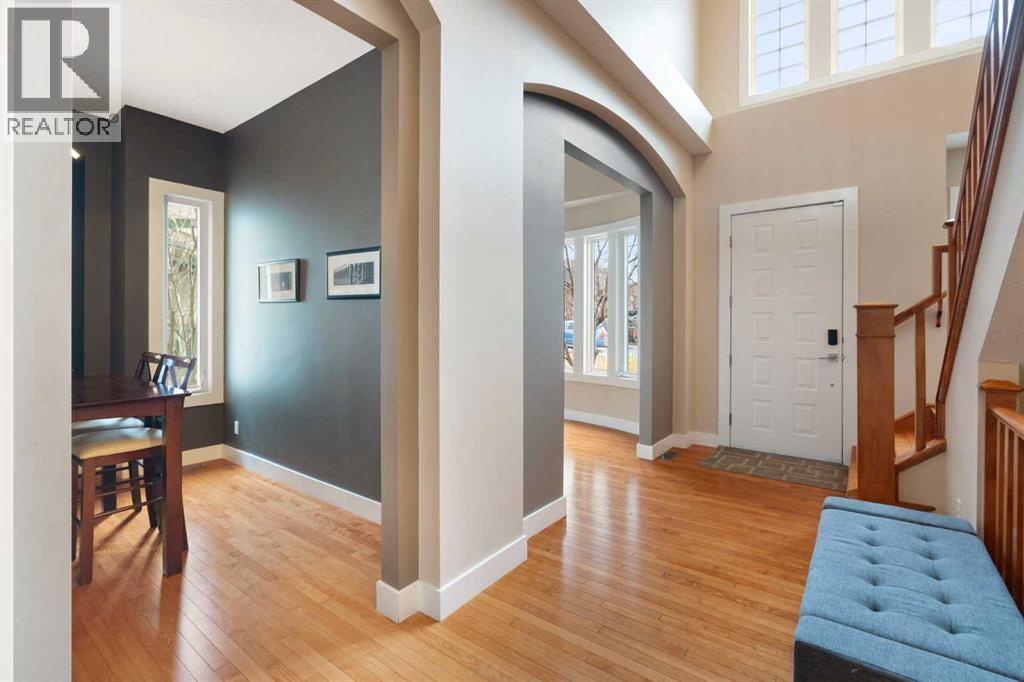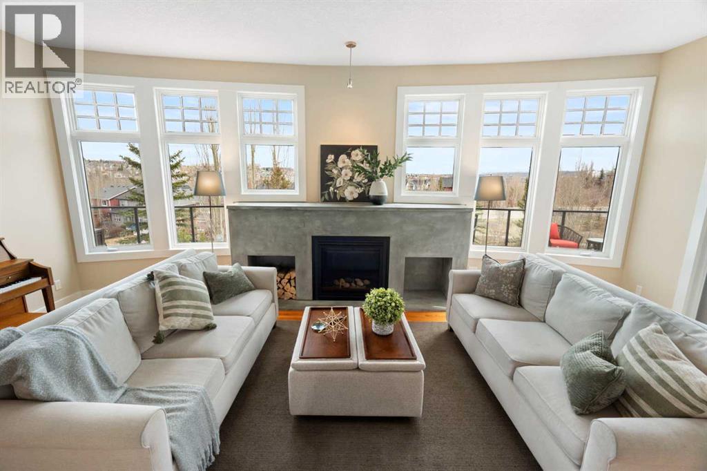 This exceptional family home sits on the largest lot in prestigious Tanglewood, tucked into a quiet cul-de-sac with a park and playground just steps away. Boasting over 3,800 sq ft of developed living space, a tandem 3 car garage and panoramic views of downtown Calgary and Canada Olympic Park, this is a rare opportunity to own a truly special property.The main floor features an elegant formal dining space and sun filled office. The spacious kitchen is the heart of the home, featuring abundant maple cabinetry, stainless steel appliances, a central island, and a dedicated homework station. The adjoining family room is warm and inviting, anchored by a striking concrete mantled fireplace and expansive windows that showcase the beautifully landscaped backyard and sweeping city views.Upstairs, you’ll find three generous bedrooms, a full bath, and convenient upper-level laundry. The primary retreat offers a walk-in closet, built-in storage and a large ensuite. Central air conditioning ensures comfort throughout.The fully finished walk-out lower level is designed for entertaining, complete with a spacious games room, full bar, guest bedroom and full bath. A natural gas fireplace adds warmth and ambiance.Outdoor living is exceptional, with an expansive lower patio and a wraparound composite upper deck featuring glass railing and multiple natural gas hookups—perfect for a BBQ’s, fire tables, and patio heaters. The professionally landscaped yard includes low-maintenance perennial beds and backs onto a natural extension of 12 Mile Coulee, offering a serene wildlife corridor where deer and moose are frequent visitors.This home has been extensively upgraded for peace of mind, including a hail-resistant Euroshield roof with a substantial balance of a 50-year non-prorated warranty, replacement of both furnaces and hot water tanks, and a new garage door opener. Gemstone exterior lighting adds year-round curb appeal.Located less than a 5-minute walk to multiple parks an d a city-maintained outdoor winter rink, and close to schools and all amenities, this home blends nature, luxury, and convenience. As part of a well-funded and managed bare land condominium, residents benefit from immaculately maintained green spaces and snow removal after every snowfall.This is an extraordinary opportunity to own a beautifully maintained, thoughtfully upgraded home in one of Calgary’s most sought-after communities. (id:51989)
