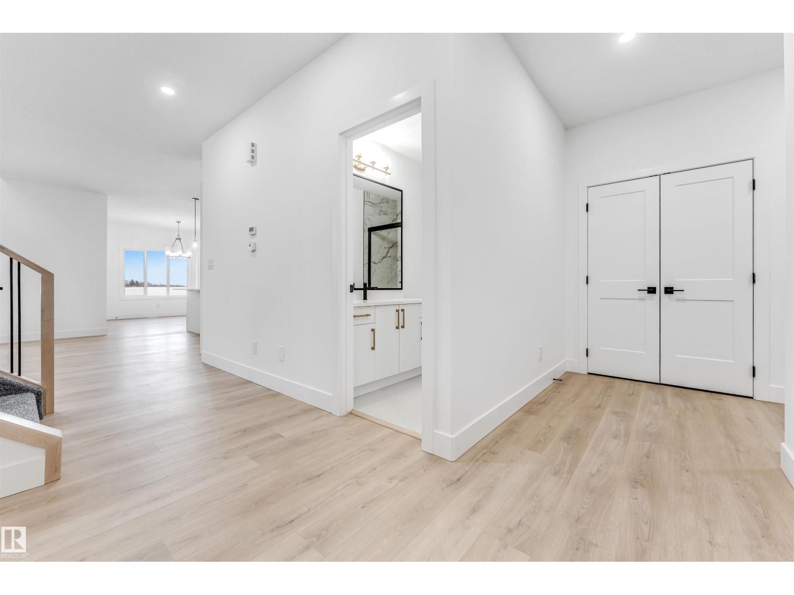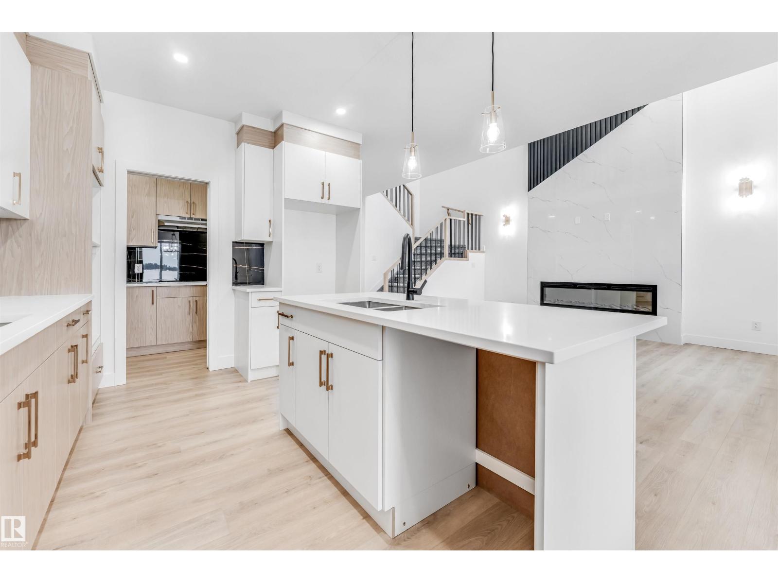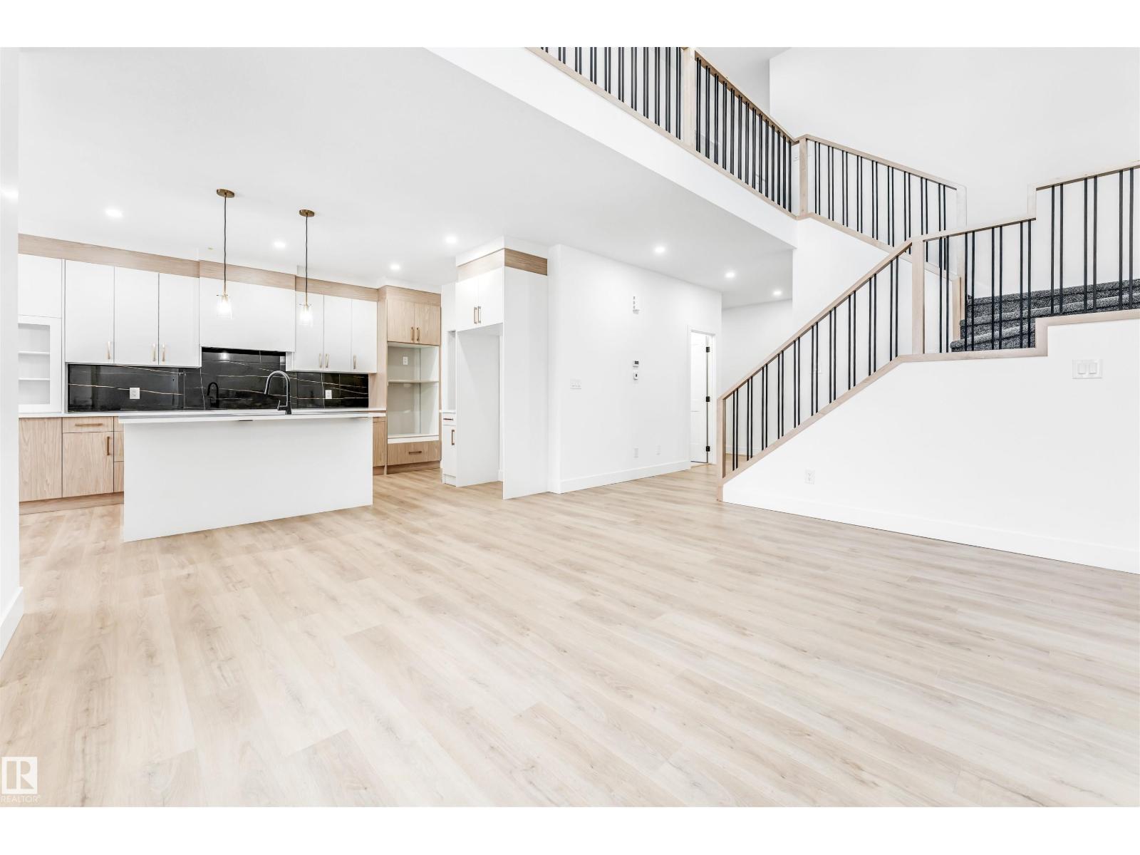 Welcome to this 2500 sqft beautifully finished brand new home built on a huge almost 7000 sqft PIE-LOT, providing big space for outdoor activities. Just a 2-minute walk to the nearby SCHOOL, this home offers the perfect blend of convenience, comfort, and thoughtful design. The MAIN FLOOR includes a BEDROOM & FULL BATHROOM, making it ideal for guests or multi-generational living. A fully EXTENDED KITCHEN paired with a separate SPICE KITCHEN adds both practicality and elegance for everyday cooking and entertaining. The stunning open-to-above living space fills the home with natural light, creating a bright and welcoming atmosphere. Upstairs features 3 additional bedrooms along with huge WALKIN-LAUNDRY, front BONUS ROOM, highlighted by a spacious primary suite that flows into a private ensuite and a well-designed walk-in closet. Throughout the home, you’ll find upscale finishes such as quartz countertops, luxury vinyl plank flooring, stylish spindle railings, and modern feature walls that enhance its appeal. (id:51989)