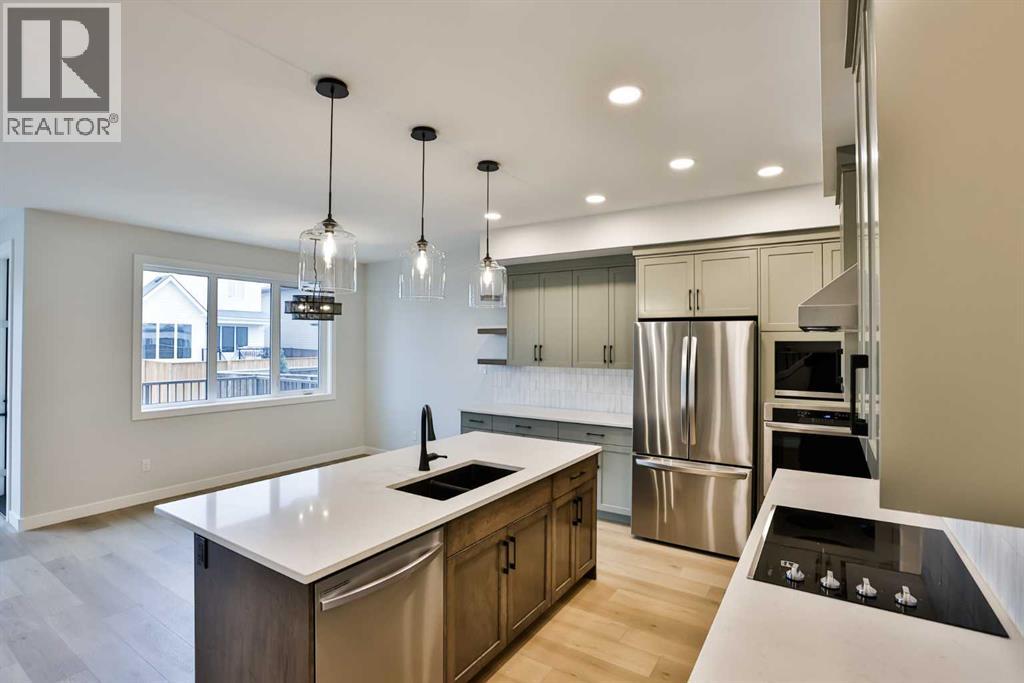 This isn't just your ordinary family home... it is elevated! Through the front door you are greeted with a sunken foyer with a closet, and then up a couple steps in to the beautiful main floor. This home has everything your family might need... a large walk through mudroom and pantry just off the kitchen, the perfect size main floor office, a living room with fireplace, and a great size dining room with a built in bench. Large windows surround the main floor and flood the entire space with the best natural light. The kitchen features a great size island, and stainless steel appliances including a built in wall oven, electric cooktop, and dishwasher. You'll note the deck is already on at the back. The half bath is nicely tucked away from your living area.The second floor boasts 2 great size bedrooms with a 4 piece bathroom in the middle, a large bonus room, and then your primary bedroom with ensuite oasis! This ensuite is stunning... a free standing tub, walk in shower, double vanity, and a water closet. The laundry is conveniently located on the second floor as well, meaning those clothes might actually get put away! The basement is open for future development with room for 2 more bedrooms, a family room, a bathroom, and storage space too. Located in the highly desirable Crossings community, this home truly is a must see. It is located just a short walk to parks, playgrounds, the YMCA, restaurants, a pharmacy, the new elementary school that is currently under construction, and so much more! Give your REALTOR ® a call and come and see all this great home has to offer! (id:51989)