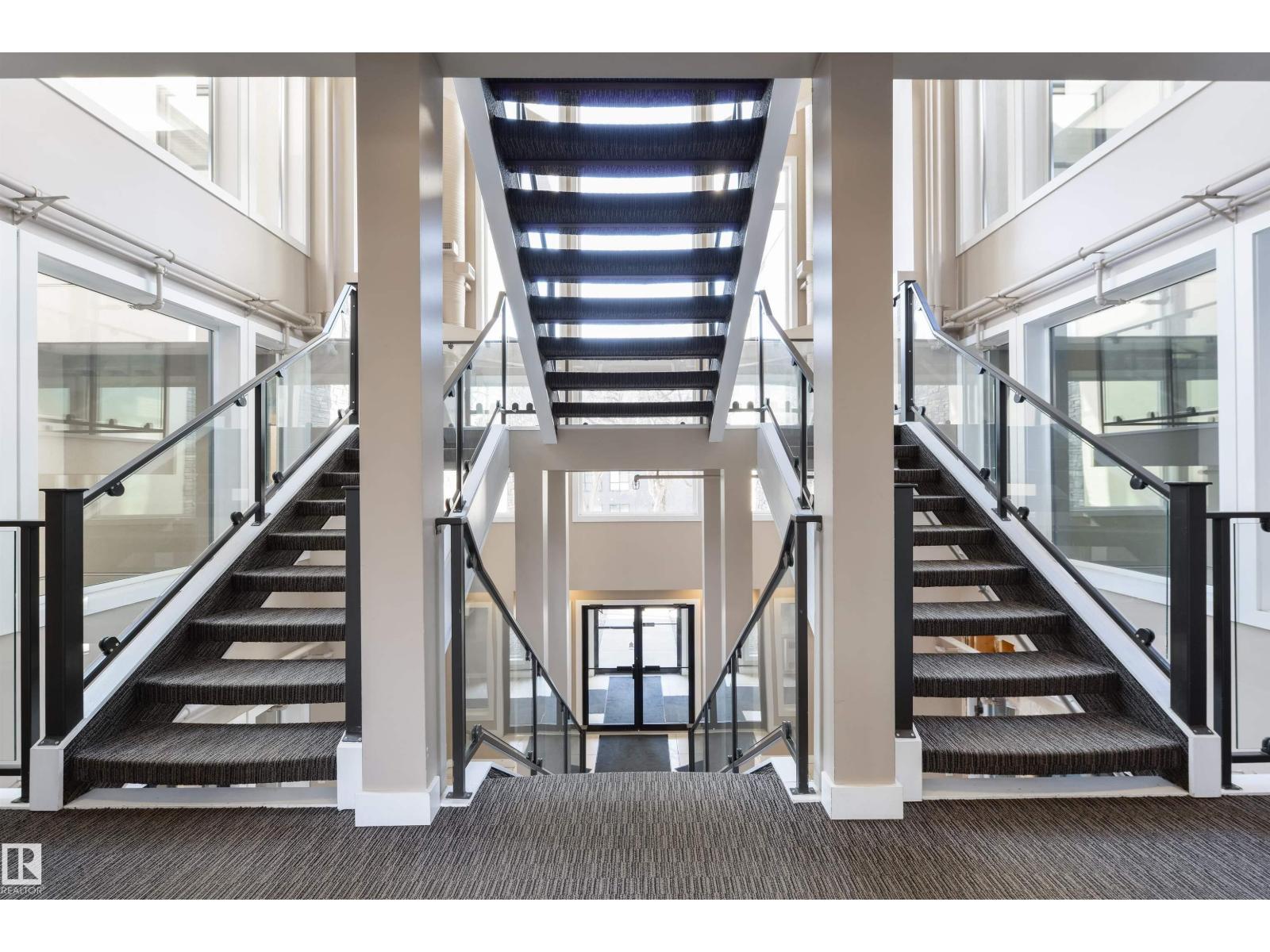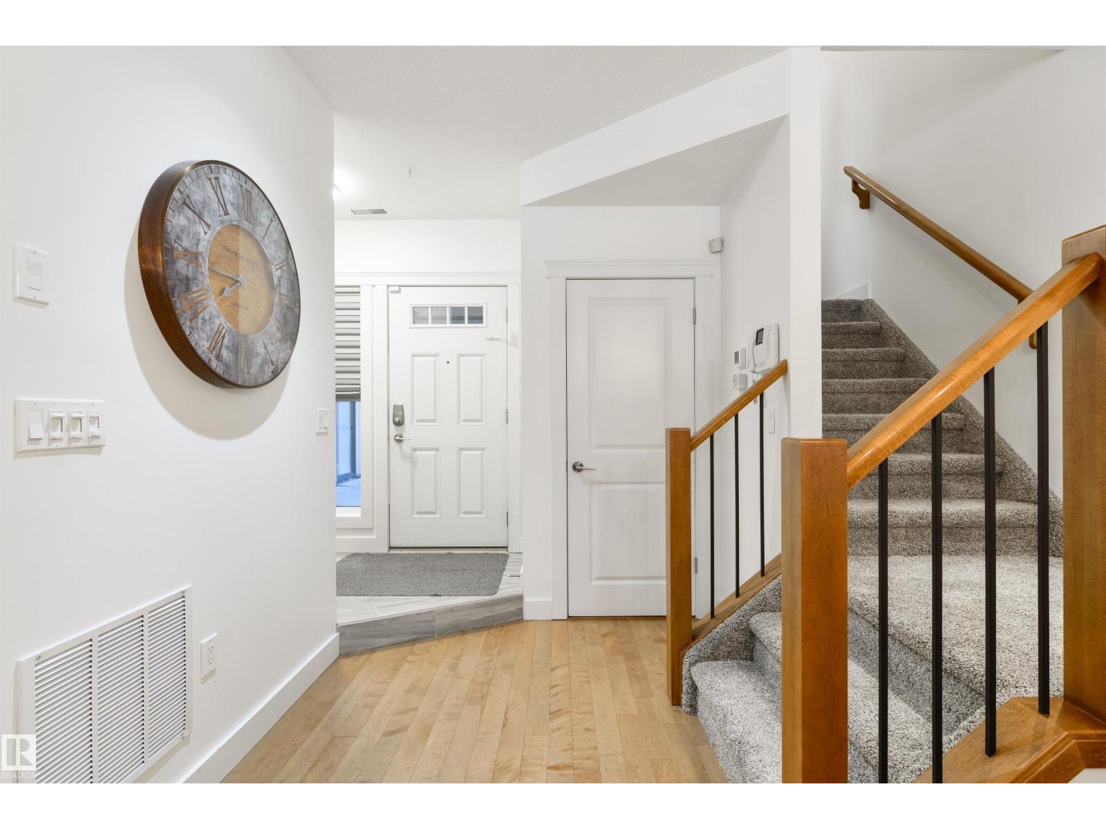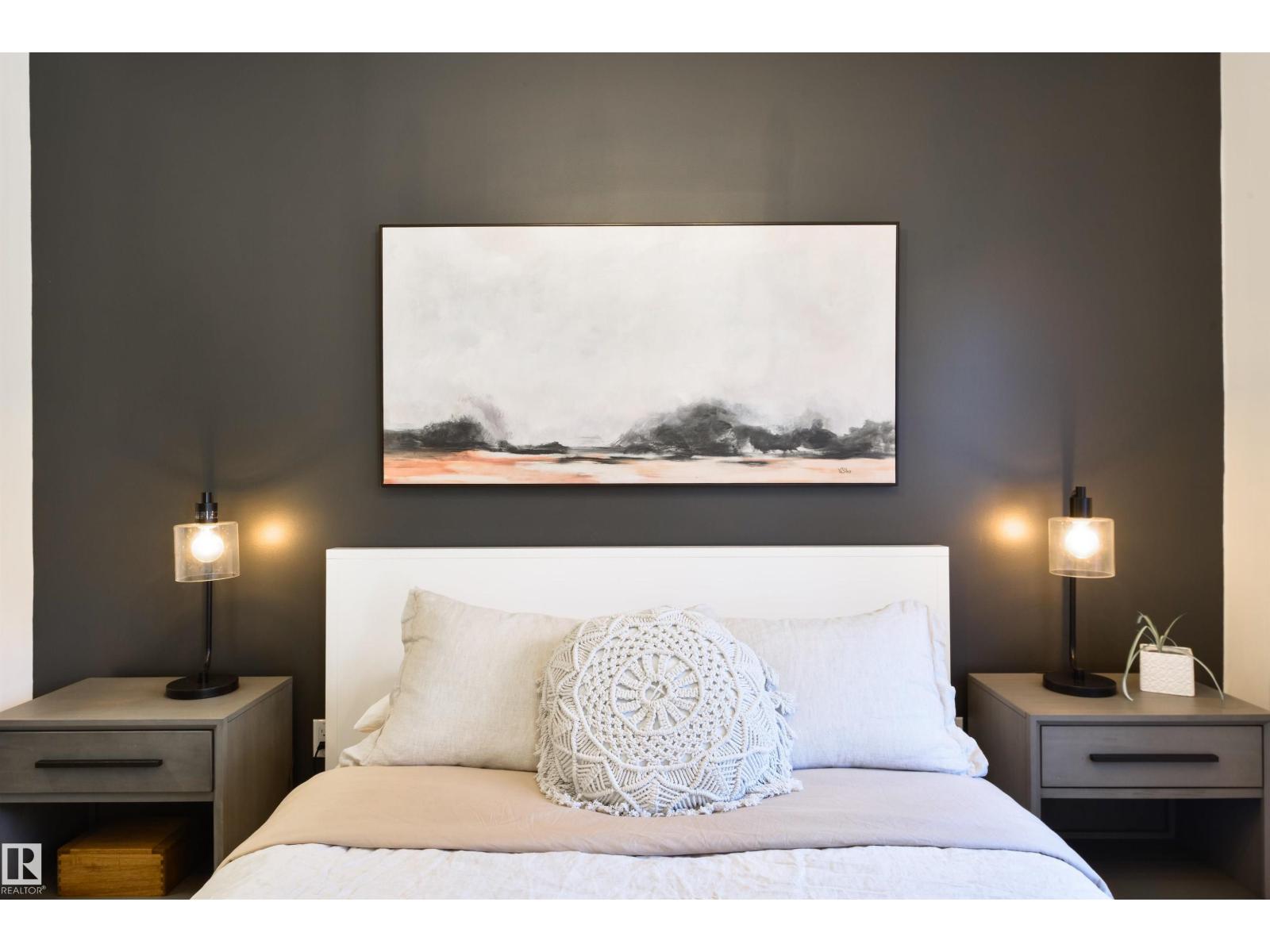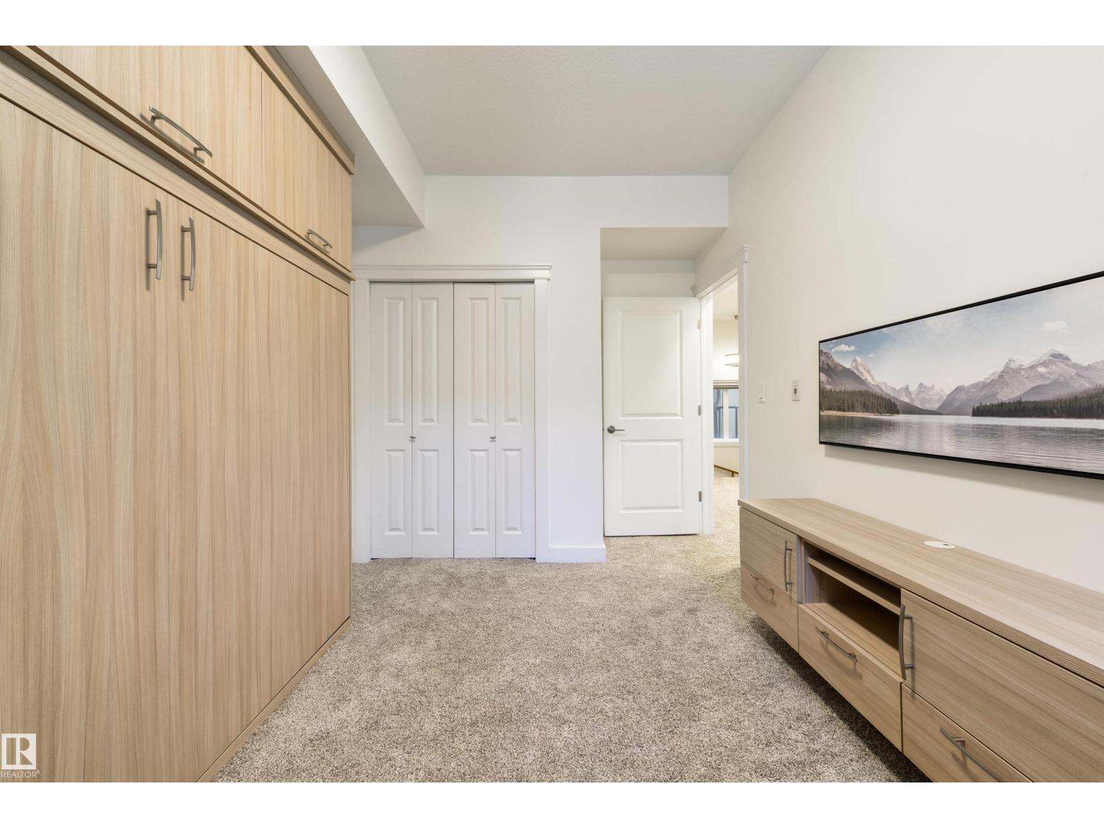 In the heart of Belgravia, The Grand Scala defines luxury townhouse living. This bright, open-concept two-storey executive home offers over 1,300 sq ft on a tree-lined street. The main floor features hardwood, Hunter Douglas blinds, quartz countertops, upgraded appliances, and exceptional kitchen storage. Its timeless design suits both modern and contemporary tastes. Upstairs offers two bedrooms plus a stylish den with built-in cabinetry—perfect for working from home. The primary suite includes a California Closet and private south-facing balcony. A Murphy bed with shelving enhances the guest room’s flexibility. Enjoy a sunny main-floor patio, two underground parking stalls, storage, and front and rear entrances. Steps to cafés, the River Valley, LRT, U of A, downtown, and Rogers Place—ideal for a simplified live-work-play lifestyle. (id:51989)