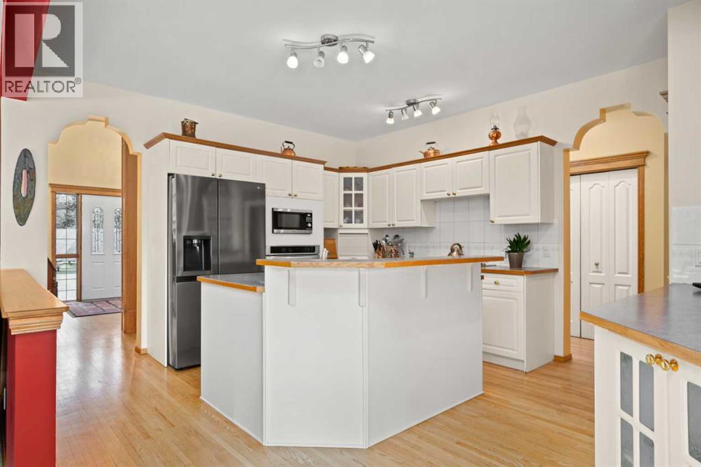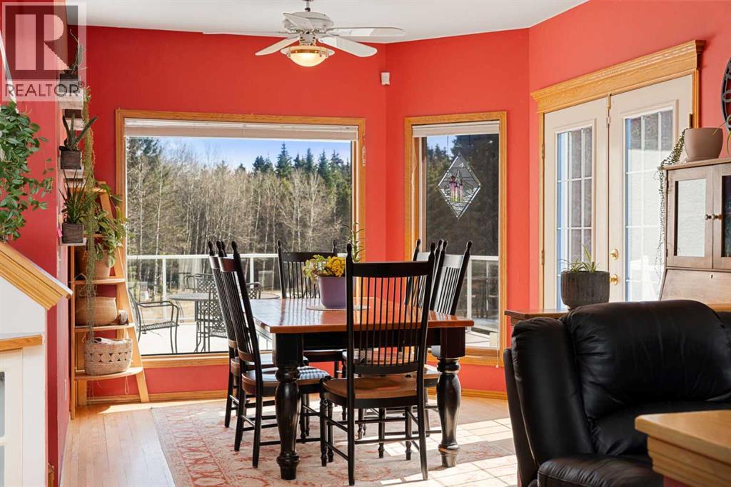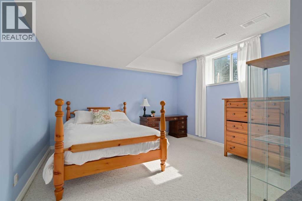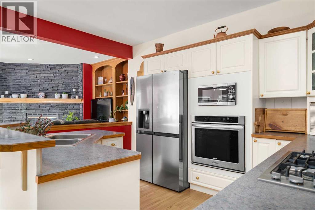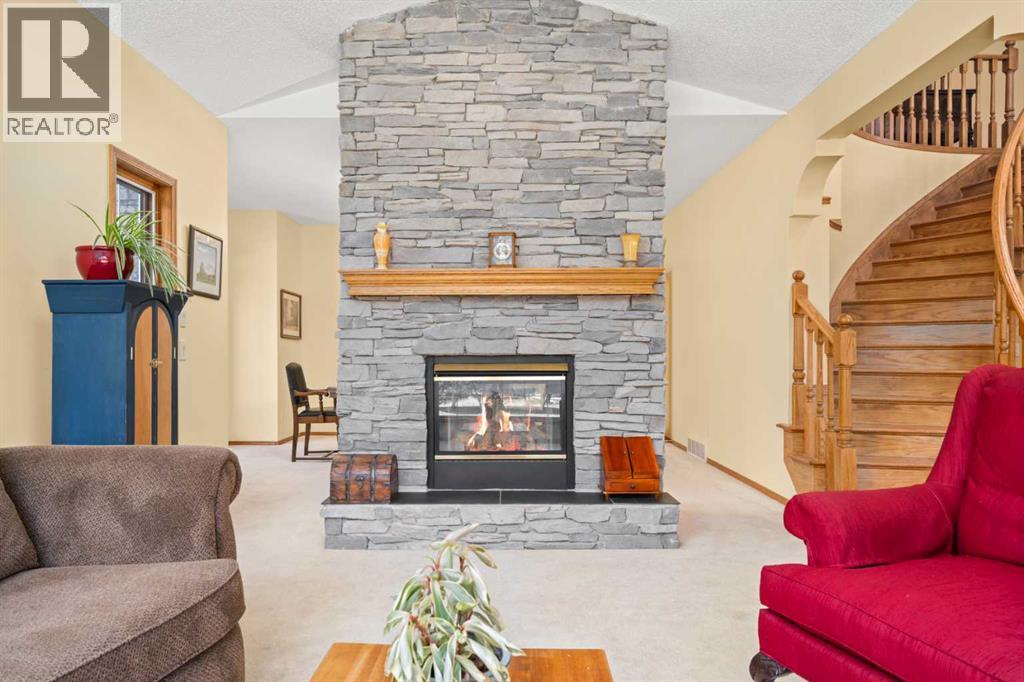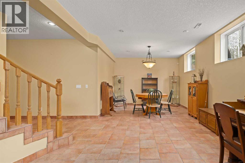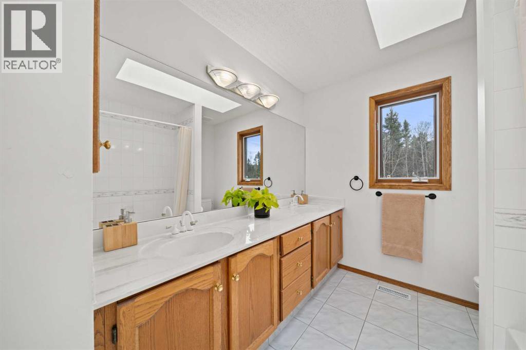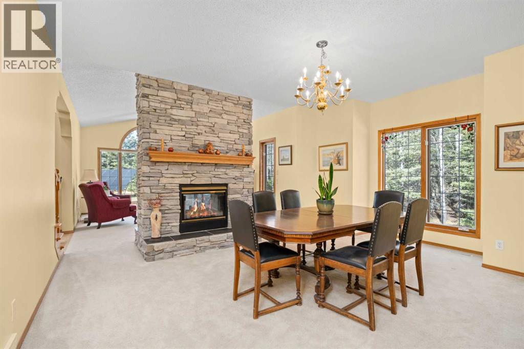 ESTATE LIVING IN WINTERGREEN! ONE OF BRAGG CREEK’S FINEST! PRIVATE CUL-DE-SAC LOCATION ON 2.50 ACRES WITH SW EXPOSURE! Tucked away at the end of a quiet cul-de-sac, this exceptional estate property sits on a stunning 2.50 acre lot surrounded by open meadow, mature trees, and endless sunshine, offering ultimate privacy and a setting that rarely comes available. This home features 3,666 sq ft above grade plus a fully developed lower level designed for both everyday living and entertaining. From the moment you enter you are greeted by a grand curved staircase, soaring ceilings with skylights, and beautiful custom woodwork throughout. The main floor offers a spacious den or office with custom oak built-ins and great views, while the kitchen is the heart of the home with stainless steel appliances including a built-in stove, extensive cabinetry, pantry, large island, and space for a coffee bar, all opening to a cozy living room with a stone-faced wood burning fireplace and a bright dining nook with access to the south facing deck with incredible views. A formal sitting and dining area with a double sided gas fireplace, a half bath, and laundry with chute complete the main floor. Upstairs features a stunning primary retreat with sitting area, built-in bench, gas fireplace, large walk-in closet, and a 5 piece ensuite with corner jacuzzi tub and beautiful south facing views, along with two additional bedrooms with built-in desks and a full 5 piece bathroom. One of the standout features is the upper level bonus room over the garage, filled with natural light, surrounded by windows, and offering access to a private balcony, perfect for a playroom, gym, or media space. The fully finished basement offers 9 ft ceilings, a large rec room, theatre room, two additional bedrooms, and a 4 piece bathroom. The outdoor space is just as impressive with a massive south facing deck finished with duradek, a lower gravel patio, upper balcony, and endless yard space to enjoy. Additional featu res include an oversized double garage with EV charger, solar panels, new high efficiency furnace and hot water tank, concrete tile roof, custom built-ins throughout, and beautiful hardwood flooring. Located just minutes to Bragg Creek with easy access to Kananaskis Country, West Bragg Creek, Elbow Falls, and countless outdoor activities including golf, hiking, biking, and skiing, all while being only 30 minutes to Calgary. This is a rare opportunity to own one of the best locations in Wintergreen and a property that must be seen to be fully appreciated. (id:51989)