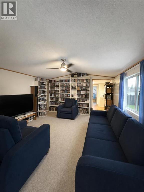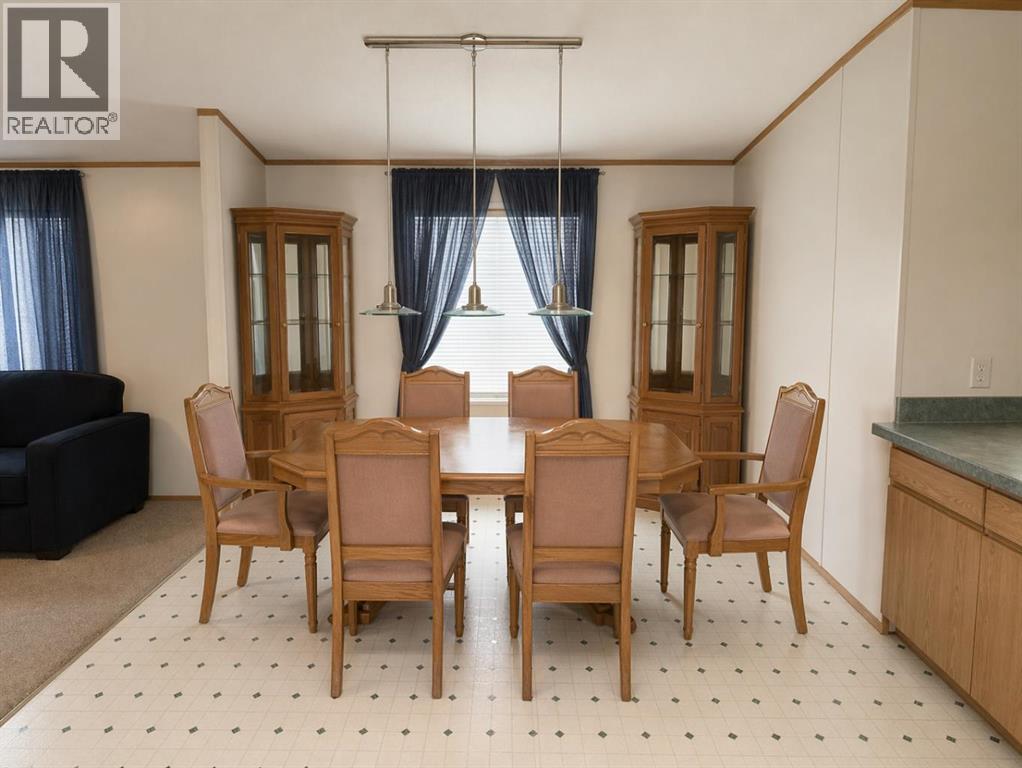 Charming 40+ adult community. This 1,216 sq ft single-wide home with a single garage features a bright, functional layout with 3 bedrooms and 2 bathrooms. The open-concept main living area flows seamlessly into a spacious kitchen with excellent cabinetry and counter space, creating a comfortable space for both everyday living and entertaining. The home has seen several important upgrades, including a furnace, central air conditioning, and hot water heater all replaced within the last year. Additional improvements include new sink taps and fixtures within the past few months, and both toilets replaced approximately 18 months ago, offering added comfort and peace of mind.The kitchen is well-equipped with a JennAir cooking stove, featuring interchangeable components including burners, grill, griddle, and deep fryer. It also functions as both a standard and convection oven. Additional appliances include a stacked washer/dryer combo, refrigerator with cold water and ice maker, black vertical freezer, and white chest freezer.Comfort is enhanced with ceiling fan/light combinations with remote controls in both the living room and primary bedroom.A practical mudroom entry offers stacked laundry and ample space for coats, boots, and storage. The primary bedroom features a 4-piece ensuite, while two additional bedrooms provide flexible space for guests, hobbies, or a home office.Outside, enjoy the peaceful canal backdrop along with a handy storage shed for additional storage needs. The home retains its original finishes, presenting a great opportunity for personalization and modern updates to suit your style. Residents enjoy a welcoming community atmosphere with access to a community garden, organized activities, full-time park management, snow removal, and landscaping services. Conveniently located close to Kinsmen Park, Strathmore Hospital, shopping, and nearby golf courses. A wonderful opportunity to enjoy comfortable living in a scenic, community-focused setting. Pleas e note the roof on the home as well as the roof on the shed. Need to be replaced as well as there is some minor rotting on the deck. (id:51989)