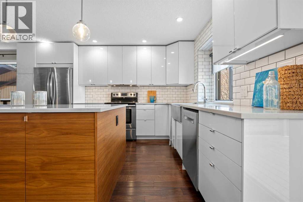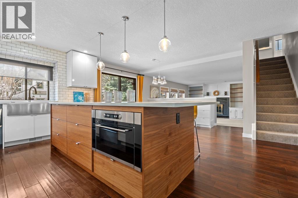 Welcome to the prestigious and highly sought-after community of Edgemont! Location is key. Just minutes from Nose Hill Park and being surrounded by the extensive pathway system within Edgemont, this setting offers easy access to nature while remaining conveniently connected to transit, highly rated public & separate schools, and numerous everyday amenities. Nestled in a quiet cul-de-sac, this beautiful family home offers just under 2,100 square feet of above-grade living space, plus a fully developed basement, 5 bedrooms, 4 full bathrooms, and plenty of upgrades! As soon as you set foot inside, you're welcomed by the open, spacious layout that has been masterfully planned and executed. Discerning tastes will appreciate the knockdown ceilings that have replaced outdated stipple - an upgrade that's consistent throughout the home. The formal living and dining areas are generously sized and filled with natural light from the numerous windows. Sleek, modern, and inviting describe the kitchen, which acts as the heart of the home. It features a large central island with quartz countertops, two-toned cabinetry, an attractive subway tile backsplash that extends to the ceiling, stainless steel appliances, plenty of storage, and a seamless connection to the breakfast area with bench seating. This space overlooks the grand family room which offers a cozy wood-burning fireplace, attractive built-in shelving, and abundant light/exposure to the expansive backyard through the set of large windows. The main level of the home also has a bedroom (or office/den), a full 3-piece bathroom, and a laundry area, easily accommodating single-level living. Upstairs, the primary bedroom acts as a private retreat, complete with its own ensuite and access to a south-facing solarium! Few properties offer such a delightful space to suit your lifestyle whether it be for working out, meditating, growing, reading, or simply relaxing. This level also has two additional bedrooms and a 4-piece main bathr oom to provide comfortable accommodations for family or guests. The developed basement has been attractively finished with luxurious vinyl plank flooring, brand new windows, wet bar rough-in, another spacious bedroom, and a modern 3-piece bathroom. In addition, the massive recreation room is suitable for multipurpose use, such as a home gym, media area, hobby space, or playroom. With 4 windows in this section, it is bright and offers endless possibilities! There's so much value in this home, so don't miss this opportunity. Call your favorite realtor today to schedule a viewing! (id:51989)