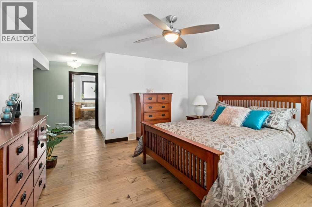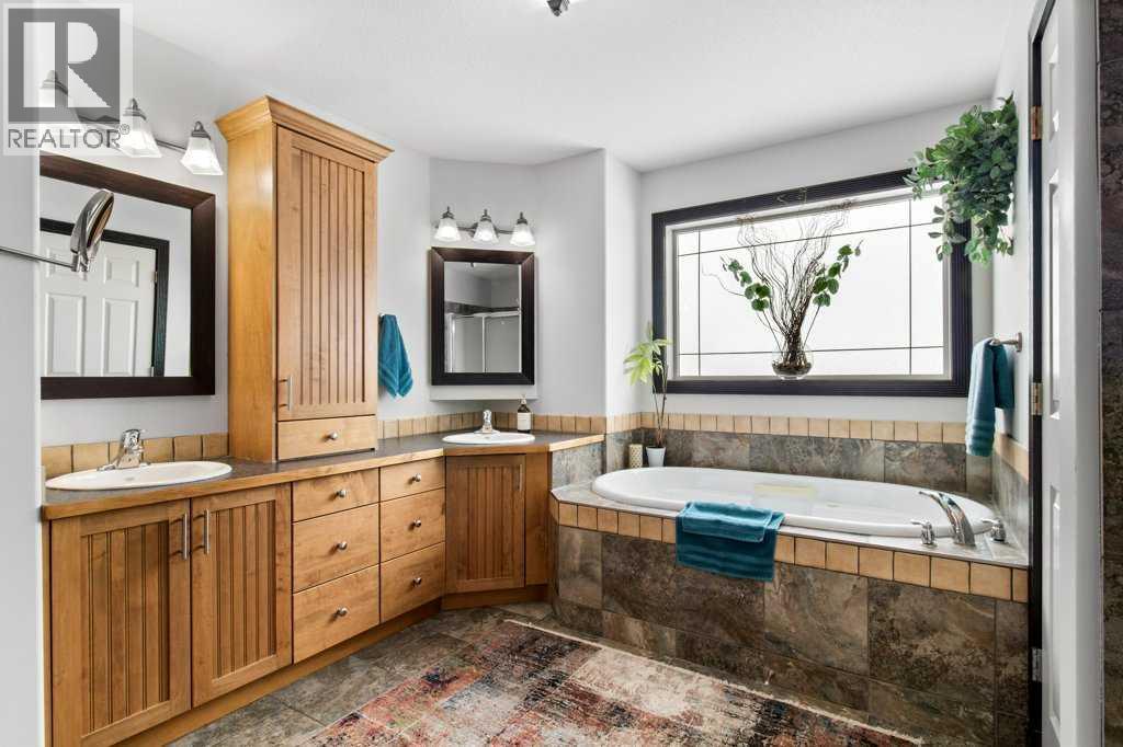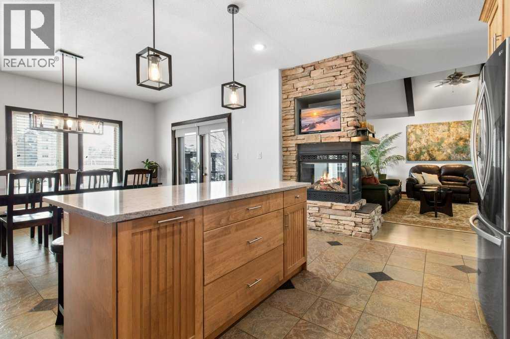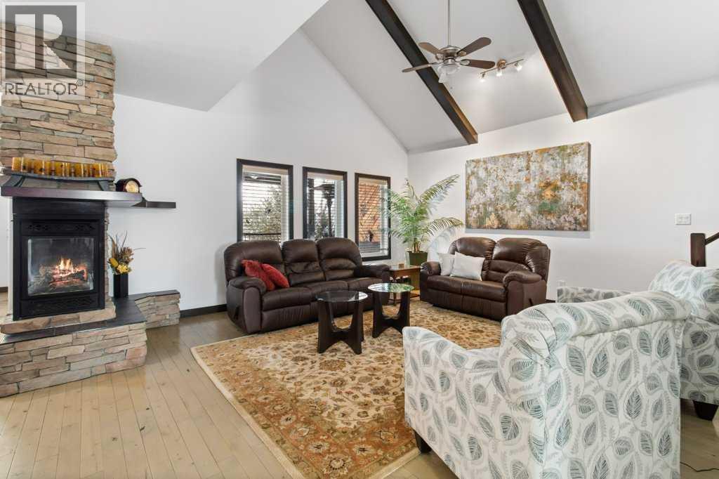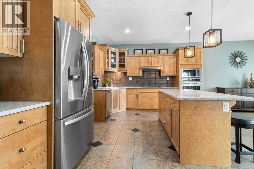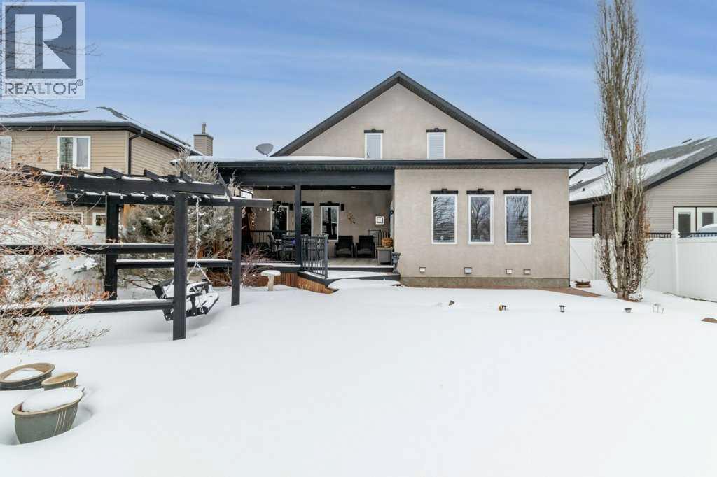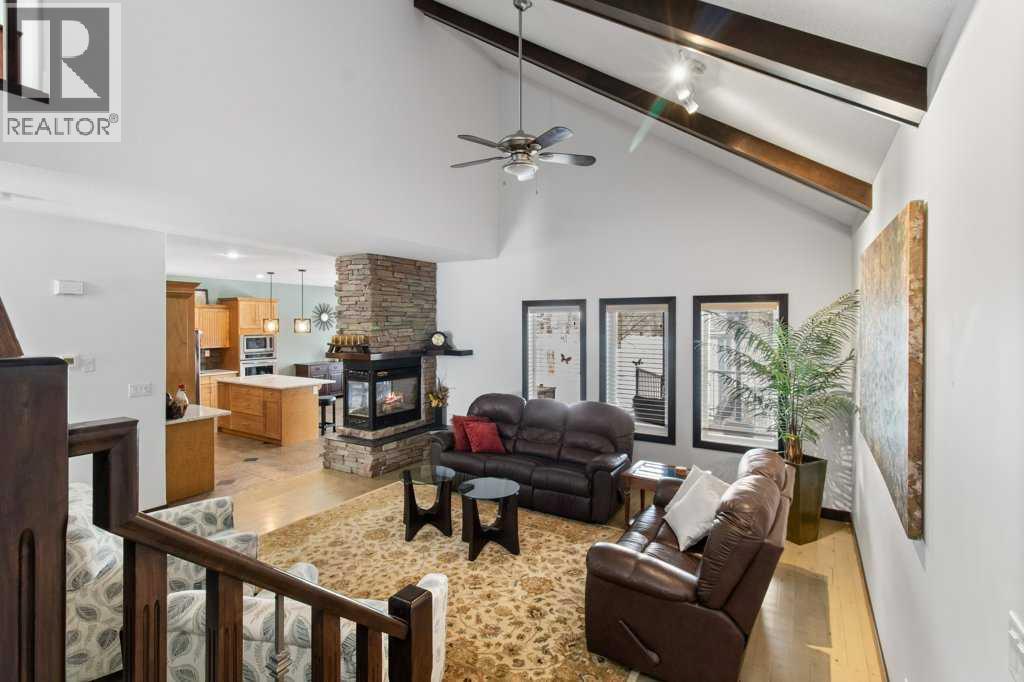 Located in the vibrant town of Sylvan Lake, this thoughtfully designed two-storey home backs directly onto green space, offering privacy and a beautiful south-facing yard that opens to nature. Extensively upgraded throughout, the home features soaring ceilings over hardwood flooring in the great room, creating a bright and welcoming space for everyday living and entertaining. A stone fireplace is perfectly positioned between the kitchen and great room, allowing you to enjoy its warmth and ambiance from both spaces while enhancing the open-concept design. The kitchen is beautifully appointed with wood cabinetry, quartz countertops, a large island, stainless steel appliances, a built-in oven and microwave, and a separate stovetop—blending style and functionality at the heart of the home. A spacious walk-in pantry provides exceptional storage just off the heated garage adding everyday convenience. The main floor also features a raised washer and dryer for added ease and accessibility. From the dining room, two garden doors lead out to the upper covered back deck, complete with built-in blinds and a built-in barbeque, seamlessly extending your living space outdoors and creating the perfect setting for year-round entertaining. The second floor is entirely devoted to a private primary retreat, featuring a 5-piece ensuite and generous space designed for comfort and relaxation. Downstairs, the fully finished basement includes a large family room, two additional bedrooms, a full bathroom, and a versatile flex space ideal for a home office, gym, or hobby room. This home has been meticulously maintained with numerous recent improvements, including a new roof in 2022, new hot water on demand, central air conditioning, a humidifier on the furnace, water softener, and professionally cleaned ducts. Outdoor living is equally impressive with a resurfaced lower back deck and a freshly painted gazebo overlooking the peaceful green space. The heated garage is well-equipped with 220 pow er, 30 amp service, separate heating, in-floor heating, a built-in vacuum system with attachments, ample workspace, and access to a generous 7.9 x 13-foot mezzanine storage area—perfect for projects, organization, or additional storage. This exceptional property offers comfort, quality, and an unbeatable location close to all the amenities and recreation that Sylvan Lake is known for. (id:51989)