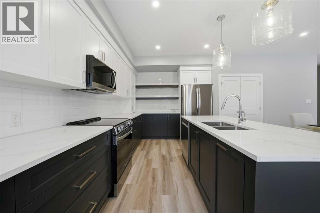Welcome to this stunning, brand new home located in one of Blackfalds’ most desirable neighborhoods. Built by Abbey Platinum Master Built Inc. an award winning Central Alberta builder celebrated for exceptional craftsmanship, high-end finishes, and meticulous attention to detail, this property offers quality you can feel the moment you arrive. Perfectly positioned on a spacious corner lot, the home stands out with modern curb appeal, abundant parking, and a convenient double attached garage. Every inch has been thoughtfully designed with a balance of style and functionality. Step inside to a bright and welcoming main floor where large windows allow natural sunlight to fill the space throughout the day. The generous living room flows seamlessly into the impressive kitchen, complete with quartz countertops, soft-close cabinetry, stainless steel accents, and a large center island that anchors the open-concept layout. It’s the ideal setting for hosting gatherings or enjoying quiet evenings at home. Upstairs, the well-appointed primary bedroom provides a peaceful retreat, featuring a spa-like ensuite with contemporary finishes and a spacious walk-in closet. Two additional bedrooms on this level offer flexibility for family, guests, or a home office while maintaining privacy from the main living areas. The Legal Suite is equally inviting, offering a bright bedroom, a well planned living and kitchen area, and excellent storage options. Thoughtful design choices, beautiful natural light, and superior craftsmanship are evident throughout the entire home. Don’t miss this opportunity to own a brand new, move in ready property in a prime location. (id:51989)