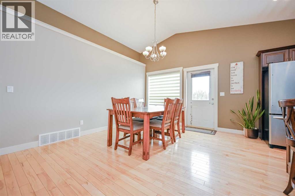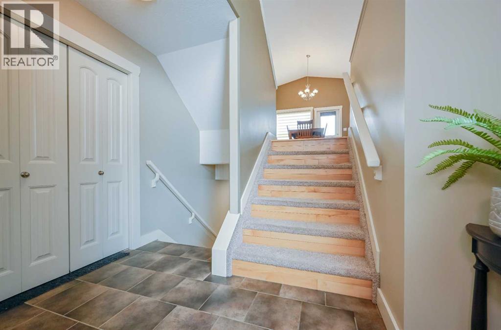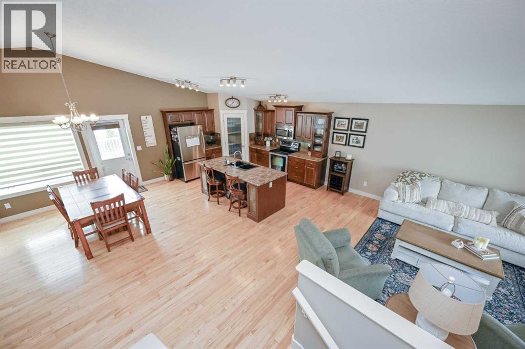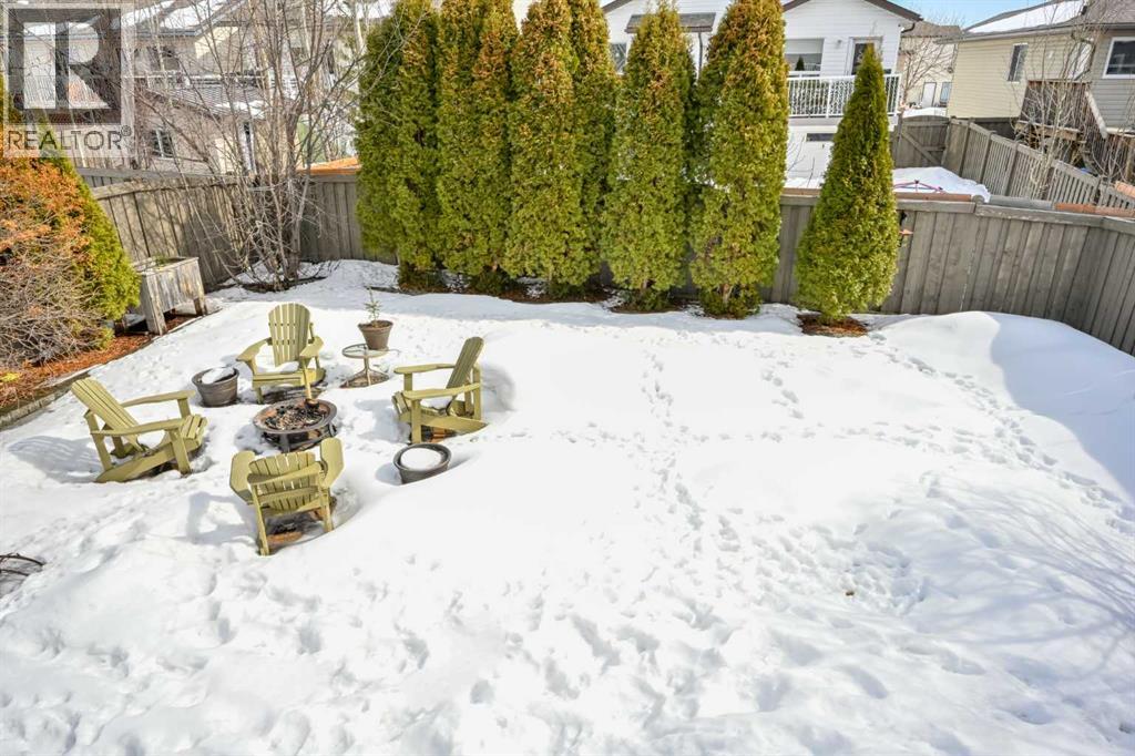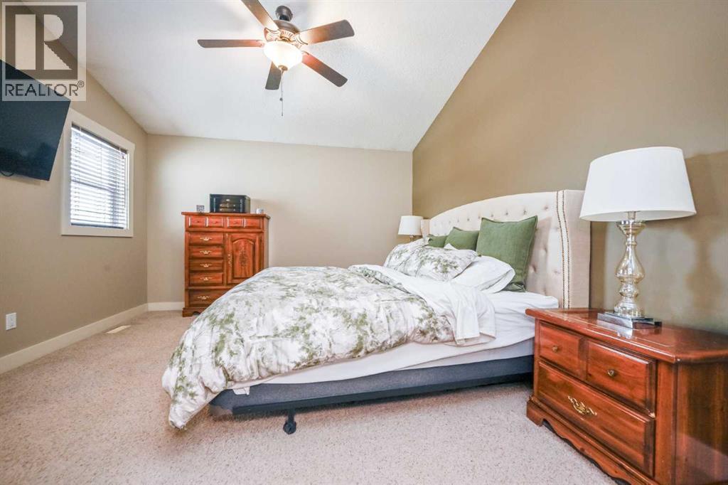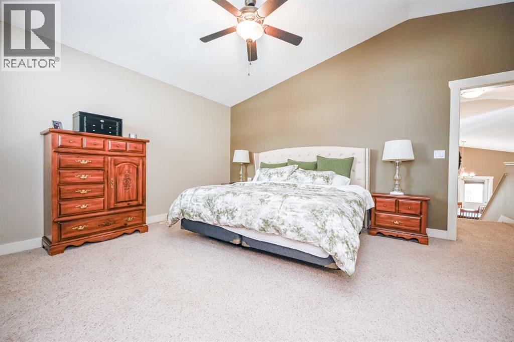 Move in ready across from a playground park in beautiful Signature Falls. This fully developed modified bi-level offers four bedrooms and two full bathrooms with excellent finishes throughout. You'll be impressed with the vaulted ceilings and hardwood floors that run throughout the main living area. The thoughtfully designed kitchen includes an large island with breakfast bar, dark cabinetry stainless appliances and walk in pantry. The bright and inviting living room boasts a large window providing bright light perfect for relaxing or entertaining. Enjoy family meals in the spacious dining area and a garden door which opens onto the deck. Main floor includes two bedrooms and a full bathroom, while the private primary suite is tucked above the garage and features a huge walk-in closet and five piece ensuite. The finished basement offers 9' ceilings along with a large family room, one more bedroom, laundry area and the option to add a third full bath. The attached 24' X 26' garage is finished and heated and ready for Alberta winters. Outside you'll love the large deck for the BBQ that overlooks the spacious east exposed fenced and beautifully landscaped yard with firepit. The location here can't be beat, with a park/playground across the street, walking trails, pond and quick access to getting around doesn't get any easier than this. Come and see for yourself what this incredible home has to offer! (id:51989)