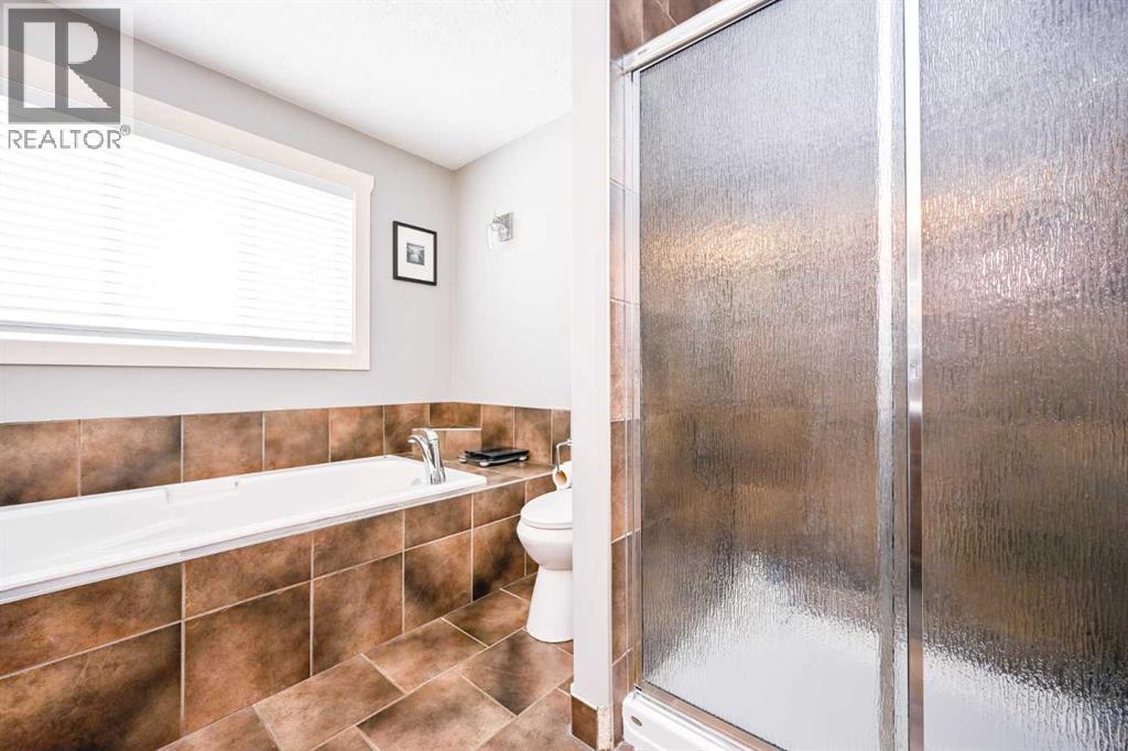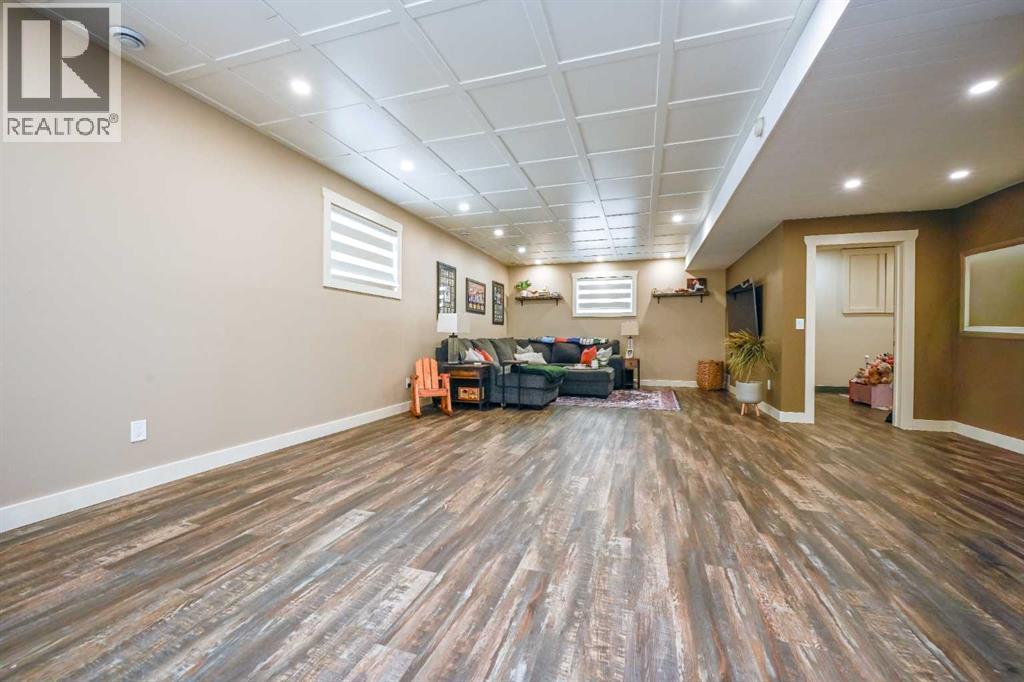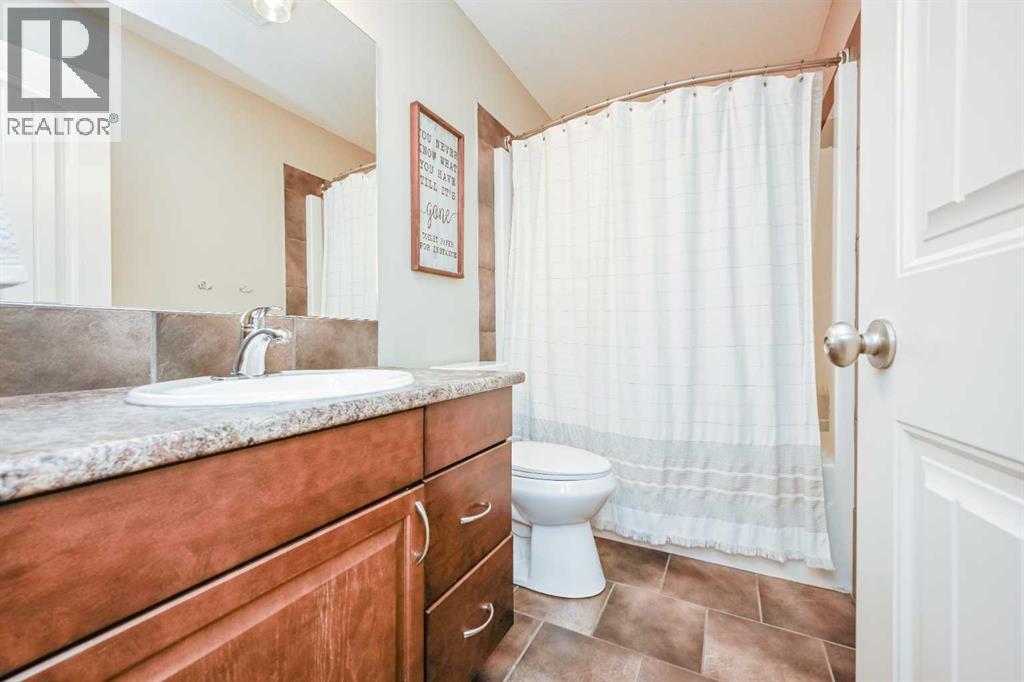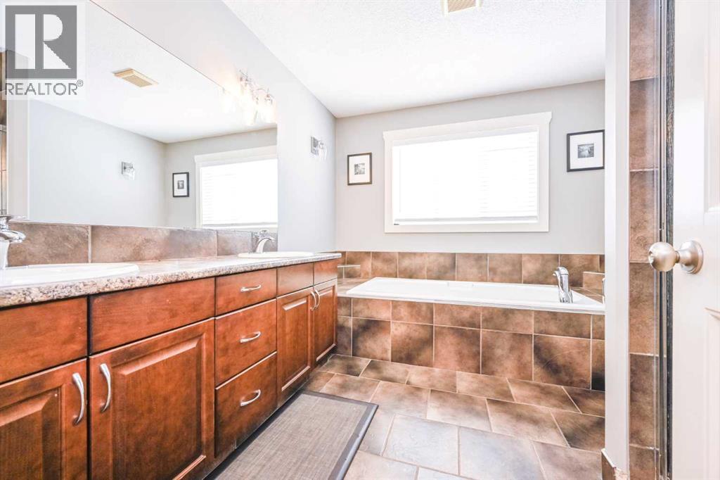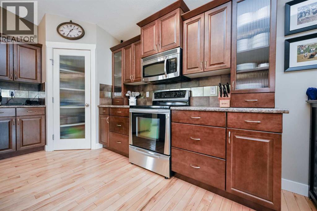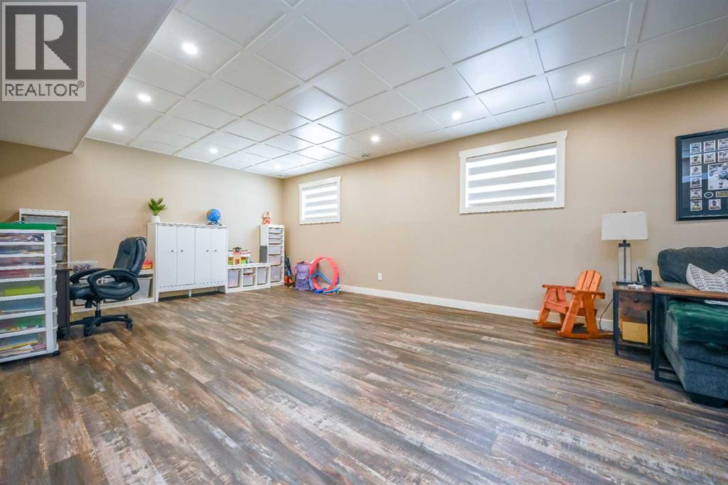 Move in ready across from a playground park in beautiful Signature Falls. This fully developed modified bi-level offers four bedrooms and two full bathrooms with excellent finishes throughout. You'll be impressed with the vaulted ceilings and hardwood floors that run throughout the main living area. The thoughtfully designed kitchen includes an large island with breakfast bar, dark cabinetry stainless appliances and walk in pantry. The bright and inviting living room boasts a large window providing bright light perfect for relaxing or entertaining. Enjoy family meals in the spacious dining area and a garden door which opens onto the deck. Main floor includes two bedrooms and a full bathroom, while the private primary suite is tucked above the garage and features a huge walk-in closet and five piece ensuite. The finished basement offers 9' ceilings along with a large family room, one more bedroom, laundry area and the option to add a third full bath. The attached 24' X 26' garage is finished and heated and ready for Alberta winters. Outside you'll love the large deck for the BBQ that overlooks the spacious east exposed fenced and beautifully landscaped yard with firepit. The location here can't be beat, with a park/playground across the street, walking trails, pond and quick access to getting around doesn't get any easier than this. Come and see for yourself what this incredible home has to offer! (id:51989)
