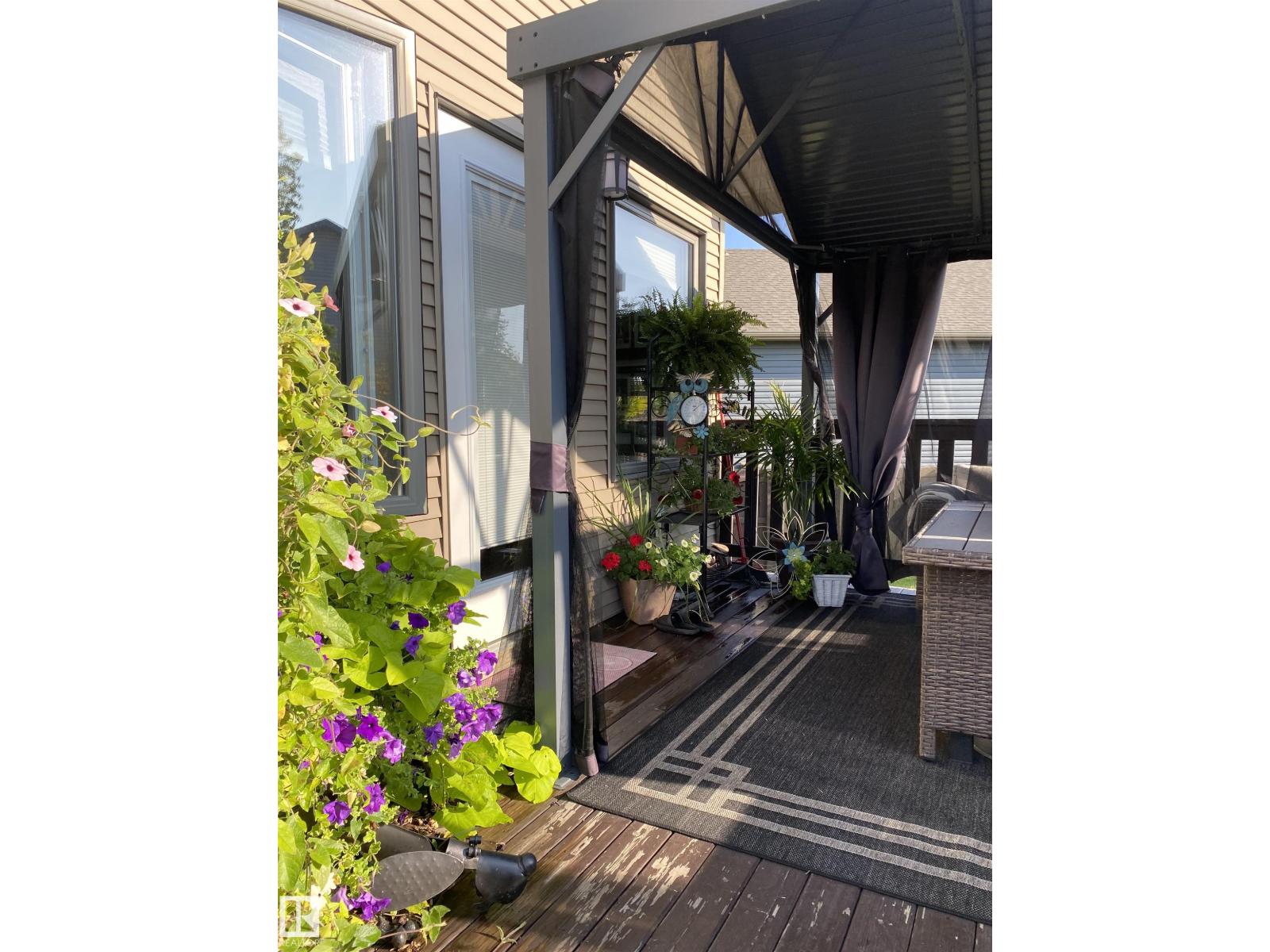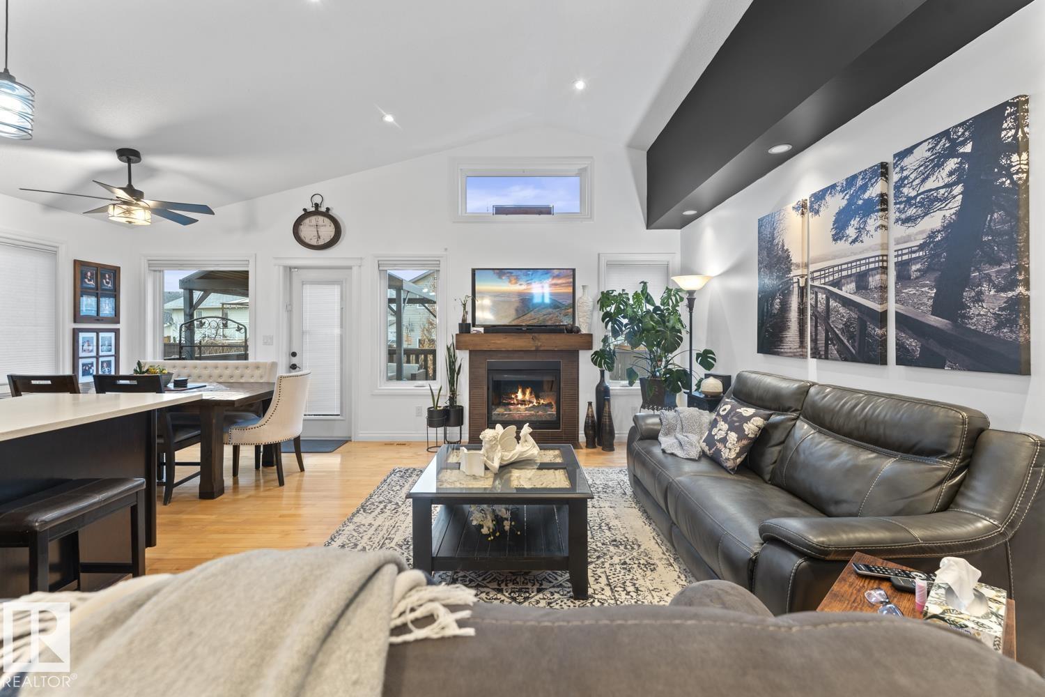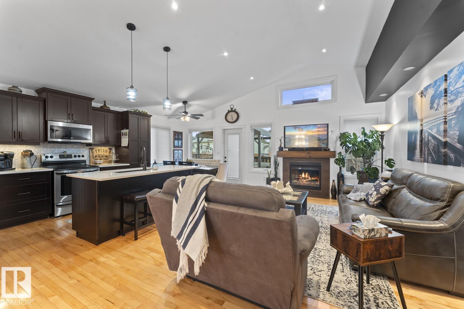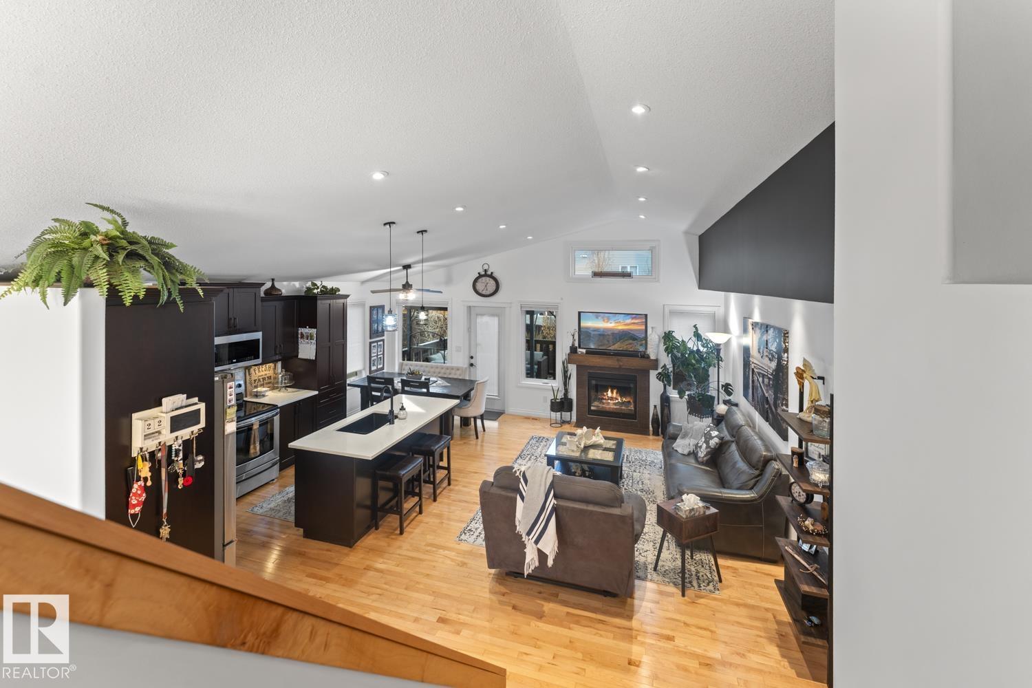 Meticulously maintained 4 bedroom 3 bathroom home in Nelson Heights! This home will WOW you with hardwood floors, vaulted ceiling, gas fireplace and open concept layout. Espresso kitchen with quartz counters, additional built in cabinetry, pantry,granite sink & S/S appliances. NEW light fixtures, NEW custom blinds & custom closet organizers. Direct deck access off the dining with gazebo, beautiful landscaped yard and oodles of summer space. The front of the home offers a formal dining space or sitting room. The primary suite is on the upper level. Nice private bedroom space with a 4 piece ensuite (soaker tub) and walk in closet. Downstairs is fully finished with 9' ceilings, 1 bedroom, 4 piece bathroom and a spacious family room...all warmed with in floor heat. ICF foundation, triple pane windows, HRV system, tankless hot water, central vac & NEW washer/dryer(2022). Attached HEATED garage. A+ location in a cul de sac, just a few blocks to the waters of Cold Lake. (id:51989)