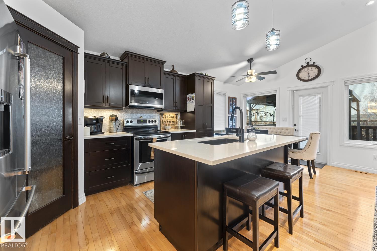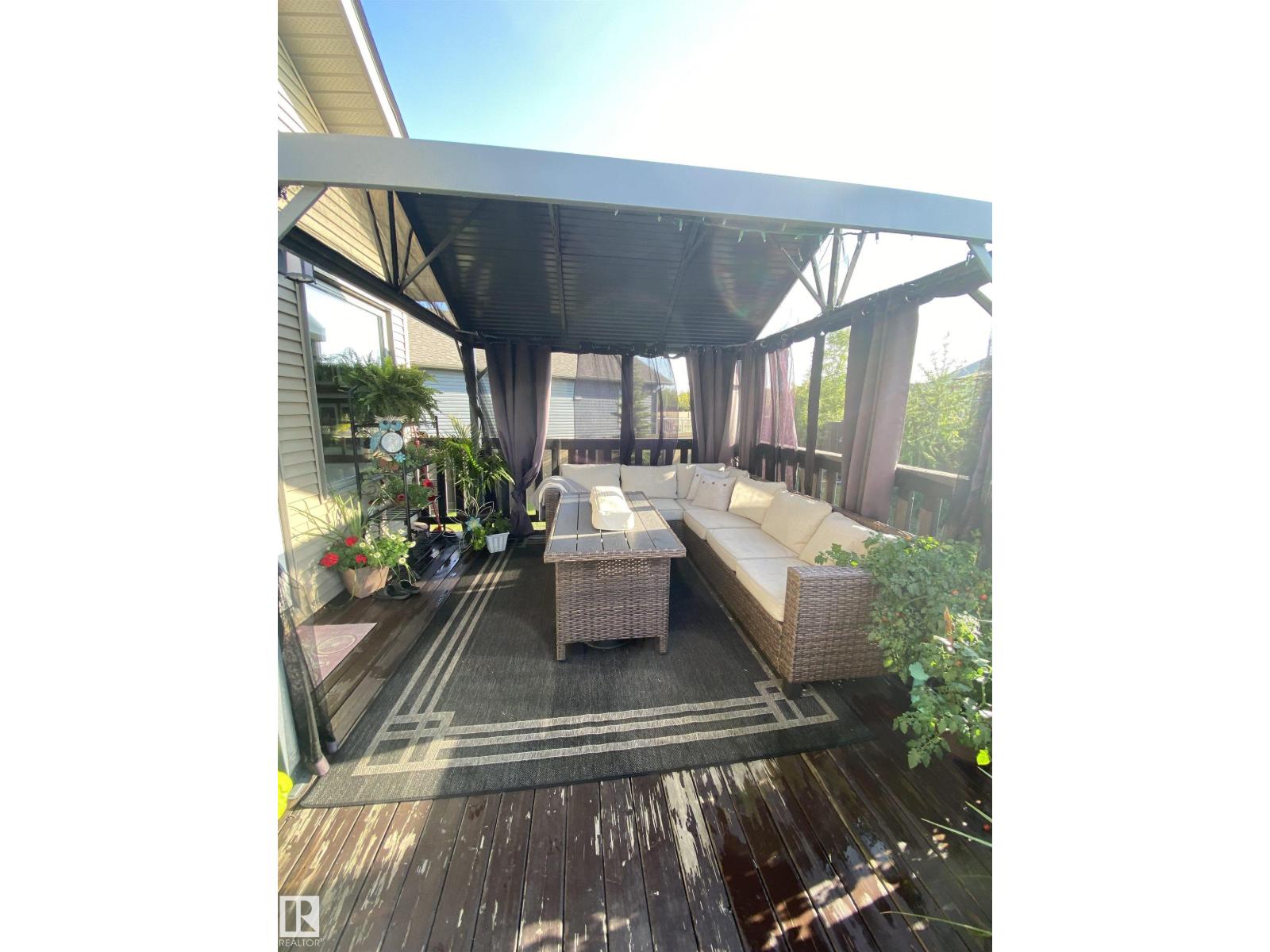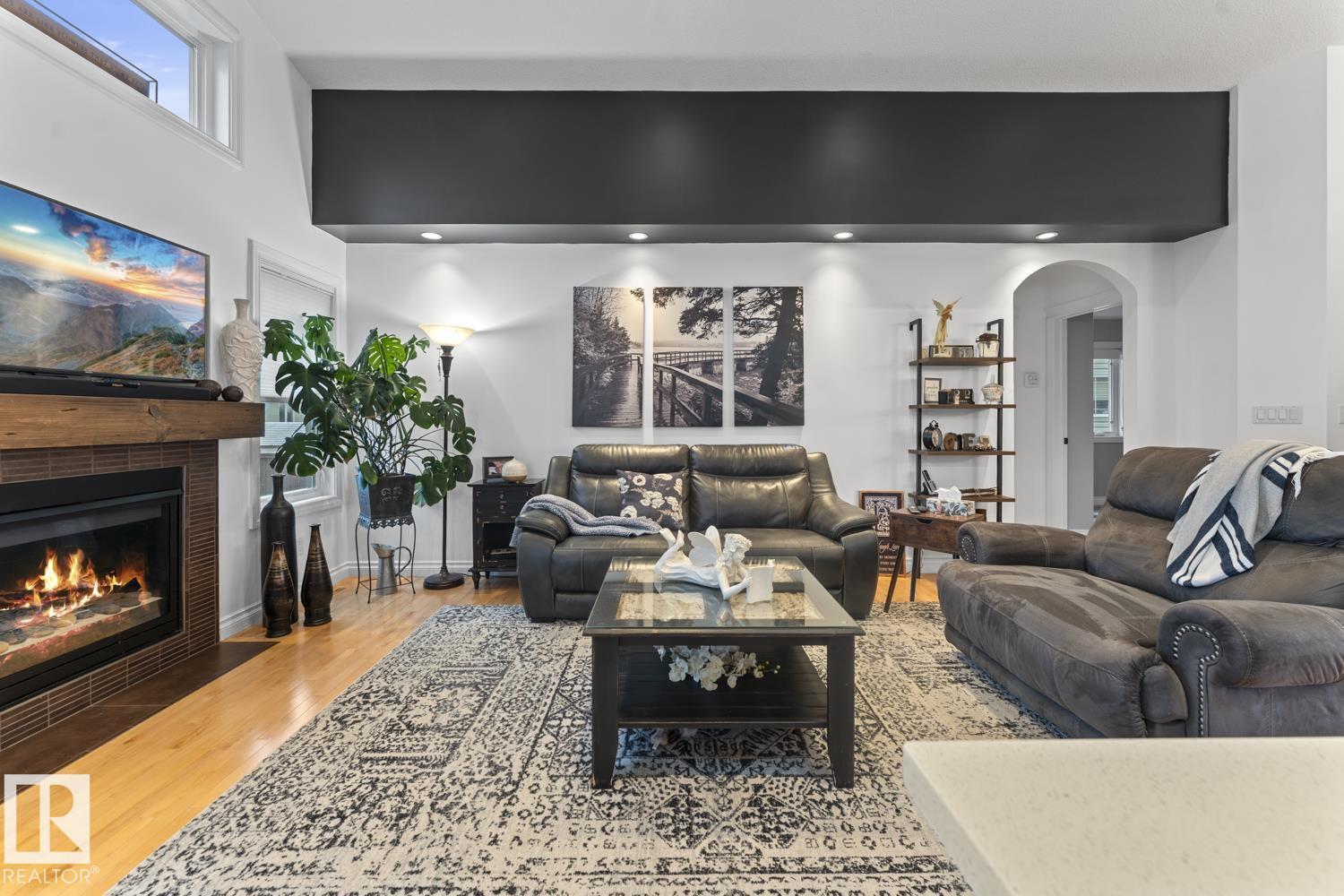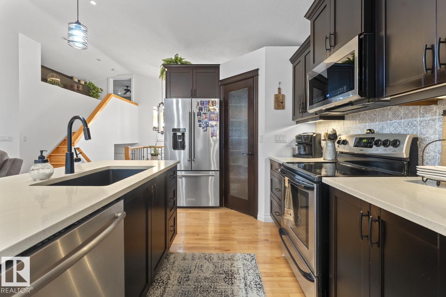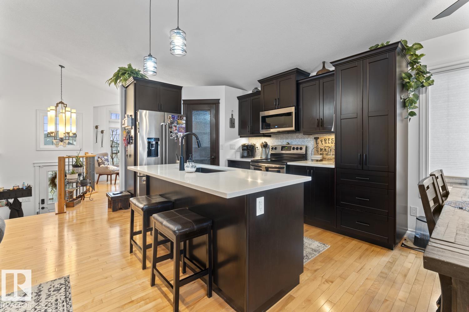Meticulously maintained 4 bedroom 3 bathroom home in Nelson Heights! This home will WOW you with hardwood floors, vaulted ceiling, gas fireplace and open concept layout. Espresso kitchen with quartz counters, additional built in cabinetry, pantry,granite sink & S/S appliances. NEW light fixtures, NEW custom blinds & custom closet organizers. Direct deck access off the dining with gazebo, beautiful landscaped yard and oodles of summer space. The front of the home offers a formal dining space or sitting room. The primary suite is on the upper level. Nice private bedroom space with a 4 piece ensuite (soaker tub) and walk in closet. Downstairs is fully finished with 9' ceilings, 1 bedroom, 4 piece bathroom and a spacious family room...all warmed with in floor heat. ICF foundation, triple pane windows, HRV system, tankless hot water, central vac & NEW washer/dryer(2022). Attached HEATED garage. A+ location in a cul de sac, just a few blocks to the waters of Cold Lake. (id:51989)