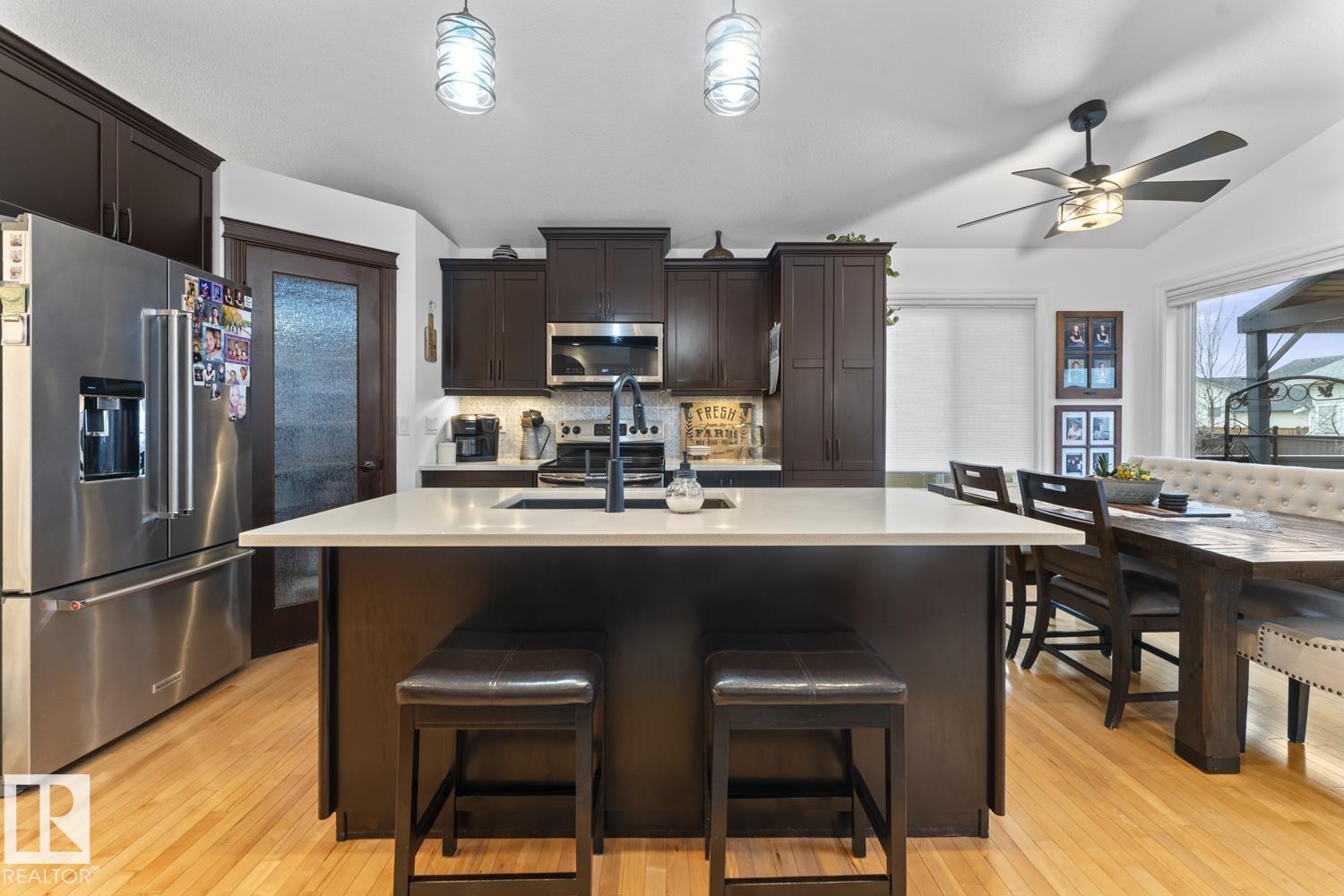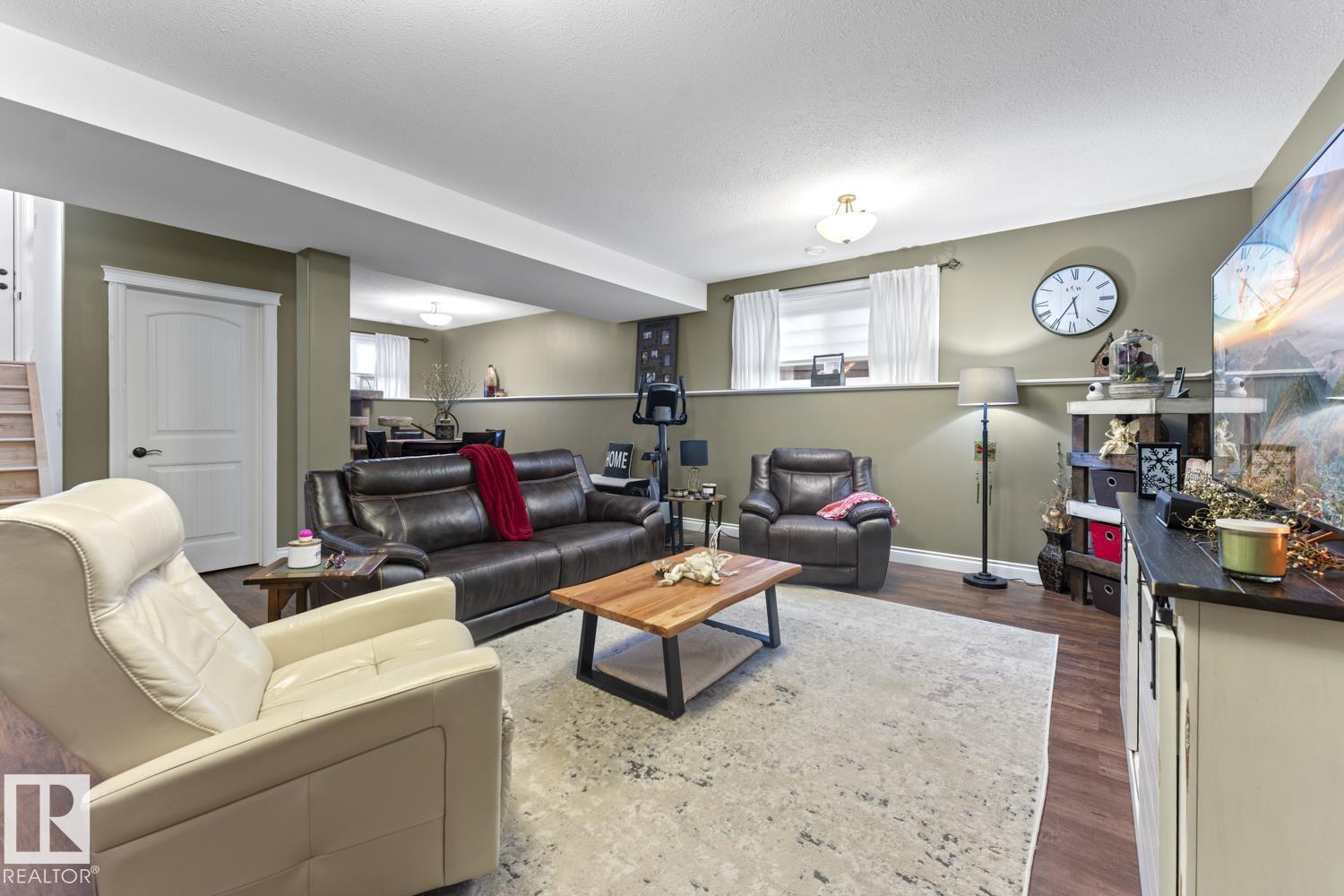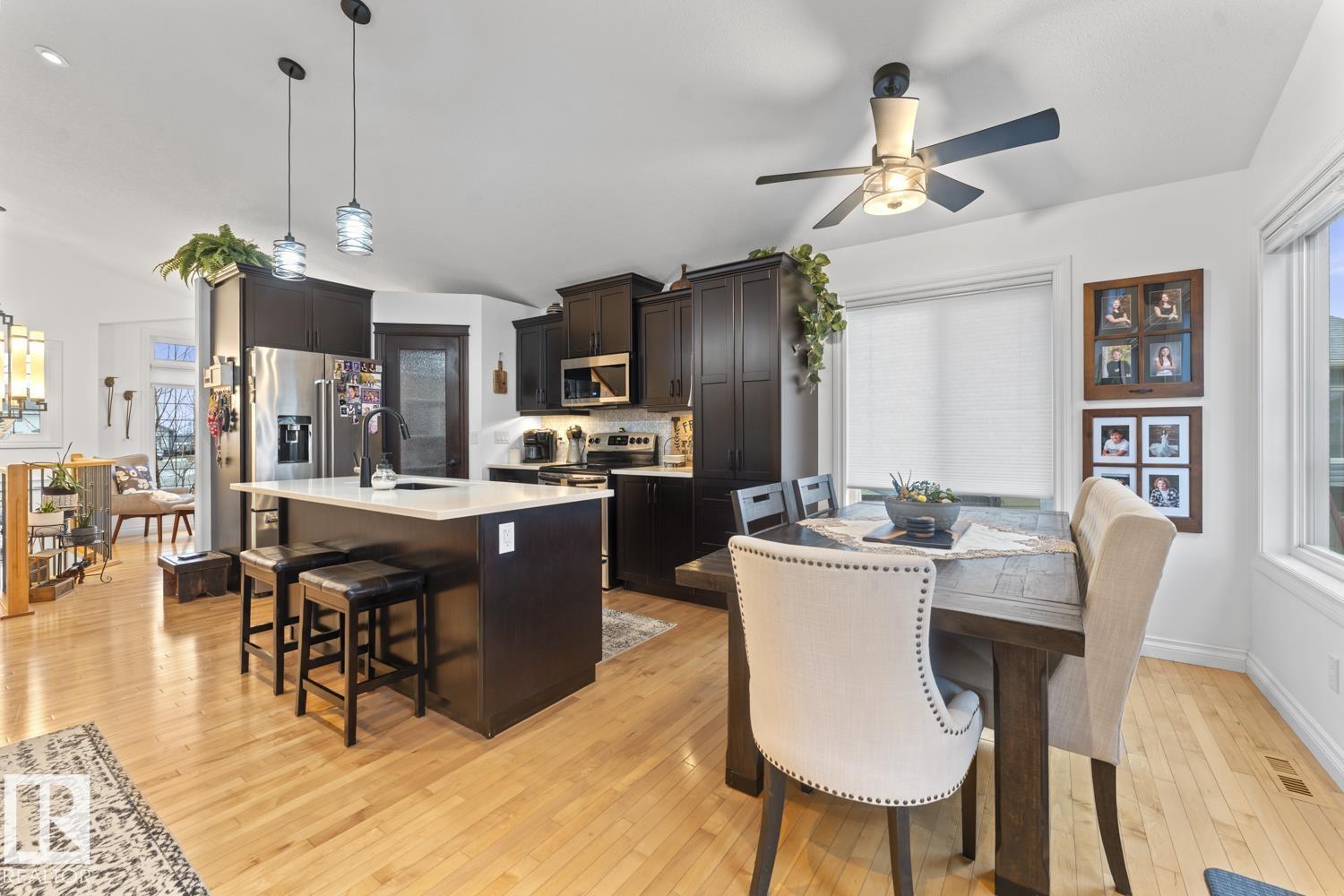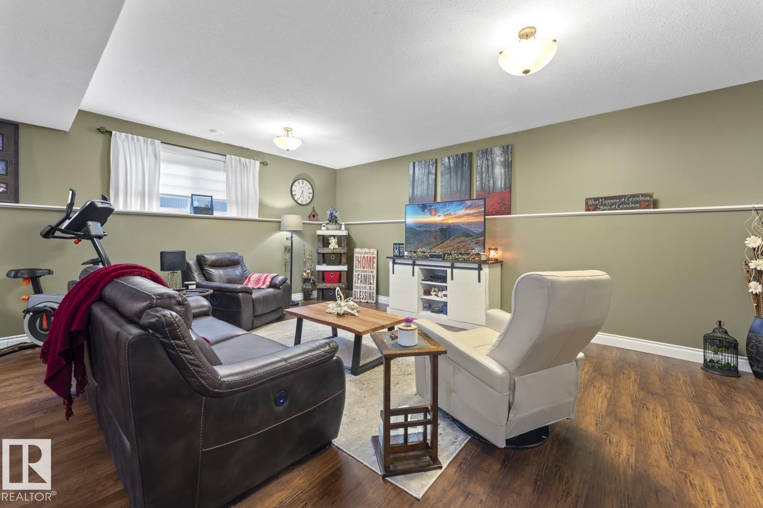 Meticulously maintained 4 bedroom 3 bathroom home in Nelson Heights! This home will WOW you with hardwood floors, vaulted ceiling, gas fireplace and open concept layout. Espresso kitchen with quartz counters, additional built in cabinetry, pantry,granite sink & S/S appliances. NEW light fixtures, NEW custom blinds & custom closet organizers. Direct deck access off the dining with gazebo, beautiful landscaped yard and oodles of summer space. The front of the home offers a formal dining space or sitting room. The primary suite is on the upper level. Nice private bedroom space with a 4 piece ensuite (soaker tub) and walk in closet. Downstairs is fully finished with 9' ceilings, 1 bedroom, 4 piece bathroom and a spacious family room...all warmed with in floor heat. ICF foundation, triple pane windows, HRV system, tankless hot water, central vac & NEW washer/dryer(2022). Attached HEATED garage. A+ location in a cul de sac, just a few blocks to the waters of Cold Lake. (id:51989)