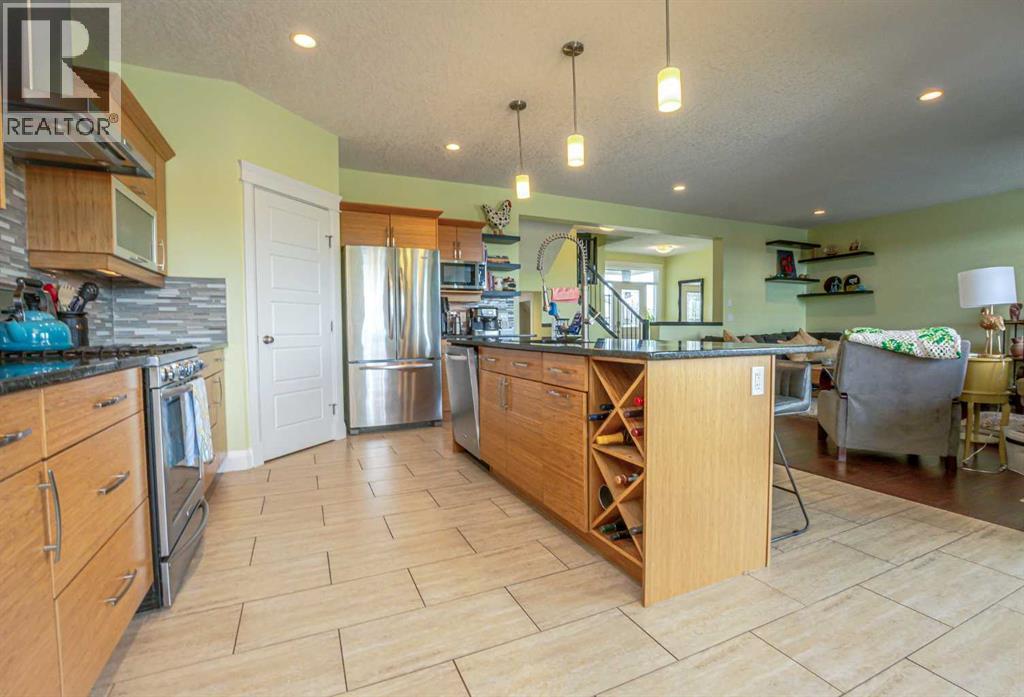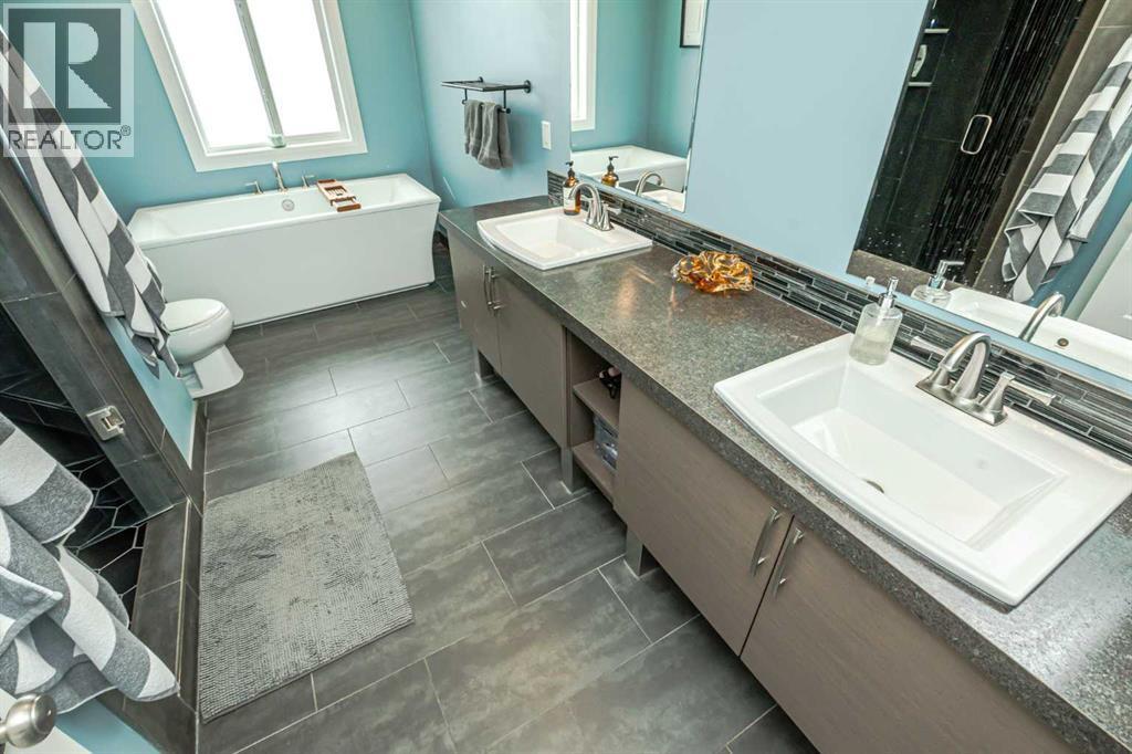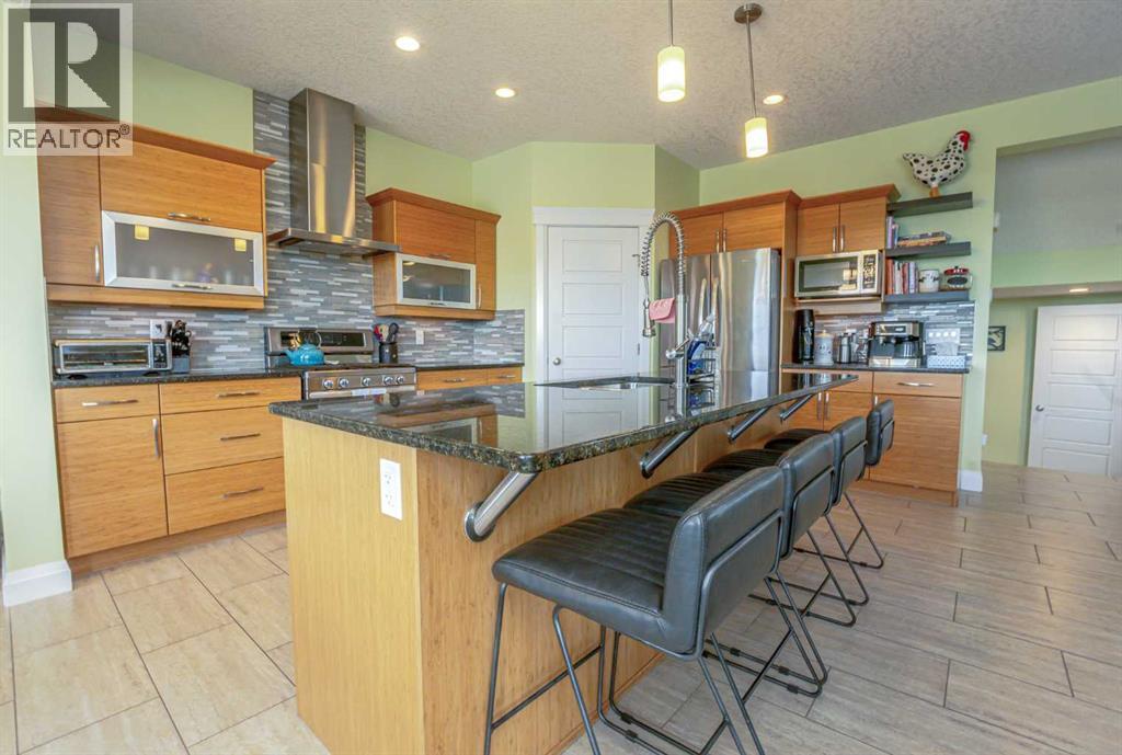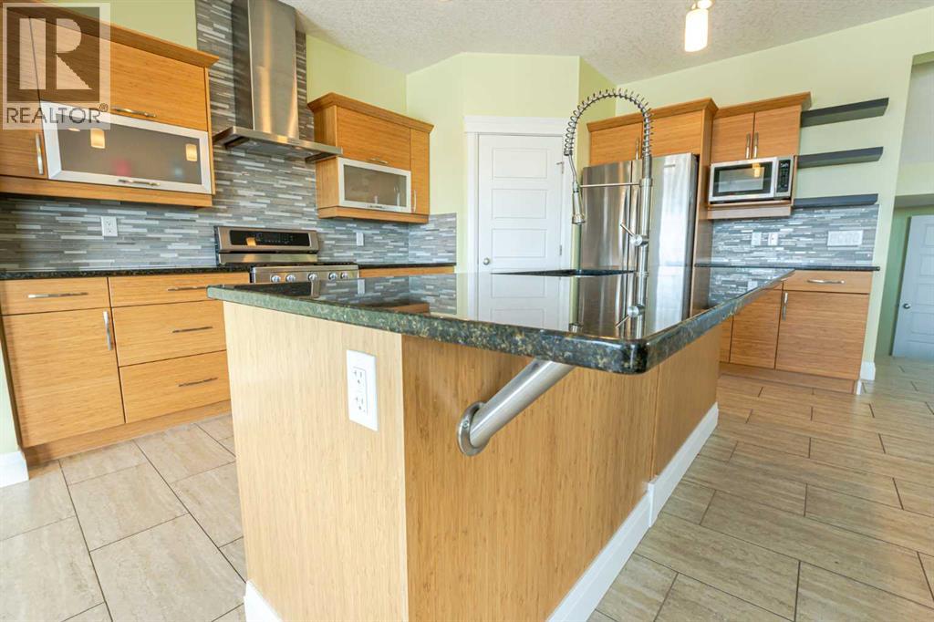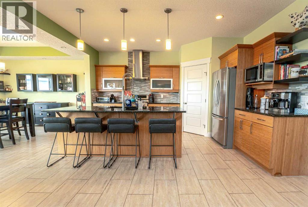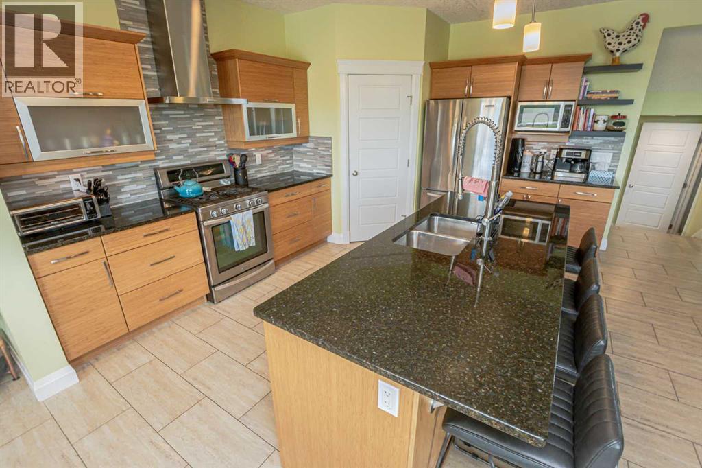 Ready for immediate possession is this beautifully crafted, one-owner custom home located in the highly desirable community of Signature Falls. Ideally situated backing onto a tranquil pond and scenic green space, this well-designed two-storey offers the perfect blend of elegance, comfort, and natural surroundings. As you enter through the spacious front foyer, you’ll immediately notice the pride of ownership and attention to detail throughout. The main floor showcases an open-concept design, highlighted by a warm and inviting living room complete with a cozy gas fireplace. The kitchen is truly a standout, featuring custom cabinetry, a large island with seating, premium countertops, a timeless tile backsplash, and a gas stove. The dining area is bright and welcoming, filled with natural light and offering stunning views of the pond through large windows and sliding patio doors that lead out to the deck. Upstairs, you’ll find a versatile bonus room ideal for a home office, gym, or play area, along with a spacious laundry room. Just a few steps up, there’s a generously sized secondary bedroom and a full 3-piece bathroom. The primary suite is the true showstopper, offering a peaceful retreat with room for a sitting area, access to a private upper deck overlooking the water, a large walk-in closet with custom organizers, and a luxurious 5-piece ensuite featuring double sinks, a soaker tub, and a steam shower. The fully finished walk-out basement is designed with entertaining in mind, boasting a large family room with a home theatre setup, a stylish bar area, a guest bedroom, and extra storage space. Step outside to enjoy the beautifully landscaped backyard, complete with a covered lower patio, a built-in firepit area, and fresh raspberry bushes. Additional highlights include central air conditioning, an on-demand hot water system, and a heated triple-car garage with ample space for vehicles, storage, and hobbies. Conveniently located kitty-corner to a playground and jus t minutes from schools, parks, and shopping, this home offers an exceptional lifestyle in a prime location. Don’t miss your chance to own this truly unique property! Contact your favorite agent today to schedule your private showing! (id:51989)