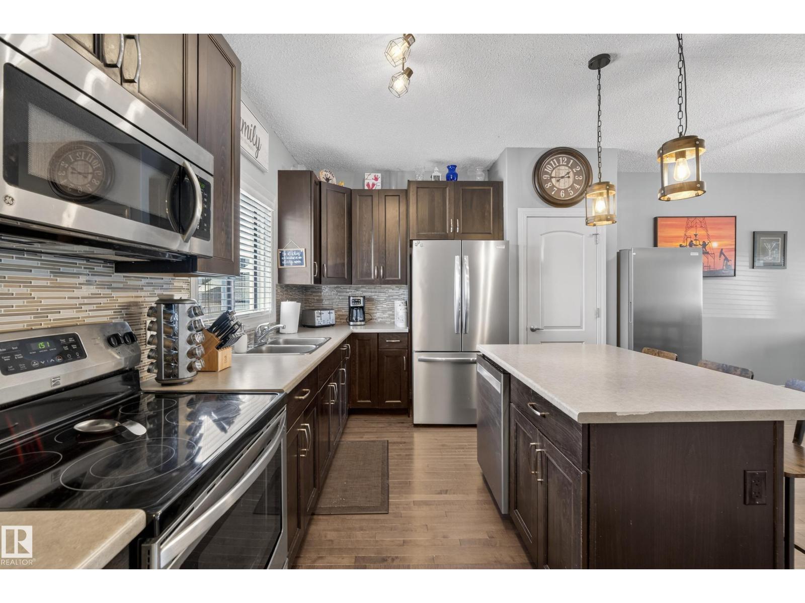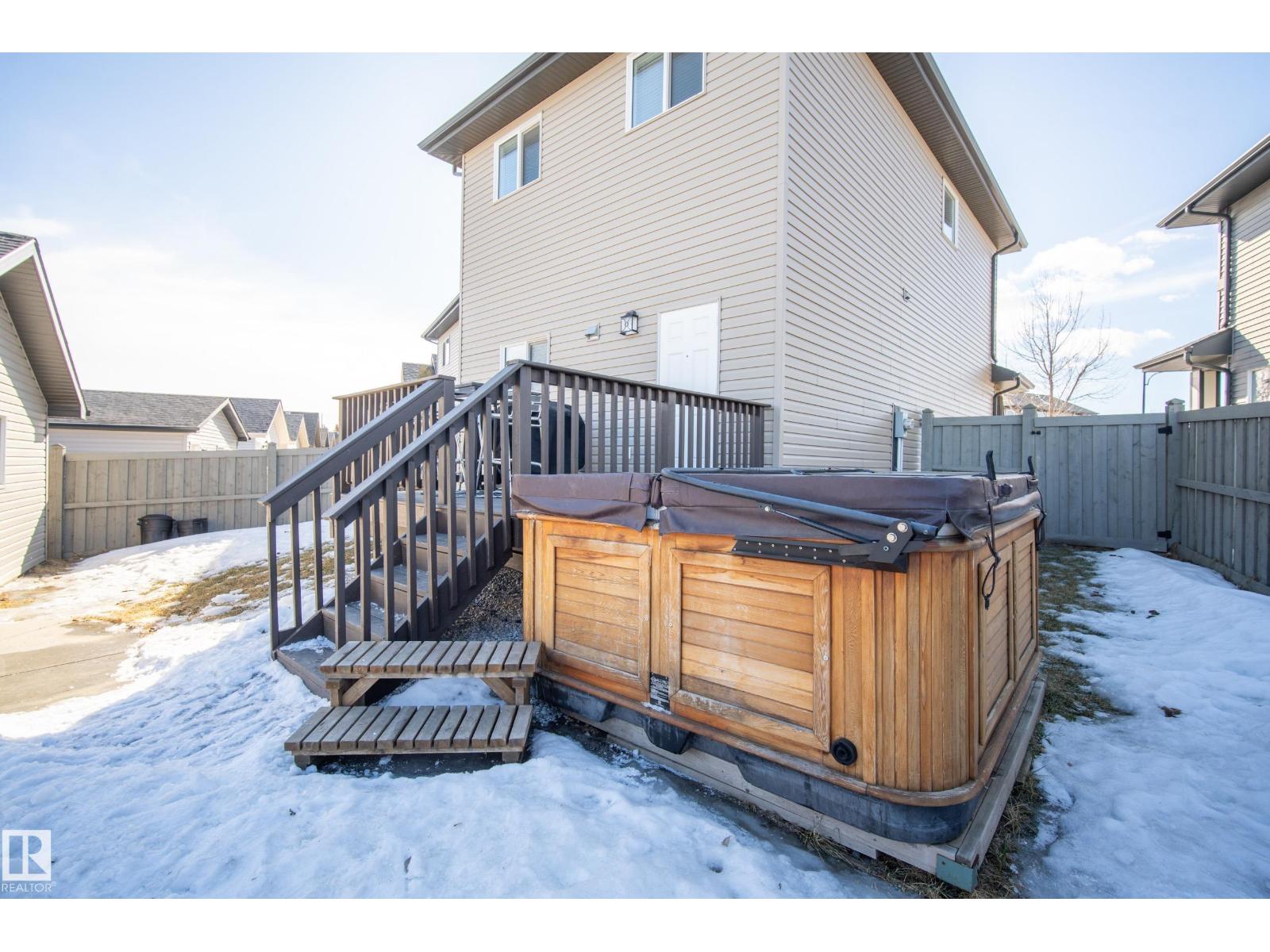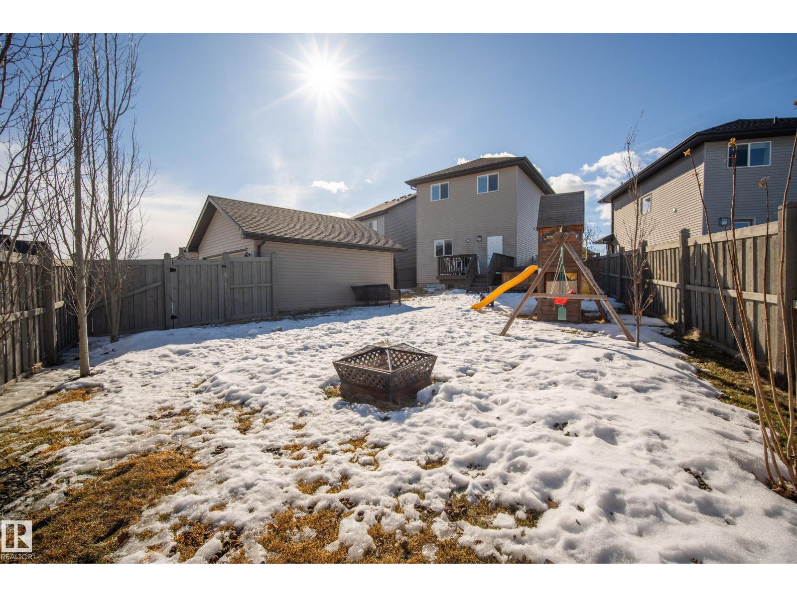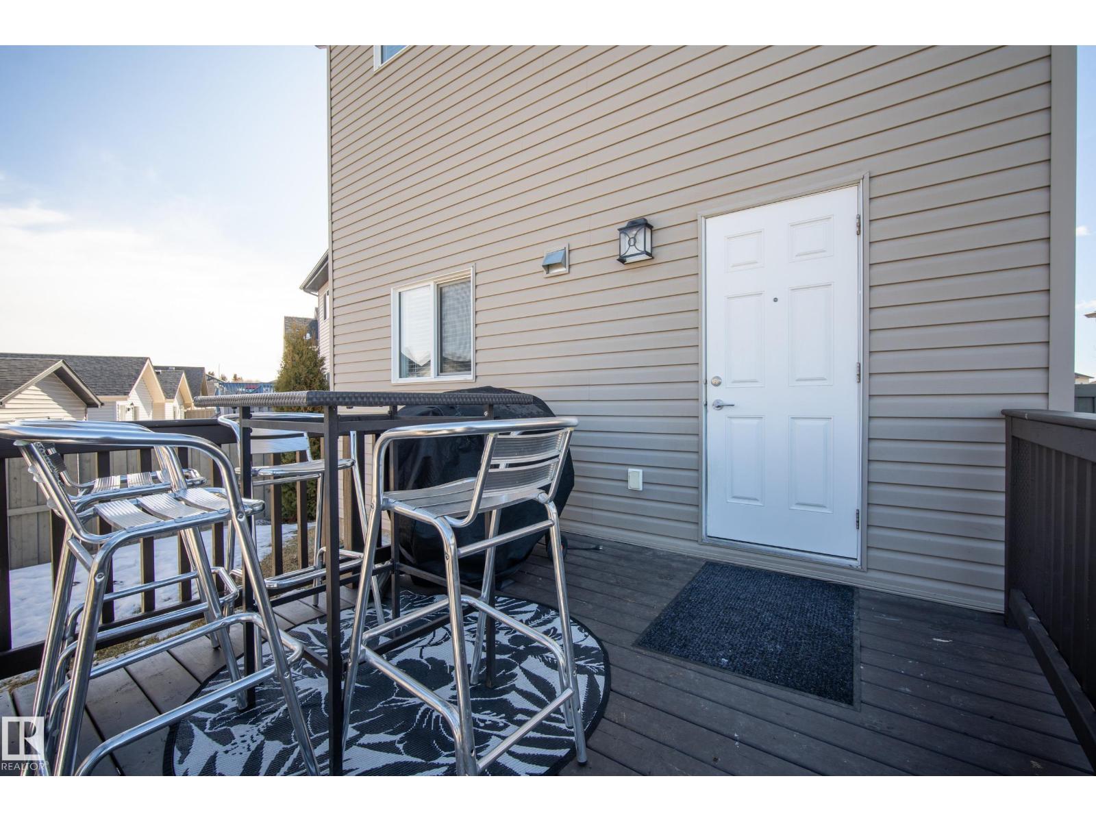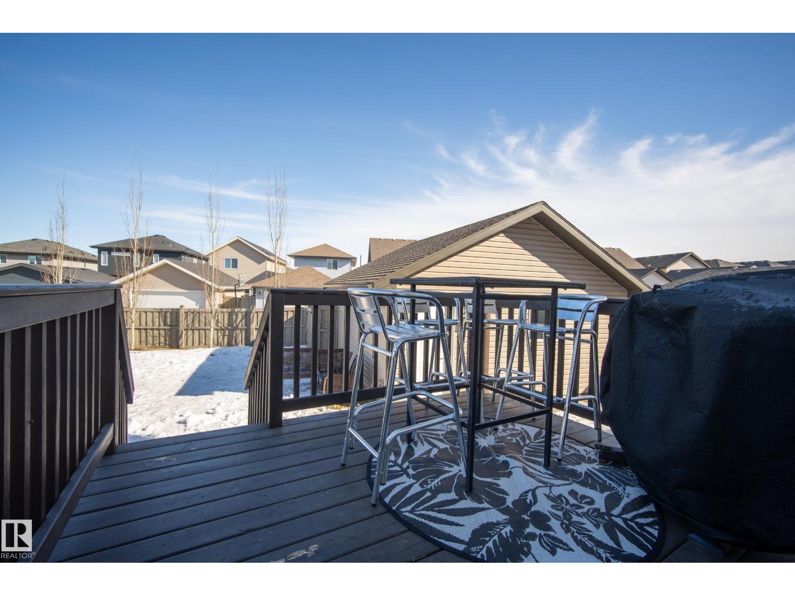 Welcome to Chappelle! This Beautifully well kept Two-Storey Home sits an a MASSIVE PIE LOT on a quiet street. A perfect Open Concept 1431sqft layout with a Dream Backyard that is hard to find. Entering the home you'll find beautiful hardwood flooring, and a custom fireplace surround in the living room. Spacious dining room area and a modern island kitchen with a window overlooking the backyard. A 2pc bathroom and a rear mudroom for all the boots. Upstairs features 3-bedrooms. A large Primary bedroom with a 4pc Ensuite, as well as two additional bedrooms and a 4pc bathroom. The basement is unfinished and a perfect place for storage or a kids play area, ready to be finished if needed. Back to the yard, this oversized lot has a beautiful deck overlooking a Double Detached Garage. The rear property line is over 72ft wide! Plenty of room for RV storage, gardening or garage additions. These lots aren't available often, don't miss this amazing opportunity. Close to all Chappelle Amenities! (id:51989)