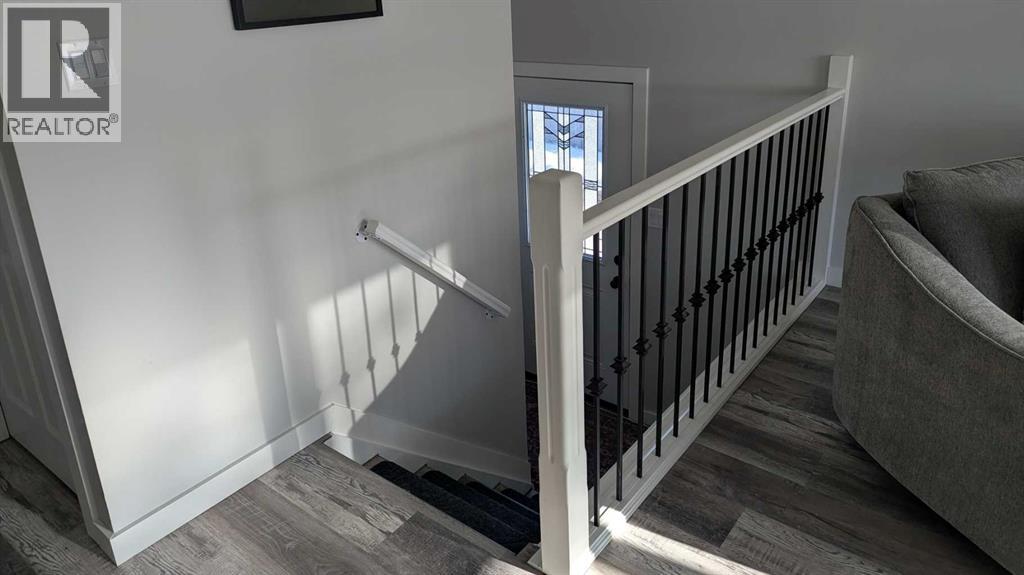 Located in the desirable Duggan Park area of Camrose, this fully finished duplex offers 2 bedrooms up and 2 bedrooms down with 2 full bathrooms. This home features a brand-new kitchen, with new cabinets, countertops, and LG stainless steel appliances. Enjoy new vinyl plank flooring throughout, new windows and window coverings, a new furnace, and hot water on-demand system. The fully finished basement adds great extra living space. Outside, you'll love the large deck with storage underneath, park views, and an oversized single detached garage. Don't miss your chance to call this beautiful completely updated move-in-ready home yours! (id:51989)