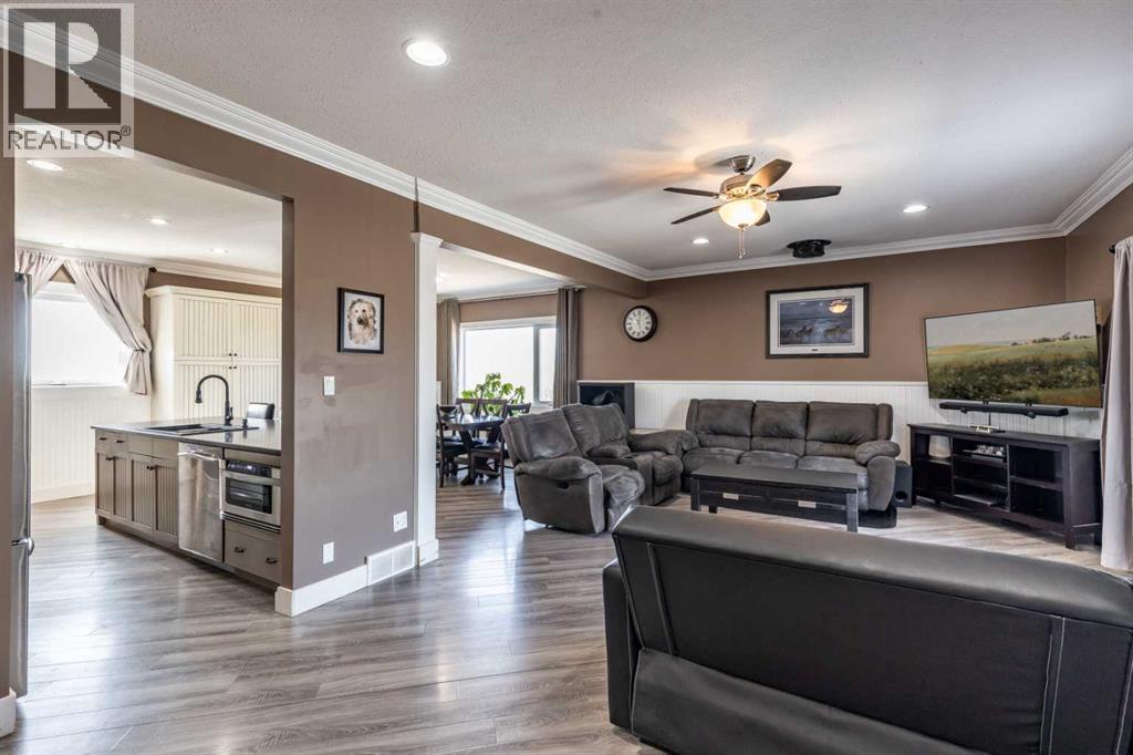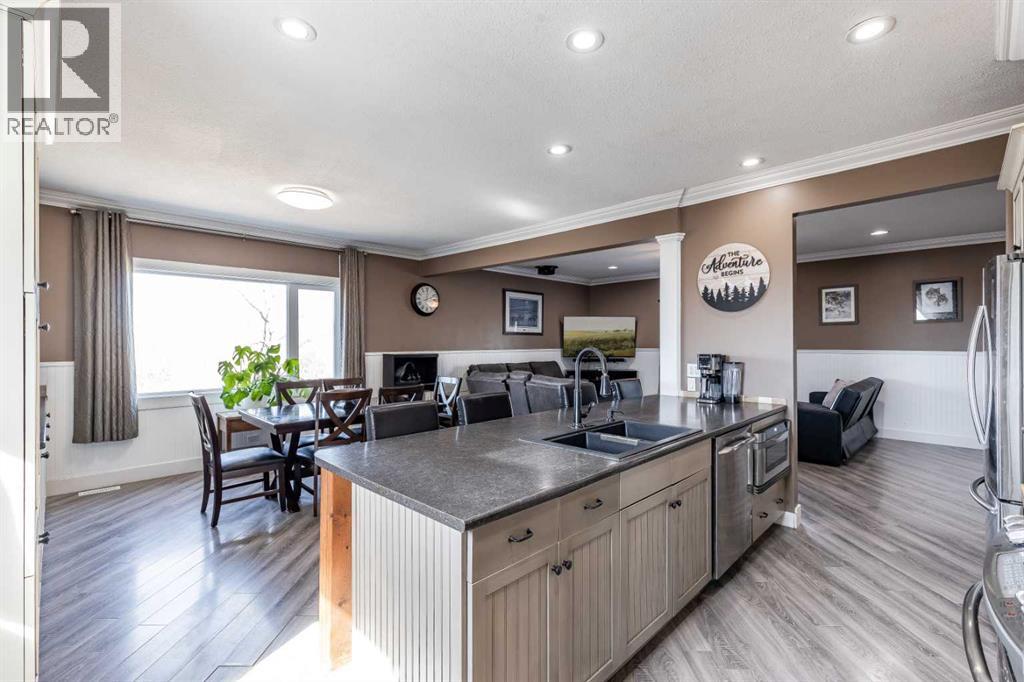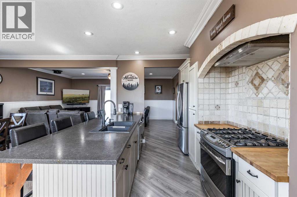 Welcome to acreage living just minutes from the city! Situated on 6.5 acres only 9 km from city limits with paved road access, this well-maintained property offers the perfect balance of space, functionality, and convenience. The home features 4 bedrooms and 3 bathrooms with 9-foot ceilings on the main floor that create a bright, open feel throughout. The beautiful kitchen is equipped with stainless steel appliances and a large island. Just off the living room, there is access to a large deck—perfect for enjoying the peaceful surroundings and outdoor living. The property is serviced with City Water through Westside Water Co-op and includes SMRID irrigation water rights, ideal for maintaining the yard and land. The 30’ x 40’ detached garage/shop is a standout, offering 14-foot ceilings, two overhead doors (12’x10’ and 7’x16’), and a gas line already in place. For those with equestrian interests, the property also includes a 100’ x 100’ outdoor riding arena, horse shelter, and automatic heated waterer. Recent updates provide peace of mind, including new class 4 shingles on the house (2022), new windows and doors (2021), and a new septic tank (2025). Additional features include heated flooring in the basement bathroom and Starlink internet availability. This property delivers the best of acreage living with quick and easy access to the city. (id:51989)