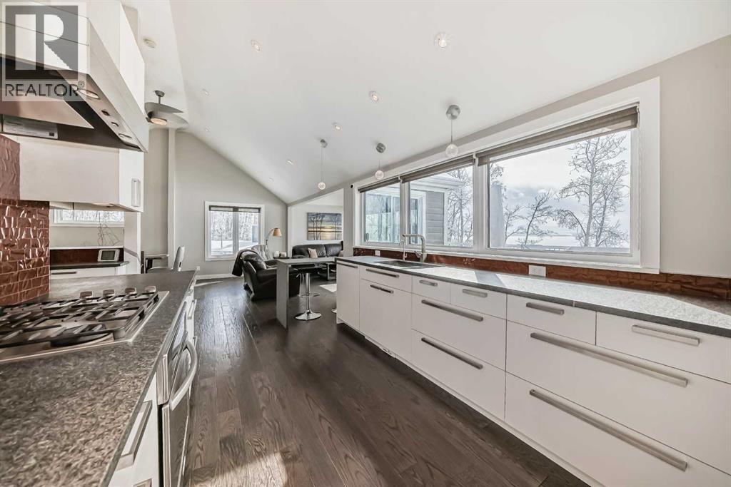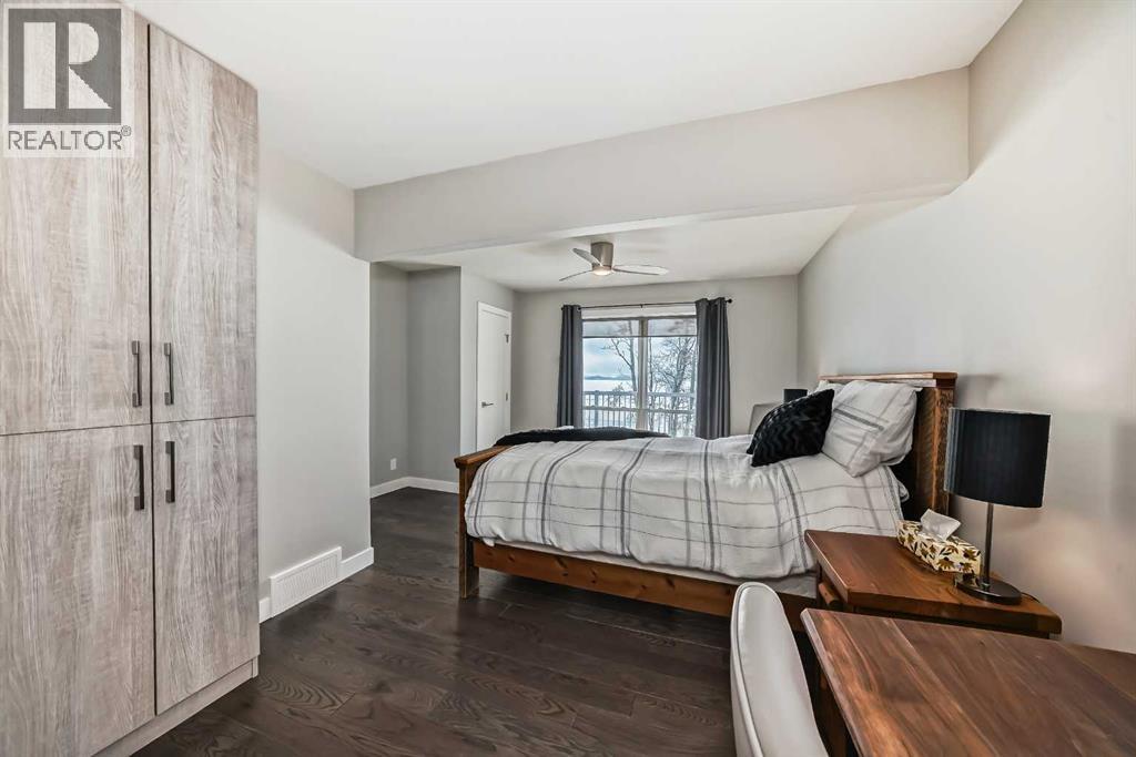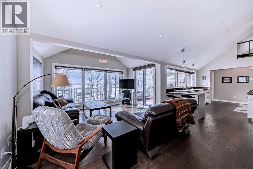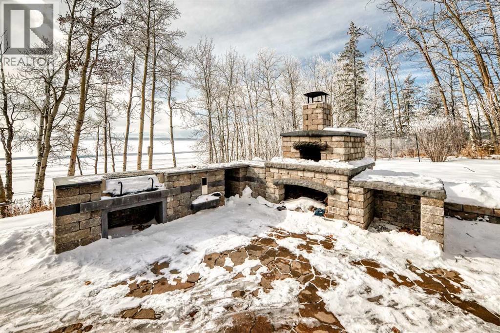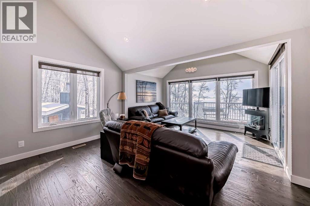 One of the finest, most pristine lots in the Summer Village of Sunbreaker Cove offering “146 feet of lake frontage”. Designed to maximize year round comfort and enjoyment this home has it all: Vaulted ceilings, large windows, an abundance of natural light, lovely high-end finishings and upgrades. Enjoy the daily magnificent unobstructed Lake views from nearly every vantage point. This bright, thoughtfully and tastefully renovated open-concept layout creates a seamless flow across the main level and the fully developed walk-out lower level, ideal for relaxing and entertaining. A spacious dinning area, compliments the well-appointed kitchen with eating nook, complete with granite counter-tops, gas stove-top, convection microwave, bar fridge and a reverse osmosis water system. This home offers 3 generous size bedrooms, including a main level primary with a large window showcasing sweeping Lake views, substantial built in closets and space for a cozy reading chair. Thru the mudroom you can access a charming loft which adds character and flexibility to this space. The bright lower level features a large family room with in-floor heating, a wood-burning fireplace, and a versatile office nook that includes a Queen size fold out desk/bed offering extra sleeping options. The lower level has 2 bedrooms-one with a double log bunk bed, a full bathroom, nicely set up laundry room and a utility/storage room. Walk out to a private unique outdoor living space featuring a partially covered stone patio with a large fire pit and built-in outdoor kitchen complete with your own pizza oven. Imagine sitting around the fire pit overlooking your spacious yard adorned with fruit and ornamental trees enhanced by the stunning Lake views. This is the perfect setting for entertaining year round, sharing stories with friends and family under the stars. Adding to the appeal is a 1/3 ownership in the dock located directly in front of the property. Entering the property you will se e a single car garage with room for storing all your lake toys and a car port with an asphalt driveway. (id:51989)