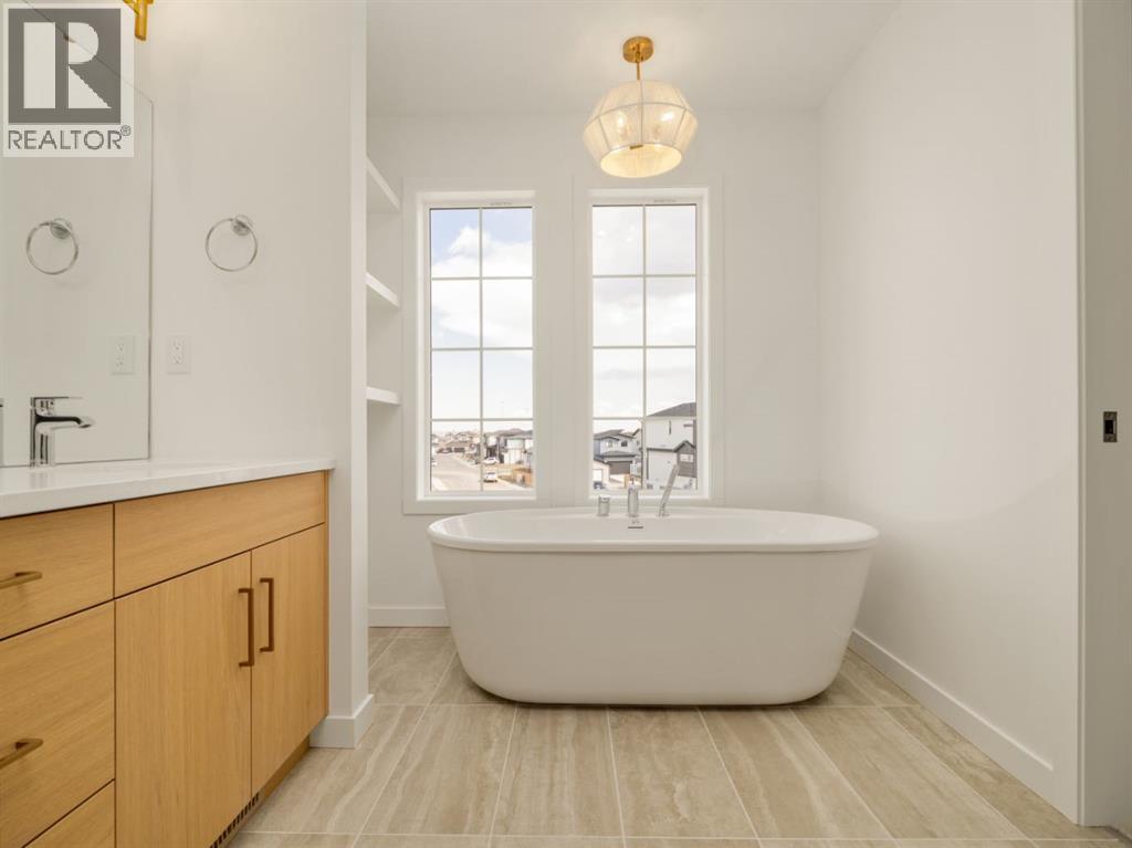 This stunning property "THE AVERY" By Avonlea features a custom-selected exterior with upgraded accent materials, a welcoming front entry with a coat closet, a convenient mudroom and half bathroom off the garage. The spacious kitchen includes an 8-foot island, perfect for meal prep and entertaining. The living room has a cozy gas fireplace with a custom mantel detail. The open-concept design seamlessly connects the kitchen, living, and dining spaces. Upstairs, you'll find a versatile bonus room, a practical laundry room with a linen closet, two generously-sized bedrooms, and a well-appointed bathroom. The expansive primary bedroom includes a walk-in closet and a luxurious 5-piece ensuite with a free-standing bathtub. This home combines modern design with thoughtful details, offering everything you need for comfortable and stylish living. Basement is undeveloped but set up for Family room, bedroom and another full bathroom. You will also enjoy the LARGE 2 CAR GARAGE and your family will enjoy the large back yard. Home is virtually Staged. NHW. Located close to park and playground.FIRST TIME BUYER! ASK ABOUT THE NEW GOVERNMENT GST REBATE PROGRAM WHERE YOU CAN GET THE GST BACK. CERTAIN RESTRICTIONS APPLY (id:51989)
