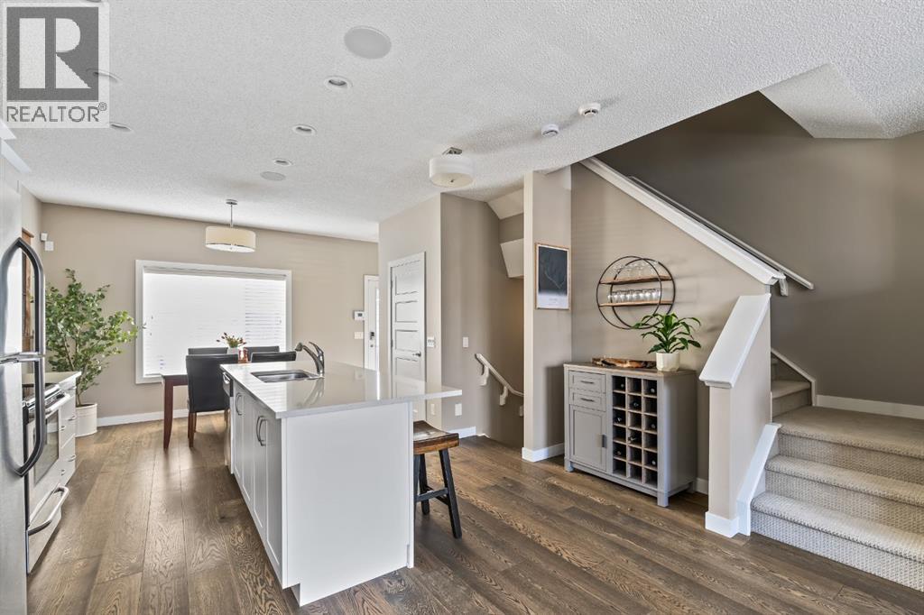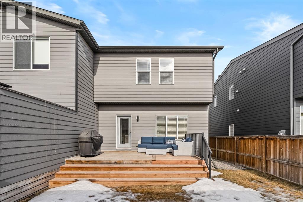 Welcome to Walden, a family-friendly and easily accessible southeast Calgary community! This former Cardel-built show home offers 3 bedrooms, 2.5 bathrooms, and 1,342 sq. ft. of beautifully designed living space. As you approach the home, you’ll appreciate the landscaped front yard, the attractive aggregate walkway leading to the front entrance and the upgraded hardy board siding on the exterior. Inside, the bright and inviting main floor features 9’ ceilings, engineered hardwood flooring, and a functional open-concept layout ideal for both everyday living and entertaining. The modern kitchen is a standout with quartz countertops, stainless steel appliances, glass tile backsplash, a large central island, and contemporary finishes. A generously sized pantry provides excellent storage for food and small appliances. Completing the main floor is a conveniently located powder room with an upgraded vanity. Upstairs you’ll find the convenience of upper-floor laundry and three well-appointed bedrooms, including a comfortable primary retreat featuring a walk-in closet and a 4-piece ensuite. An additional 4-piece bathroom serves the secondary bedrooms. Downstairs the finished stairwell leads to the full unfinished basement, offering excellent potential for future development. The mechanical system is neatly positioned in the back corner, making it easy to maximize the remaining space. Step outside through the rear entrance to enjoy the oversized deck, perfect for summer entertaining.The south-facing, fully fenced backyard offers plenty of green space to relax or for pets to play. Additional features include fresh paint, central A/C, Hunter Douglas blinds, central vacuum, and a detached double garage.The home is finished with a modern exterior elevation and stylish design selections throughout, creating a polished and move-in-ready feel. Walden is surrounded by beautiful parks, playgrounds, scenic pathways, golf courses, and nearby amenities in Legacy. With quick access to McL eod Trail, Deerfoot Trail and Stoney Trail, commuting anywhere in the city is simple while still enjoying the charm of a connected community! (id:51989)