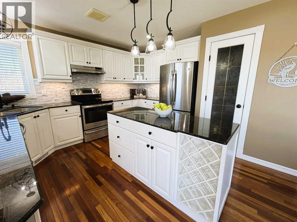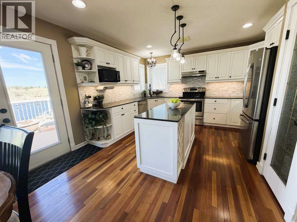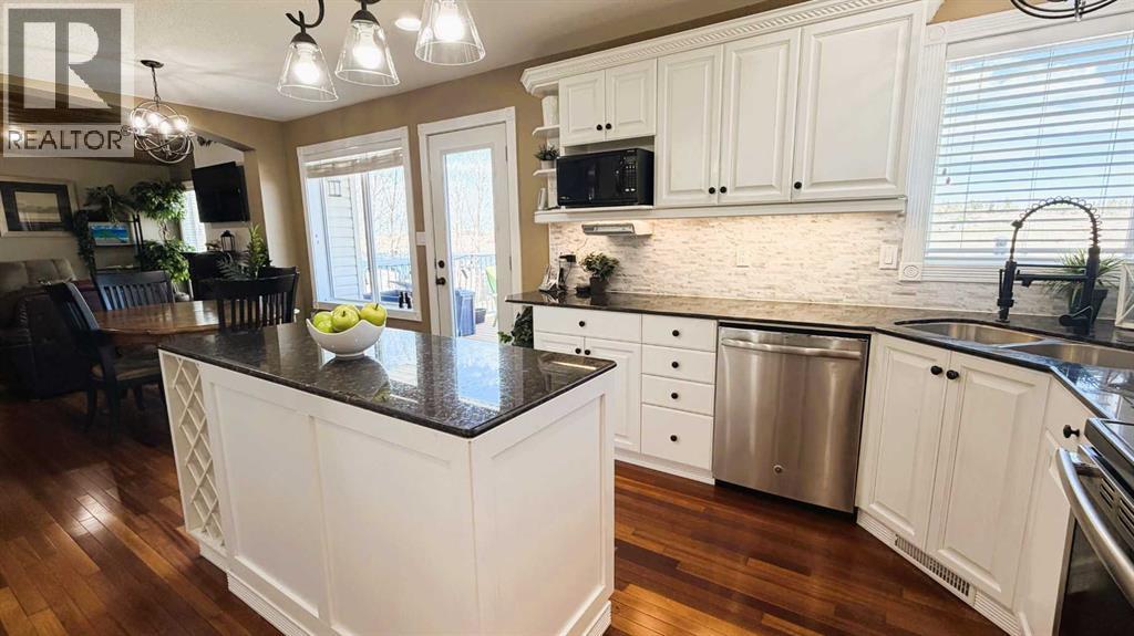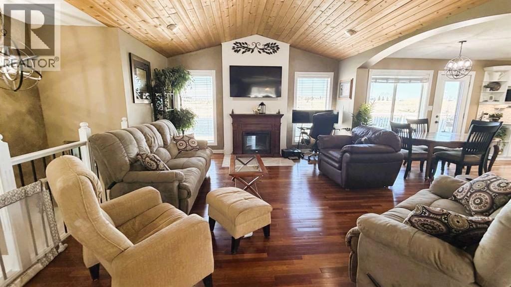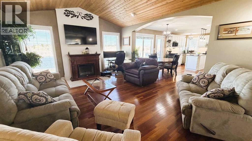 Experience serene living just a short ten-minute drive from town, where this meticulously maintained property offers tranquility and picturesque waterfront views. Enjoy leisure activities such as fishing from your private dock, skating in the winter or exploring local wildlife on the water. The expansive firepit area provides an ideal setting for gatherings with family and friends. Inside, Brazilian Cherry hardwood flooring and vaulted ceilings with rich wood accents in the great room complement custom wainscoting, creating a refined atmosphere throughout the home.The kitchen is designed with you in mind, featuring bright white cabinetry, under-cabinet lighting, granite countertops, a generous pantry, and a functional island. Meals can be enjoyed at the kitchen table or in the formal dining room, suitable for special occasions. Enjoy your morning coffee or wind down from the day with an evening beverage on the deck just off the kitchen. The primary retreat is spacious, accommodating large furnishings and includes an electric fireplace for added ambiance. The ensuite bathroom features double vanity sinks and a luxurious tub, offering both efficiency and relaxation.A sizable second bedroom is accompanied by a fully updated main bath with elegant finishes. The lower level contains two additional large bedrooms, a tiled three-piece bath, and a substantial family room with a wood-burning stove that efficiently heats the entire lower floor if needed. A convenient walk-out allows easy access to the expansive backyard, ideal for family activities and outdoor enjoyment. The C-can has electricity in it and has extra room for your tools, toys or whatever you might need. The 3 car garage is heated and there’s plenty of extra space for your RV, extra vehicles & more! Whether you’re skating on the pond in the winter or paddle boarding in the summer, you’ll never be bored! (id:51989)
