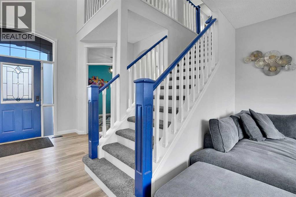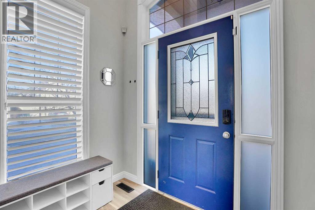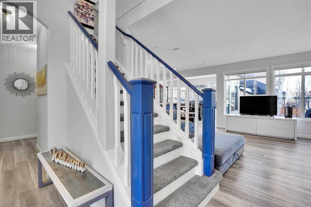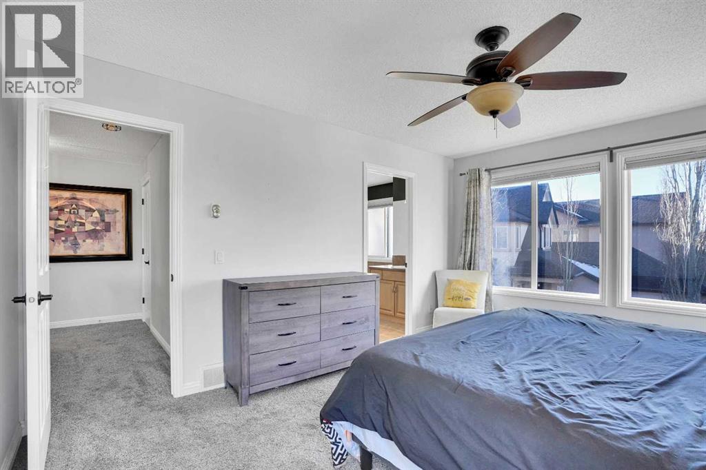 Welcome to the estate side of Cranston. A CORNER LOT located 3 minutes from Stoney/Deerfoot, one block away from the RIDGE &PARK. This Jayman Master Built home boasts almost 3000 sq feet of open concept liveable space. With 4 bedrooms plus a den/office and 3.5 bathrooms, and a FULLY FINISHED basement, and fully insulated, oversized double attached garage. This is the perfect home for a growing family. Featureing stainless-steel appliances, hardwood floors, TWO gas fireplaces, Hunter Douglas blinds, Smart technology NEST thermostat, fully insulated oversized garage. Enjoy your WEST FACING BACKYARD deck, aggregate concrete, fantastic foliage, while cooking with your BBQ GAS LINE. SPECTRA TINTED WINDOWS and CENTRAL AIR CONDITIONING will help you stay in climate controlled comfort your round. You're a stone's throw away from Cranston Ridge which offers more than 400 acres of green space with majestic mountain views overlooking the Bow River. Easy to show, quick/flexible possession available. Value priced at $799,900, book your private showing today, 74 Cranleigh Green SE!!! (id:51989)