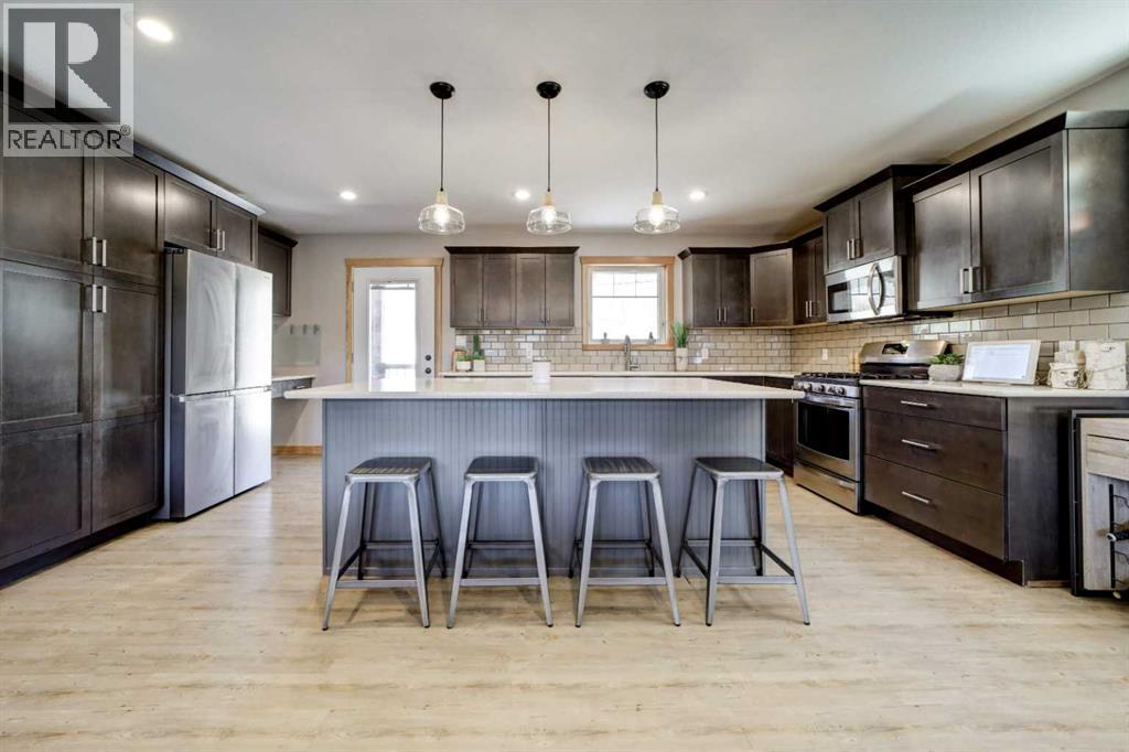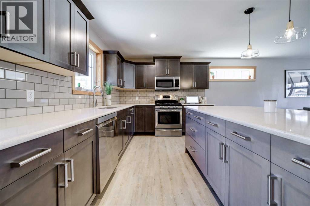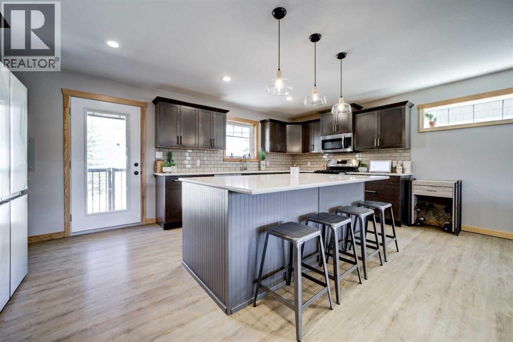 Welcome to 75 Ironstone Drive, where refined mountain living meets thoughtful design in the Ironstone Lookout community. This beautifully finished three-level home offers over 2,500 sq ft of developed living space, featuring 4 bedrooms and 3.5 bathrooms, all tied together by warm earth tones and a striking Douglas fir staircase that carries through each level. The main floor is designed for connection and comfort, with an open-concept layout ideal for entertaining. The kitchen is a standout, complete with a gas stove, gleaming quartz countertops, a large island with sit-up breakfast bar, and a full wall of pantry cabinets for exceptional storage. Just off the kitchen, step out to the exposed aggregate patio, perfect for barbecues (featuring natural gas line) and gathering with family and friends. The living room invites you to unwind with a natural gas fireplace and mantle, while large windows and direct access to the balcony extend your living space outdoors, offering the perfect spot for your morning coffee while taking in the surrounding mountain views. Upstairs, the primary suite offers a peaceful retreat with a custom walk-in closet and spa-inspired ensuite featuring a double vanity, walk-in tiled and glass shower, and private water closet. Additional bedrooms and well-appointed bathrooms provide space for family or guests. The fully developed lower level extends your living space with versatility for recreation, hosting, or relaxation. Additional features include central air conditioning, central vacuum with attachments, and a double attached garage that is insulated and drywalled. The large paved driveway provides ample parking and enhances the home’s curb appeal. Residents of Ironstone Lookout enjoy a well-managed, exceptionally maintained development, allowing you to spend less time on chores like snow removal and lawn care, and more time enjoying everything the Crowsnest Pass lifestyle has to offer. (id:51989)