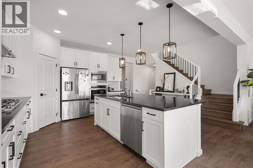 WALKOUT BASEMENT | FACING THE PARK. Welcome to this beautifully designed home in the highly sought-after community of Rockland Park, offering over 3,200 sq ft of thoughtfully planned living space, including a fully finished walkout basement. Perfectly positioned facing a park, this home offers both scenic views and enhanced privacy, while the south-facing backyard allows natural light to pour in throughout the day.The main floor showcases a spacious and functional layout, anchored by a large kitchen featuring ample cabinetry, a well size pantry, and seamless flow into the dining and living areas. The open-concept design is ideal for both everyday living and entertaining, complemented by expansive windows and access to the elevated balcony.Upstairs, you’ll find a well-balanced layout with a generous primary retreat complete with a 5-piece ensuite and walk-in closet, along with two well-sized secondary bedrooms. A bright bonus/family room open to below adds an airy, modern touch, while the convenient upper-level laundry enhances everyday functionality.The fully finished walkout basement extends your living space with a large recreation room, full bathroom, and direct access to the backyard, making it perfect for guests, a home gym, or additional entertainment space.Thoughtfully equipped for the future, this home includes valuable upgrades such as solar panel conduits, A/C rough-in, and a water softener.Combining an exceptional location, smart layout, and long-term efficiency, this is a rare opportunity to own a move-in ready home in one of Calgary’s most exciting and growing communities. Schedule a private showing today and come see it before it’s too late. Some photos are virtually staged. (id:51989)