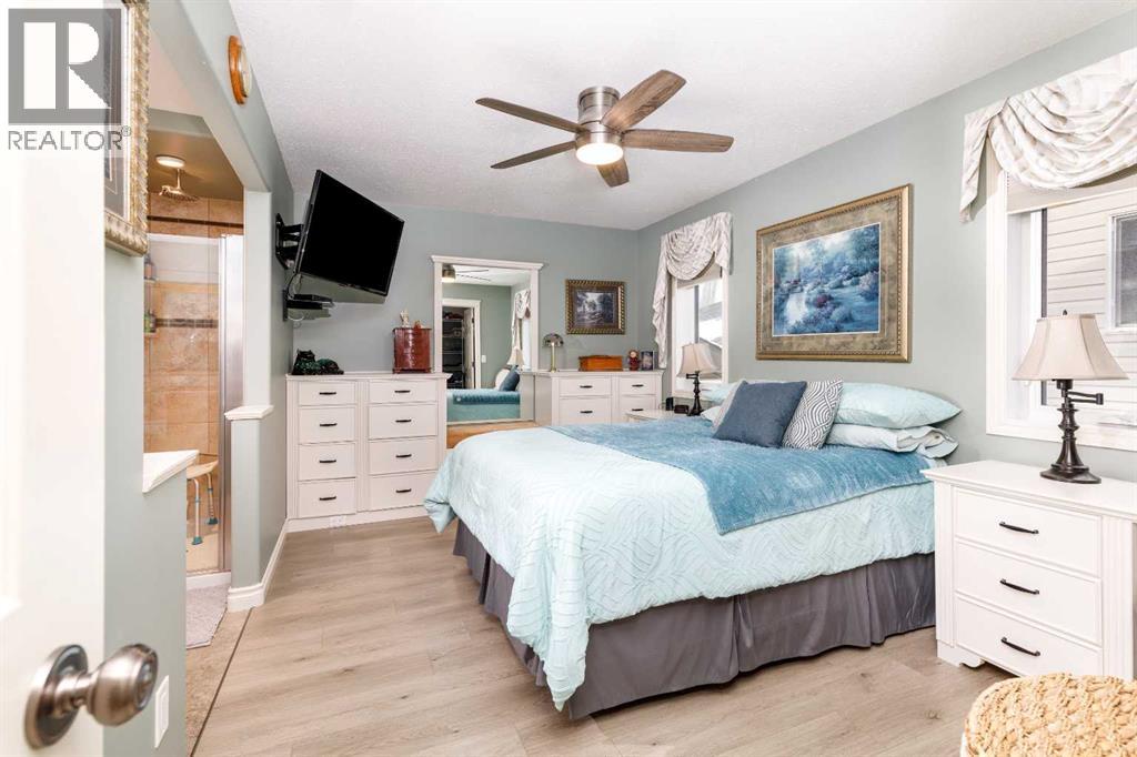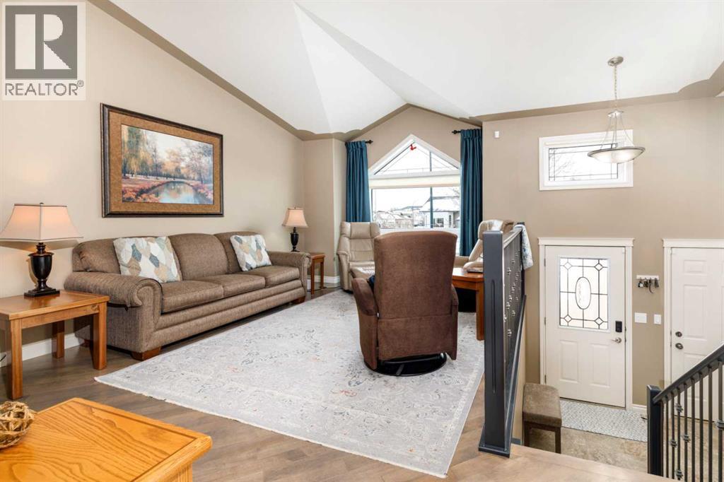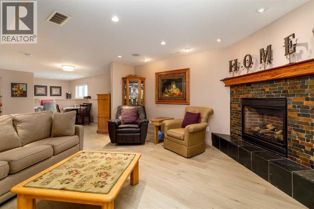 Prepared to be blown away by this absolutely stunning bi-level; everything has been upgraded to beyond the 10's. Bright open floor plan. Spacious kitchen redone with gorgeous white cabinets & quartz counter top in kitchen as well as all bathrooms. New fridge in 2024. Master ensuite has a tub plus a large shower. The laundry area is also on the main floor. New washer & dryer in 2024. Electric fireplace in living room new in 2025. New sinks throughout. New metal railing upstairs. Basement is professionally developed with 2 bedrooms, cozy family room with a corner gas fireplace, corner office & full bathroom. Vinyl plank flooring in basement. Can you believe all new triple pane windows in 2021?? Nothing left to do! Spacious front garage with lots of permanent shelving & epoxy floor. Professionally landscaped & underground sprinklers. New deck boards & aluminum railing. Paving stone walkway & patio. Waterfall feature in back yard. Decorator stone in all flower beds. This is a truly one-of-a-kind home in a great location. If you've been waiting for something special, this is your moment! (id:51989)