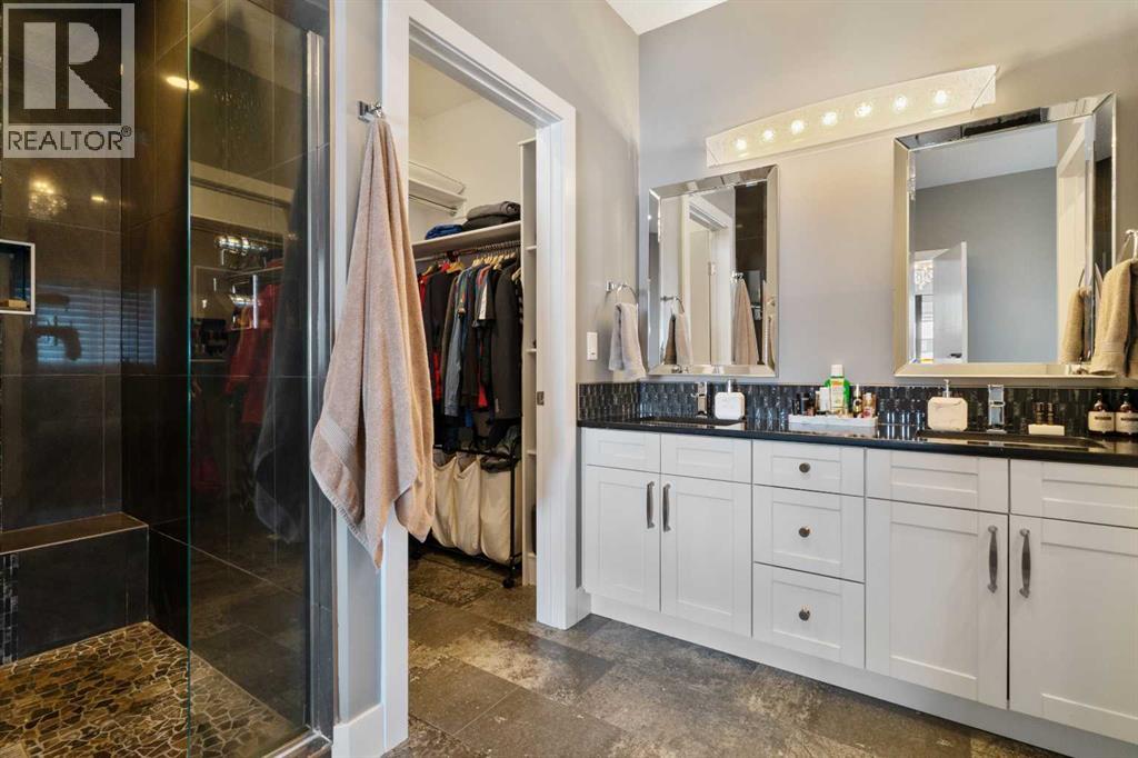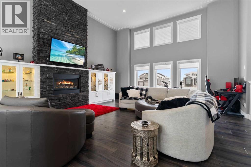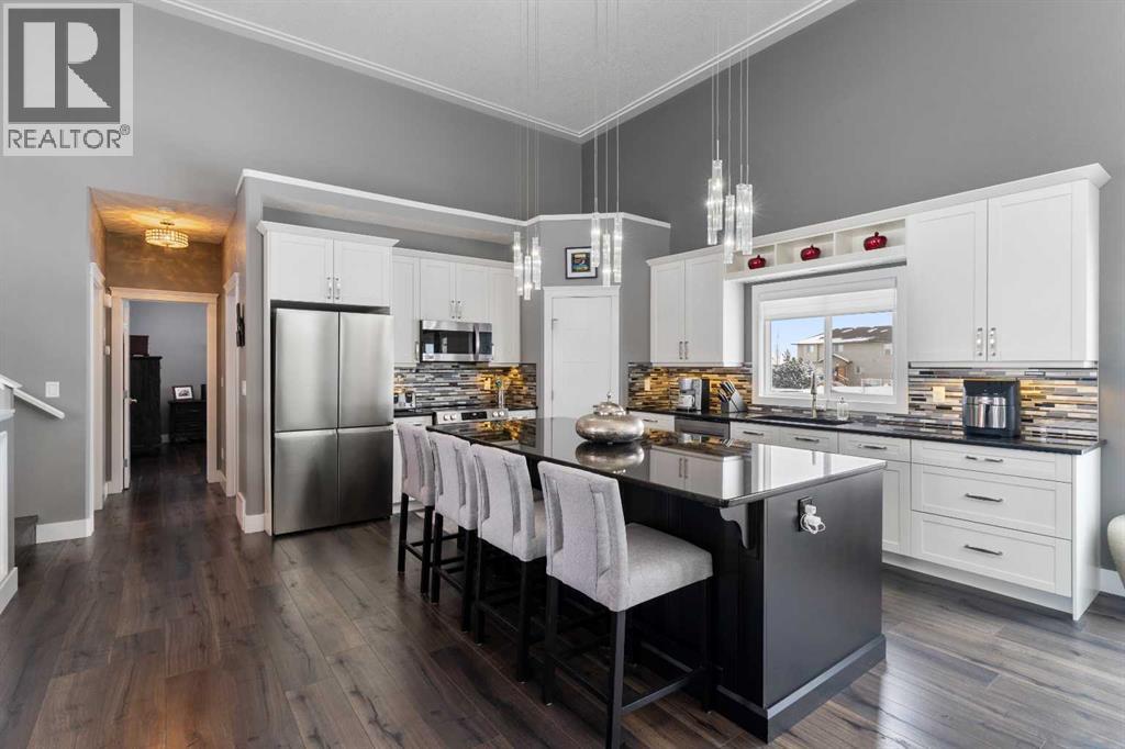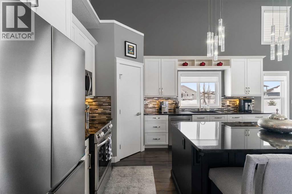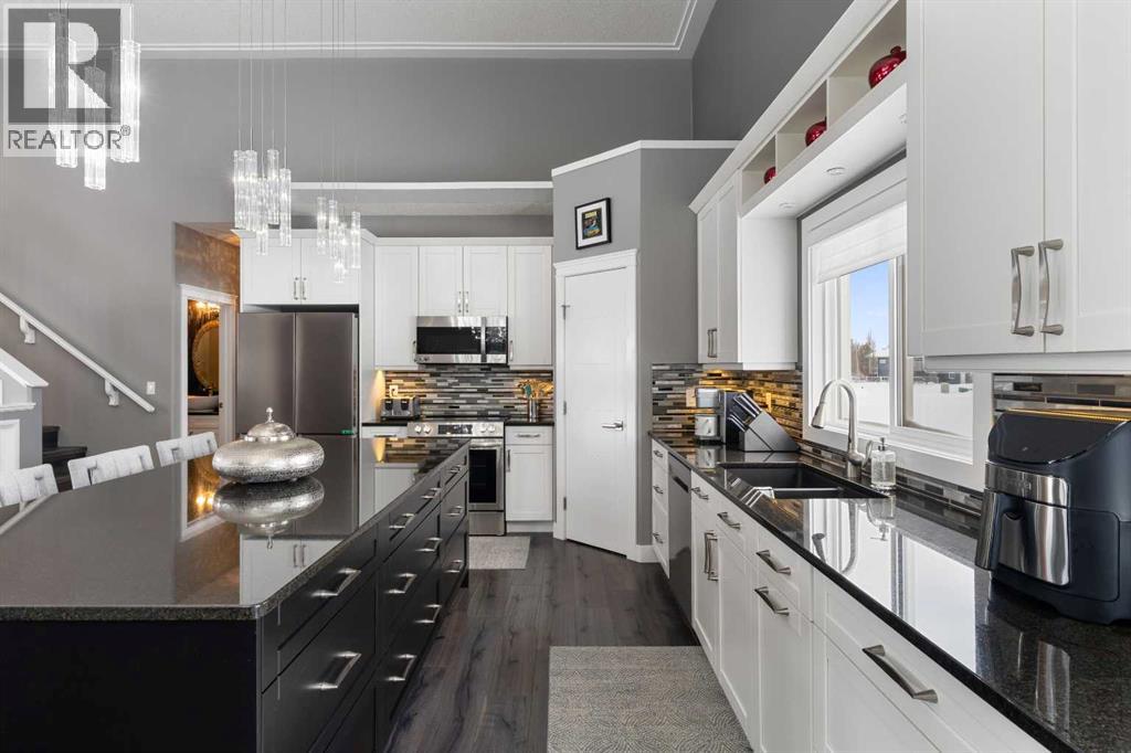 Situated on a half-acre lot in Carriage Lane Estates, this 2,484 sq. ft. modified bi-level offers the space of acreage living with the benefit of lower county taxes. The main floor features an open layout with a two-story great room, gas fireplace, and a kitchen equipped with granite countertops, a large island, and a walk-in pantry. The master suite is located on the main level and includes a tiled shower, jetted tub, and dual walk-in closets. Above the triple heated garage, you’ll find two additional bedrooms, both featuring their own walk-in closets and private 4-piece en-suites. With stone exterior accents, main-floor laundry, and a three-car garage, this home provides a practical yet high-end setup inside and out. (id:51989)