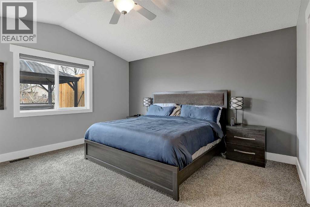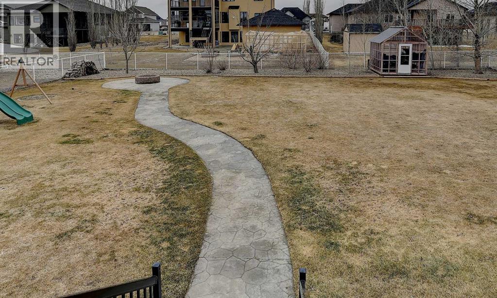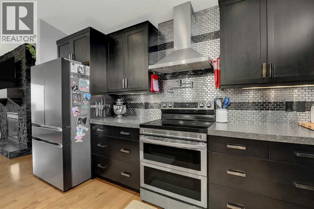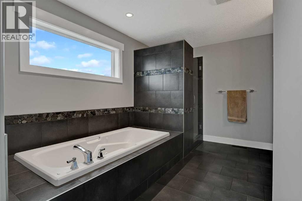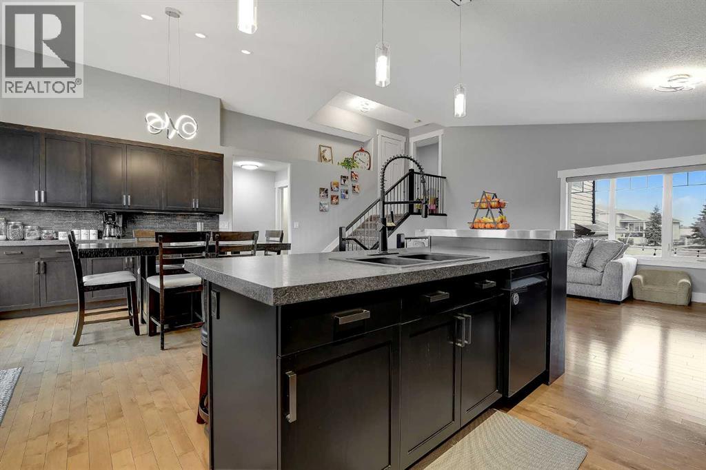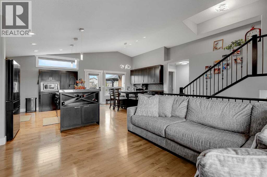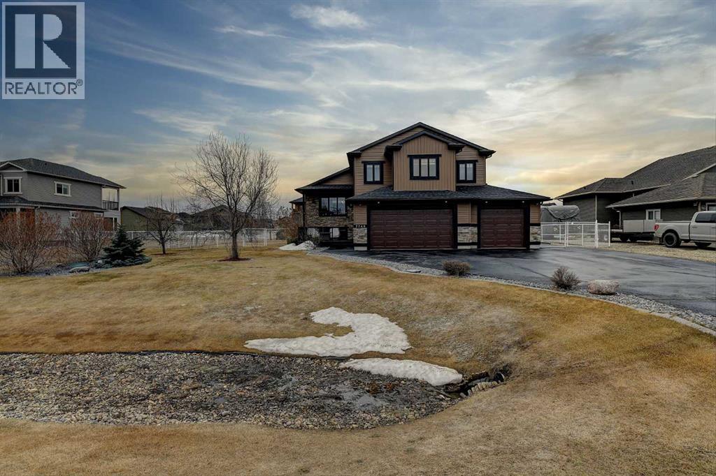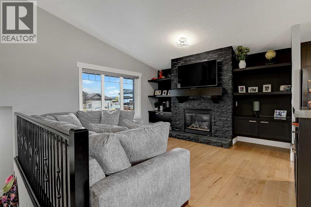Welcome to this immaculate modified bi-level in desirable Carriage Lane Estates, featuring a heated 27 x 36 triple-car garage, spacious driveway, and gated RV parking with outstanding curb appeal.The main floor offers a bright open-concept layout with a welcoming living room centered around a stone-accented gas fireplace with built-in shelving. The kitchen is beautifully finished with brand-new gunmetal refrigerator, dishwasher, and double oven, dark cabinetry, stainless steel backsplash, and a large island with wine rack and ample storage. A half bath and spacious primary bedroom complete the main level. The primary suite features an impressive walk-in closet and private ensuite with jetted tub, stand-up shower, and custom tile work. Both the dining area and primary bedroom provide direct access to the expansive deck and hot tub, overlooking the stunning backyard.The beautifully landscaped yard includes a large deck, few trees, stone pathway to a firepit area, greenhouse, shed, and full fencing for privacy and enjoyment.Upstairs you’ll find two large bedrooms with walk-in closets, connected by a Jack & Jill bathroom, plus a convenient laundry room located above the garage.The fully finished basement offers a massive family room with an additional fireplace and faux stove accent wall, a fourth bedroom, and a full bathroom.Recent upgrades include fresh paint throughout, brand-new shingles (April 2026), and a new deck (2025). Additional features include air conditioning and a full irrigation system servicing the entire property. On the westside of garage there is an RV drain. This move-in-ready home combines space, style, and exceptional outdoor living in one of the area’s most sought-after communities. (id:51989)