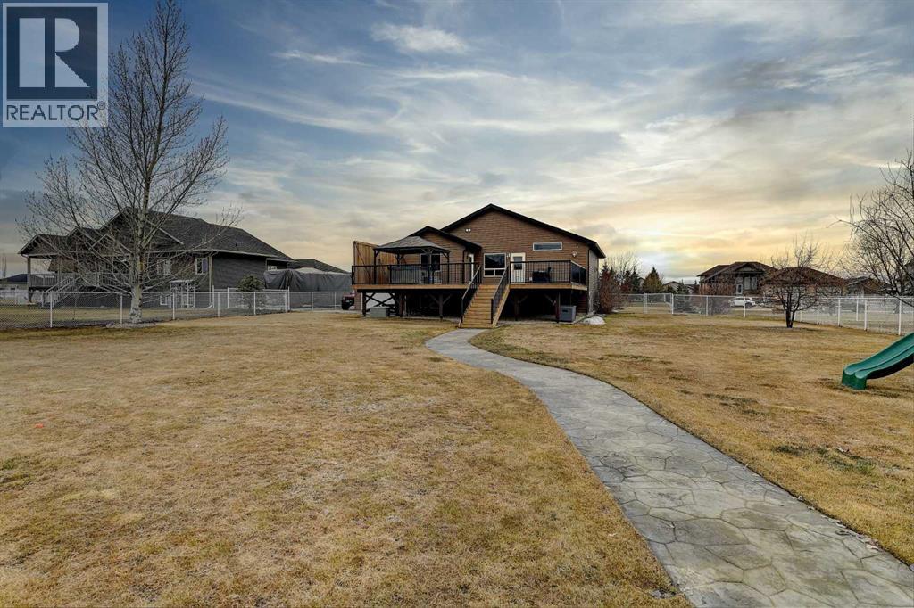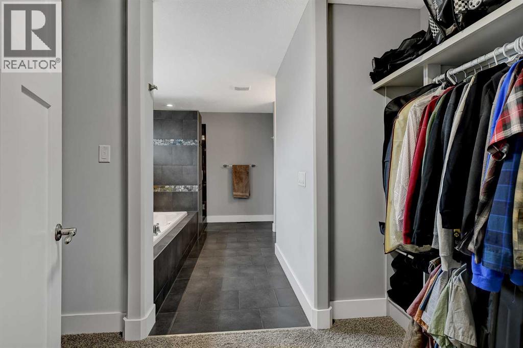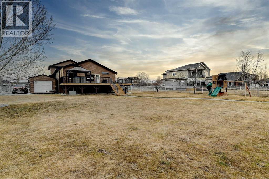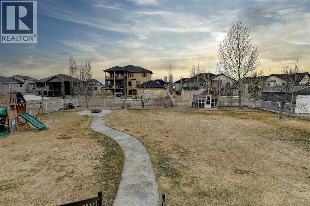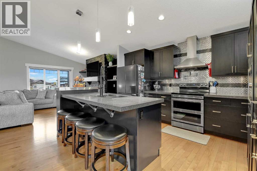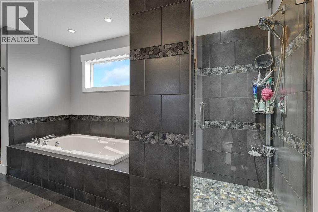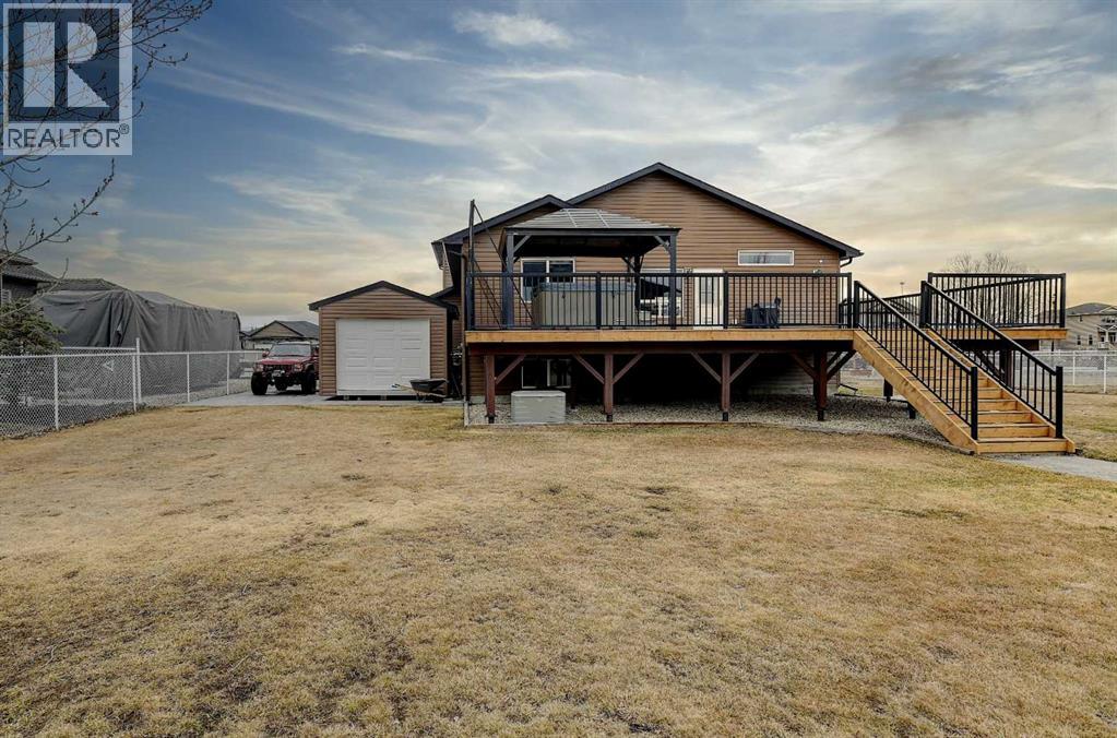 Welcome to this immaculate modified bi-level in desirable Carriage Lane Estates, featuring a heated 27 x 36 triple-car garage, spacious driveway, and gated RV parking with outstanding curb appeal.The main floor offers a bright open-concept layout with a welcoming living room centered around a stone-accented gas fireplace with built-in shelving. The kitchen is beautifully finished with brand-new gunmetal refrigerator, dishwasher, and double oven, dark cabinetry, stainless steel backsplash, and a large island with wine rack and ample storage. A half bath and spacious primary bedroom complete the main level. The primary suite features an impressive walk-in closet and private ensuite with jetted tub, stand-up shower, and custom tile work. Both the dining area and primary bedroom provide direct access to the expansive deck and hot tub, overlooking the stunning backyard.The beautifully landscaped yard includes a large deck, few trees, stone pathway to a firepit area, greenhouse, shed, and full fencing for privacy and enjoyment.Upstairs you’ll find two large bedrooms with walk-in closets, connected by a Jack & Jill bathroom, plus a convenient laundry room located above the garage.The fully finished basement offers a massive family room with an additional fireplace and faux stove accent wall, a fourth bedroom, and a full bathroom.Recent upgrades include fresh paint throughout, brand-new shingles (April 2026), and a new deck (2025). Additional features include air conditioning and a full irrigation system servicing the entire property. On the westside of garage there is an RV drain. This move-in-ready home combines space, style, and exceptional outdoor living in one of the area’s most sought-after communities. (id:51989)