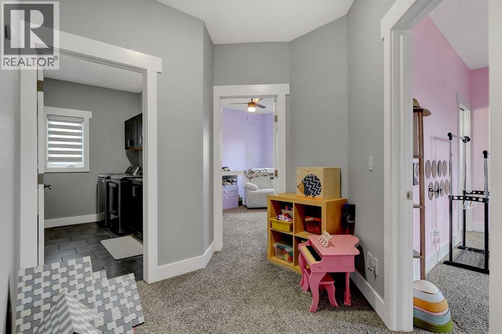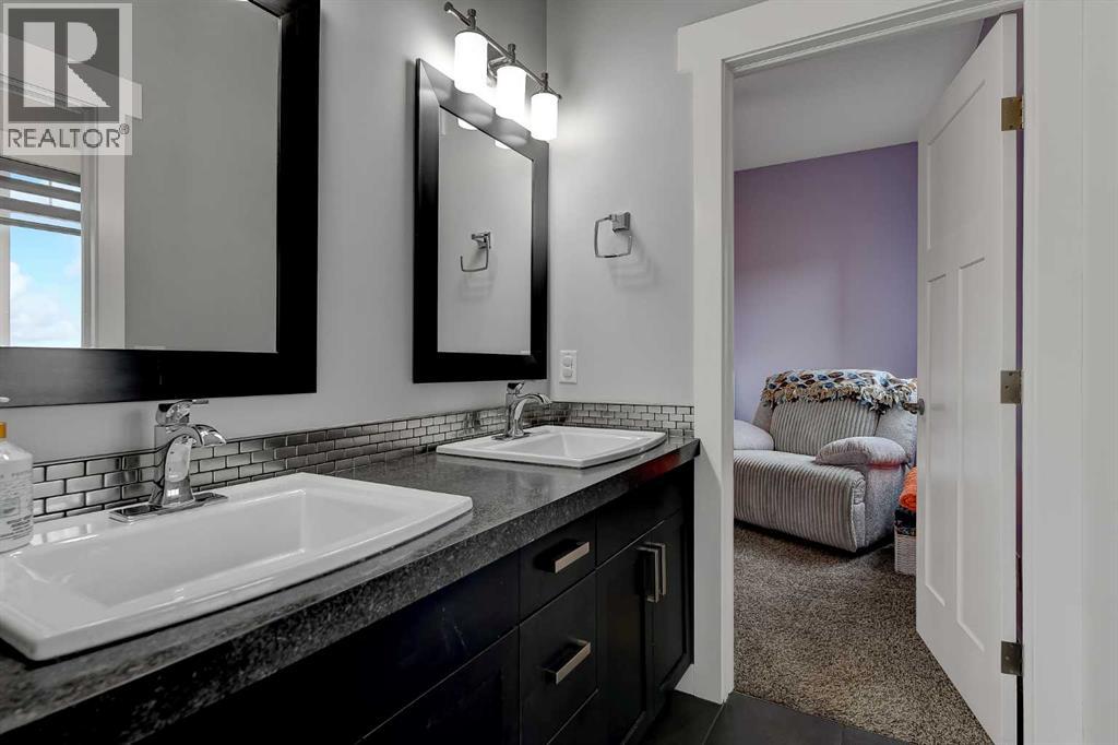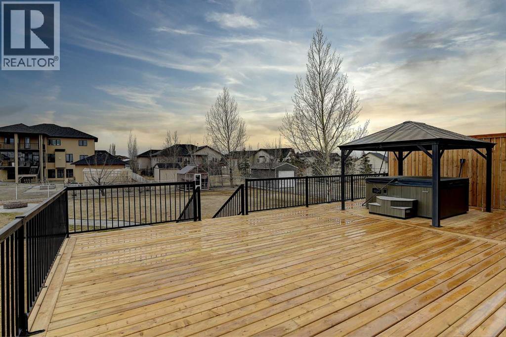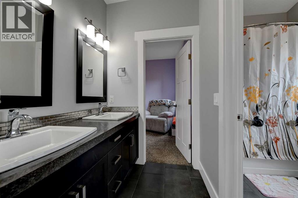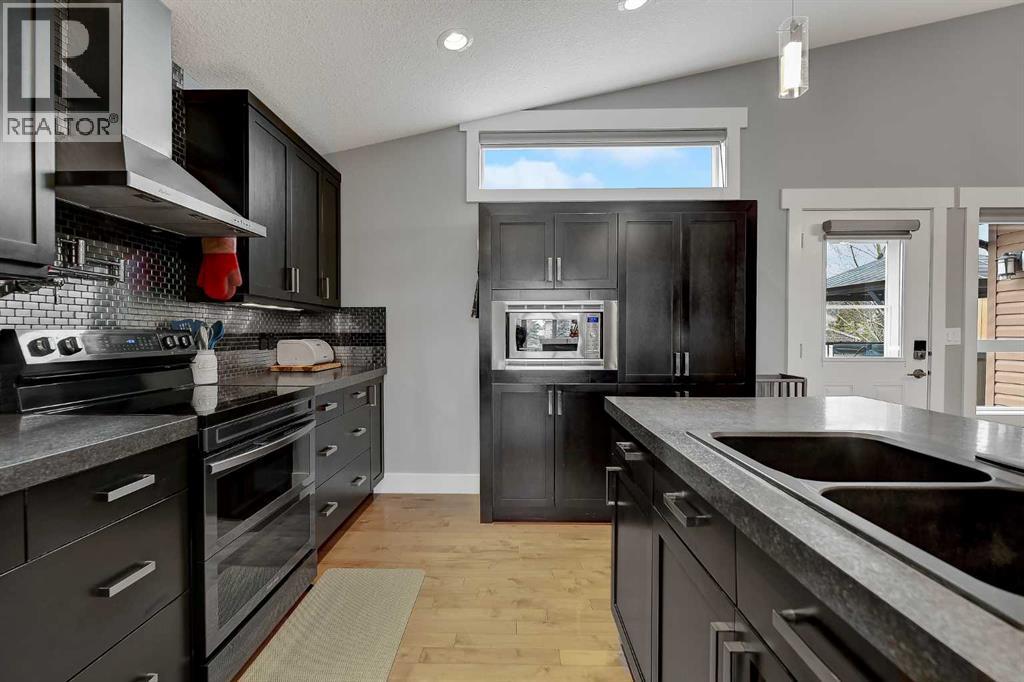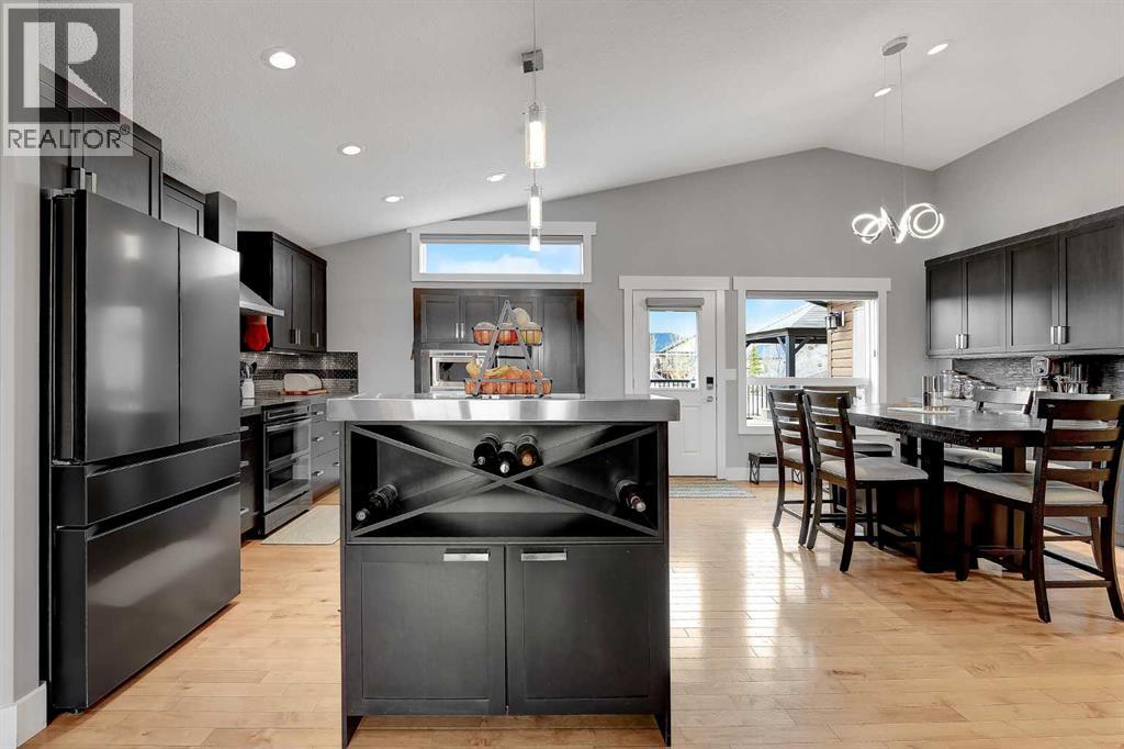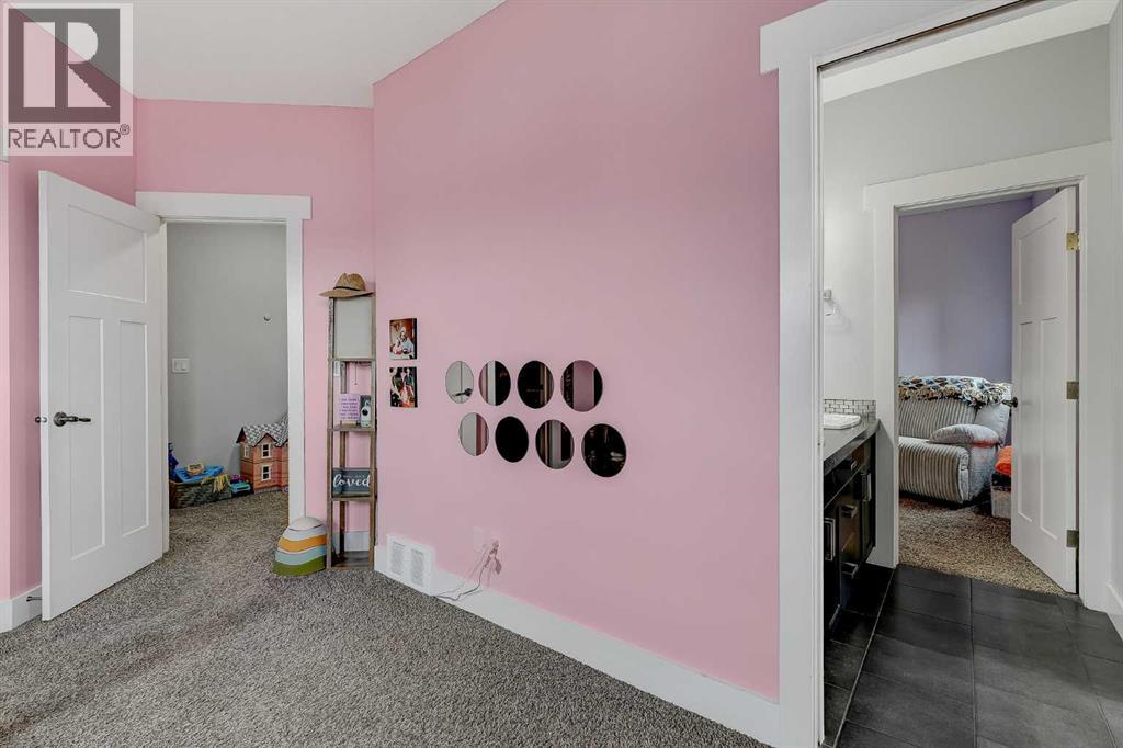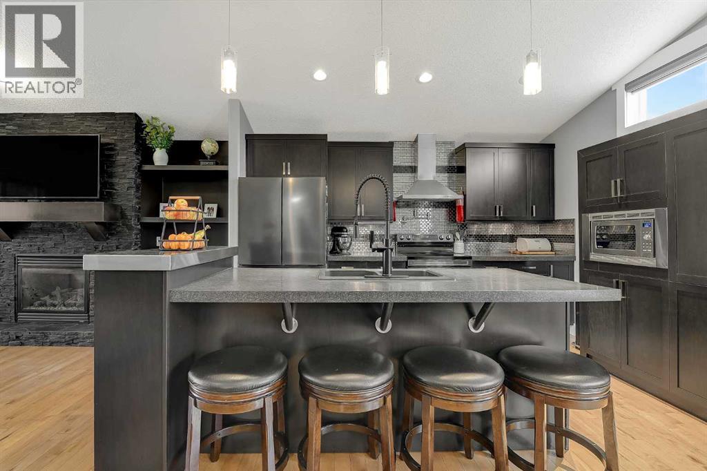 Welcome to this immaculate modified bi-level in desirable Carriage Lane Estates, featuring a heated 27 x 36 triple-car garage, spacious driveway, and gated RV parking with outstanding curb appeal.The main floor offers a bright open-concept layout with a welcoming living room centered around a stone-accented gas fireplace with built-in shelving. The kitchen is beautifully finished with brand-new gunmetal refrigerator, dishwasher, and double oven, dark cabinetry, stainless steel backsplash, and a large island with wine rack and ample storage. A half bath and spacious primary bedroom complete the main level. The primary suite features an impressive walk-in closet and private ensuite with jetted tub, stand-up shower, and custom tile work. Both the dining area and primary bedroom provide direct access to the expansive deck and hot tub, overlooking the stunning backyard.The beautifully landscaped yard includes a large deck, few trees, stone pathway to a firepit area, greenhouse, shed, and full fencing for privacy and enjoyment.Upstairs you’ll find two large bedrooms with walk-in closets, connected by a Jack & Jill bathroom, plus a convenient laundry room located above the garage.The fully finished basement offers a massive family room with an additional fireplace and faux stove accent wall, a fourth bedroom, and a full bathroom.Recent upgrades include fresh paint throughout, brand-new shingles (April 2026), and a new deck (2025). Additional features include air conditioning and a full irrigation system servicing the entire property. On the westside of garage there is an RV drain. This move-in-ready home combines space, style, and exceptional outdoor living in one of the area’s most sought-after communities. (id:51989)