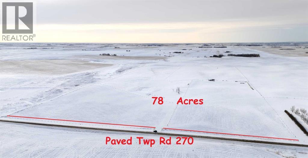 Country Quiet, City Close! 78 Acres on PAVED Township Road 270 just east of Airdrie, Alberta. Combination of hay and pasture, with nice elevated building sites with Mountain, City and country views. Quick access to Airdrie, CrossIron Mills and Calgary. Ideal for quiet country living and home based business (by permit), A-SML Agricultural, Small Parcel District. 1,300' frontage on Township Road 270. East from Airdrie on Yankee Valley Boulevard/Township Road 270 past Airdrie Airpark and past Range Road 290, first approach east of MD #285079 on south side of the road. Livestock on the property, do not access without permission. GST may apply. (id:51989)