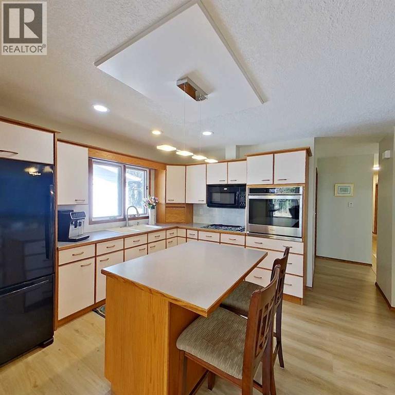 If you’re seeking a charming and well-maintained home with original owners, this bungalow built in 1977 is a true gem. Spanning over 1,900 square feet, this residence offers a spacious layout that is perfect for family living. With 4 bedrooms located on the main floor and 2 bathrooms that provides ample space for comfort and convenience.The open floor plan seamlessly connects the kitchen, dinette, and cozy living room, creating a modern and functional environment ideal for family gatherings and entertaining. The kitchen is a standout feature, boasting stunning cabinetry, an abundance of drawers, and generous counter space. A large pantry enhances functionality, while the built-in oven and microwave, along with a stove top and an eating bar at the island, make this kitchen a chef's delight. The living room, complete with a gas fireplace, adds to the home's warmth and charm, making it a perfect spot to unwind.The property is situated on a remarkable 9,062 square feet lot that overlooks a serene forest, offering breathtaking views and stunning sunsets. This outdoor space is perfect for enjoying warm evenings, highlighted by multiple decks made of paving stones. The sunroom is particularly enchanting, designed in knotty pine and surrounded by trees, creating a cozy ambiance reminiscent of a cabin retreat. With triple-pane windows, it provides incredible views and a warm, inviting atmosphere. Almost floor to ceiling windows in this space. (wow) Storage is abundant throughout the home, the closets featuring built-ins and organizers that maximize space. The basement is fully developed, offering even more room for activities and storage. You will find a large 4 pcs renovated bathroom, large family/rec room with pool table. Additional features include a front double car garage with an epoxy floor, central vacuum system with attachments, and numerous upgrades such as a tin roof, a new hot water tank, and new vinyl flooring, light fixtures, etc. This home comes ful ly equipped with all appliances, a shed, and a playhouse, making it an excellent choice for families.Having been lovingly cared for by its original owners, this home reflects quality construction and attention to detail. Its sought-after location, combined with the incredible features and upgrades, make it a must-see. You won’t be disappointed by this exceptional property that promises comfort and a lasting sense of home. If it is privacy your looking for, then look no further. This back yard feels like you are on an acreage. If you're interested in exploring this lovely bungalow further, scheduling a viewing would be an excellent next step. (id:51989)
