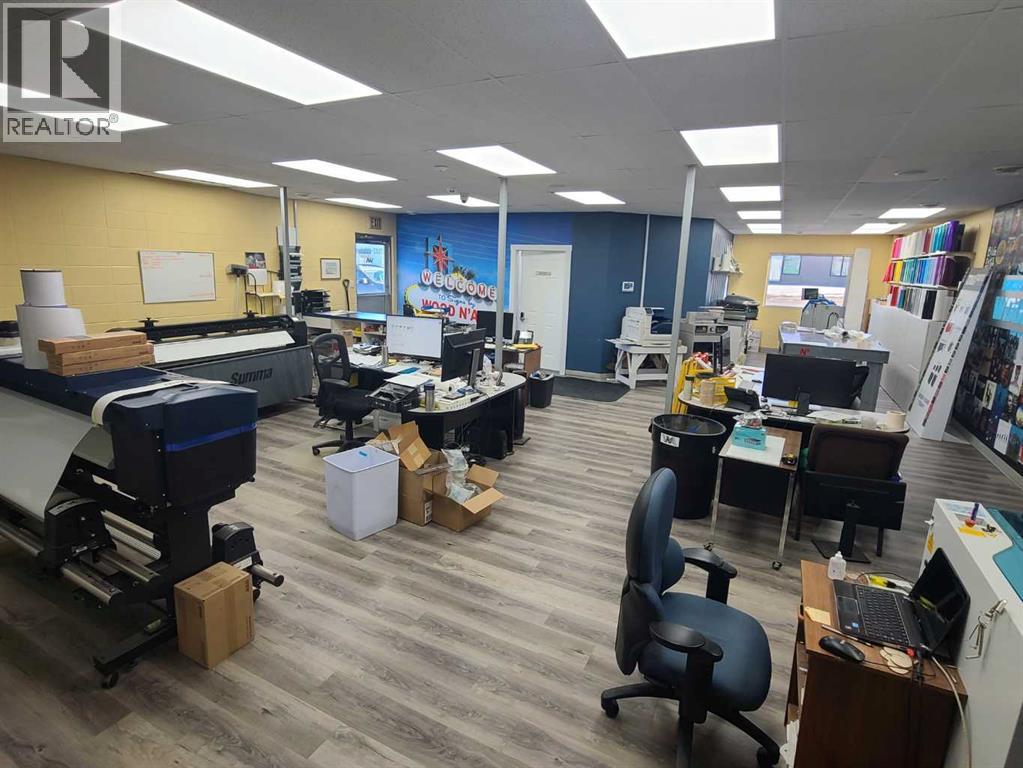 A property like this doesn't come up often within town limits. Featuring an over 11,000 square foot building that provides bays as well as front office space. There is an executive level office for senior management, as well as ample front space for any required office needs. The shop offers 6 bays - 3 of which are pull through. as for the space outside; lot is fenced, enhancing security and delineation of the property boundaries. Its strategic location offers clear visibility, making it an excellent choice for businesses seeking high exposureSurrounding amenities include various businesses and services, contributing to the area's commercial appeal. If this sounds like it could be a fit for your growing company, don't wait and call to find out more. (id:51989)