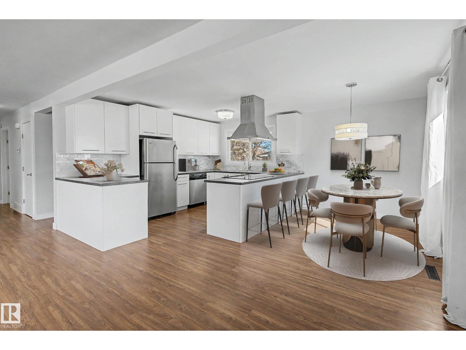 Welcome home to this renovated bungalow in the sought after community of Rio Terrace! Offering an open concept floorplan in a mature neighborhood close to all major amenities. The updated kitchen features stainless steel appliances, tile backsplash & soft close cabinetry, flowing into the dining & living areas with a remodeled fireplace, mantle & brick surround. The main floor offers 3 bedrooms including a primary with 2pc ensuite, plus a 4pc main bath. The fully finished basement includes 2 additional bedrooms, a 3pc bath, laundry/storage area & a large rec room. With a rear entrance providing direct access to the basement, this home offers excellent suite potential. Situated on a spacious 61x120 lot with a huge yard & double detached garage. Additional upgrades include new furnace in 2025 & roof in 2023. Laminate flooring, updated bathrooms, modern fixtures, upgraded trim, paint & lighting complete the space. Located less than a 10 minute walk to Rio Terrace School. Some photos virtually staged. (id:51989)