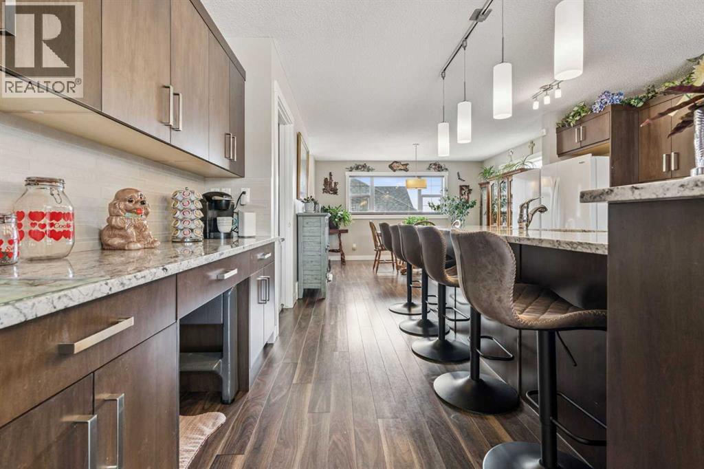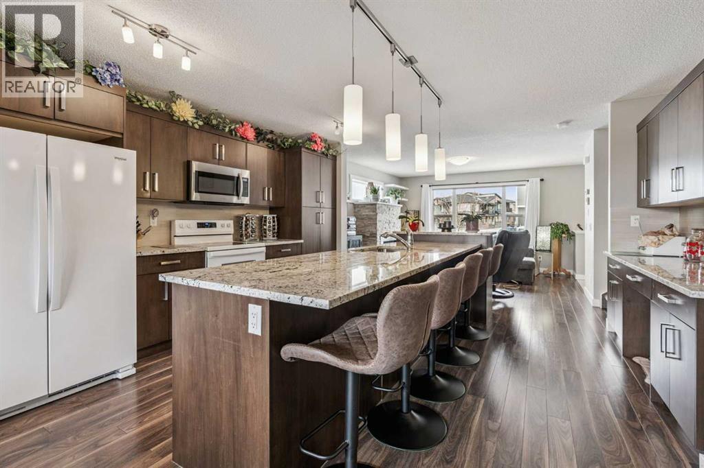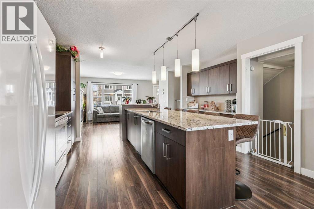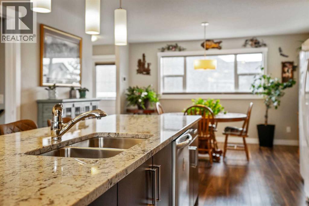 *Open house on Saturday, March 7, 1-2.30pm* Welcome to this fully developed end unit townhome in Airdrie offering an impressive 2,270 sq ft of total living space, thoughtfully designed for comfort, style, and everyday functionality. Bright, open, and impeccably maintained, this home showcases numerous upgrades and a layout that feels both spacious and inviting from the moment you step inside.The main level features an airy open-concept design perfect for entertaining or relaxing at home. Large windows flood the space with natural light, highlighting the elegant finishes throughout. The kitchen is a standout with granite countertops, soft-close cabinetry, and plenty of workspace, making meal prep effortless while still being connected to the heart of the home. The cozy living room fireplace adds warmth and ambiance for those relaxing evenings, while central air conditioning keeps the home comfortable year-round. A convenient half bath on the main level completes this space.Upstairs, the home continues to impress with three spacious bedrooms and the convenience of upper-level laundry. The primary retreat is generously sized and features a walk-in closet along with a private 4-piece ensuite complete with a separate shower for a spa-like feel. Two additional bedrooms and another full 4-piece bathroom provide plenty of room for family or guests.The fully developed lower level adds incredible flexibility with a large fourth bedroom or home office, a comfortable family room, an additional half bath, plus dedicated utility and storage rooms—perfect for keeping everything organized.Step outside to enjoy the rear deck with natural gas BBQ hookup, ideal for summer grilling and outdoor gatherings. The enclosed backyard offers a secure space for kids or pets to play, while the double detached garage provides ample parking and storage.Beautifully maintained, upgraded, and offering space for the whole family, this end unit townhome combines comfort, convenience, and valu e in one exceptional package. (id:51989)