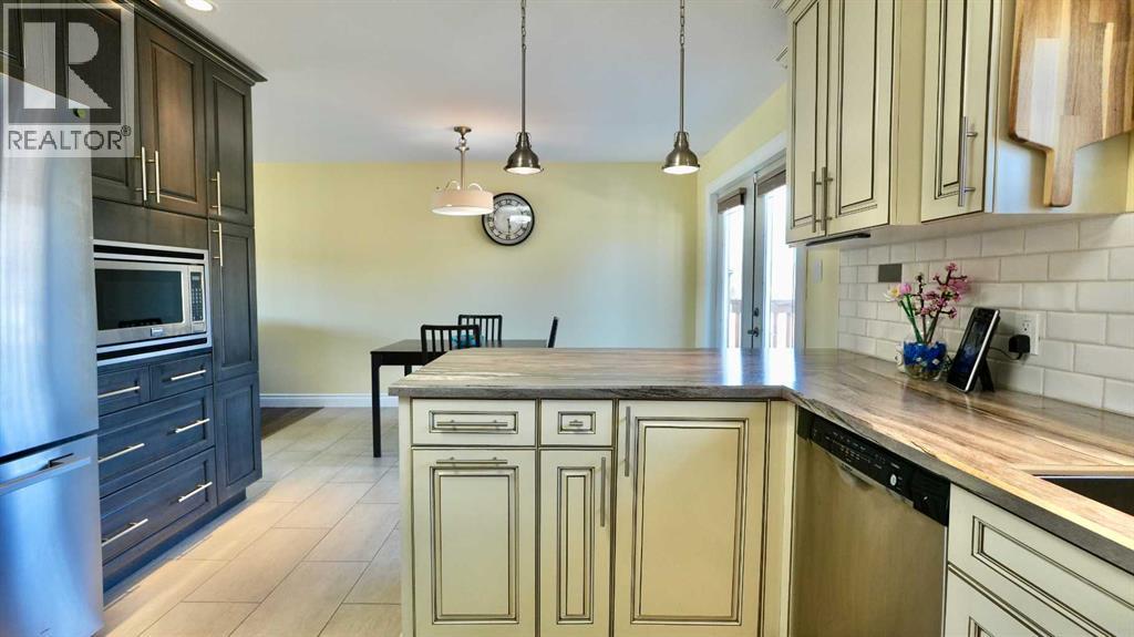 Boasting plenty of updates and thoughtfully refined, this stunning North End home along River Road delivers the perfect blend of style, function, and location. With all the major renovations already complete, you can move in and simply enjoy everything this exceptional property has to offer. At the heart of the home is a beautifully designed custom kitchen that truly stands out. Featuring rich cabinetry, abundant storage, and high-end finishes, it’s a space that effortlessly combines everyday practicality with elevated style—ideal for both quiet mornings and lively gatherings. Extensive upgrades include fresh paint, newer windows, and more—creating a cohesive, modern feel from top to bottom. The main level offers three spacious bedrooms, while the fully finished basement adds a fourth oversized bedroom, providing flexibility for growing families or guests. With two and a half well-appointed bathrooms, comfort and convenience are always within reach. The lower level is bright and welcoming, featuring a generous family room, dedicated laundry and storage space, and a walk-out entrance that leads directly to the expansive backyard. Outside, you’ll find a fully fenced yard with plenty of room to relax, play, or entertain. Car enthusiasts and hobbyists alike will appreciate the impressive oversized garage, offering space for three or more vehicles, recreational equipment, or even a workshop—without sacrificing functionality. Set in a highly desirable location, this home places you just steps from scenic walking trails and offers beautiful river views, all while being only minutes from schools, the rec centre, pool, and other key amenities. This is a rare opportunity to own a truly complete, move-in ready home in one of Peace River's most sought-after neighborhoods. (id:51989)