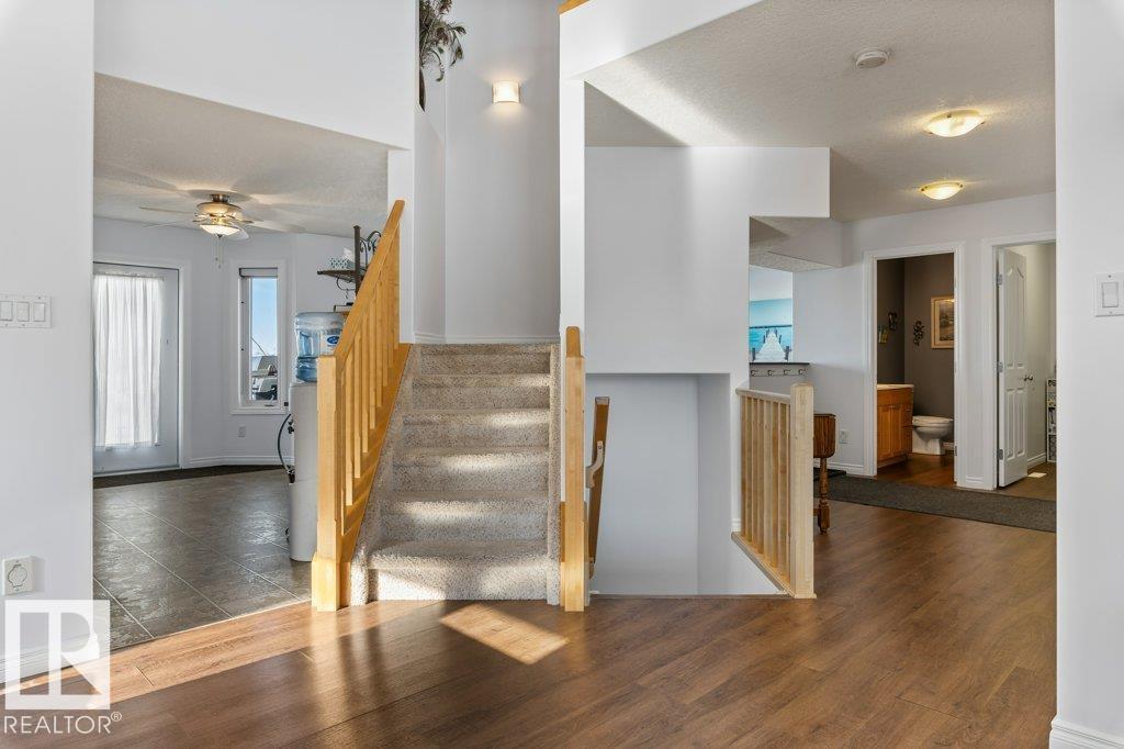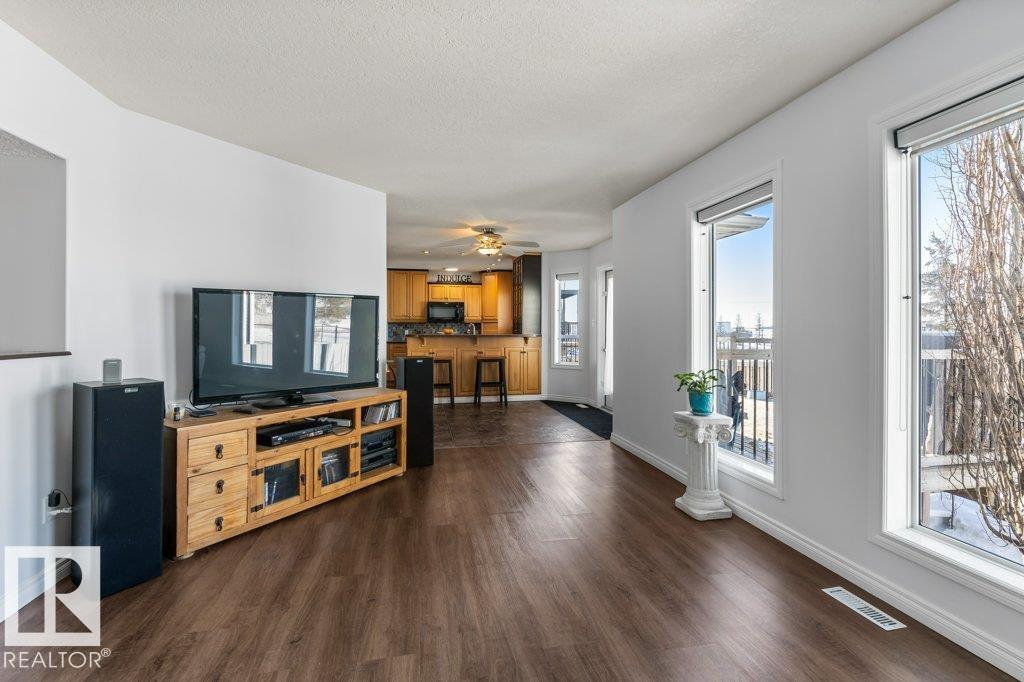 As you enter, you’re greeted by tall ceilings & bright natural light, creating an open, welcoming feel. The front room provides a versatile additional living space & the perfect spot for a dining table to host family dinners & gatherings. Just off the garage entry, you’ll find a spacious mudroom, main-floor laundry & a convenient bathroom, making everyday family life easy & functional. The kitchen flows seamlessly into the main living area, where large windows showcase beautiful pond views & breathtaking sunsets, with no neighbours directly behind you. Upstairs offers three spacious bedrooms, including the primary retreat with a walk-in closet & private ensuite featuring a relaxing jet tub. The fully finished basement adds even more living space with a fourth bedroom, an additional living area with a cozy wood-burning fireplace & a theatre room that is perfect for movie nights & entertaining. Recent updates include fresh paint throughout (2026), Stove(2025), Dishwasher(2026), new furnace(2023) & HWT(2023) (id:51989)