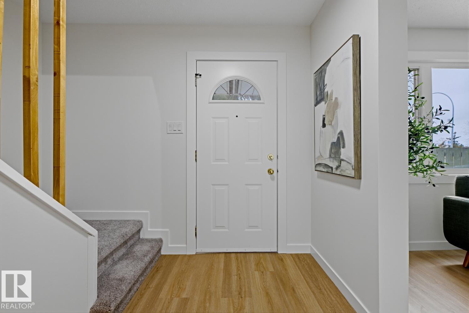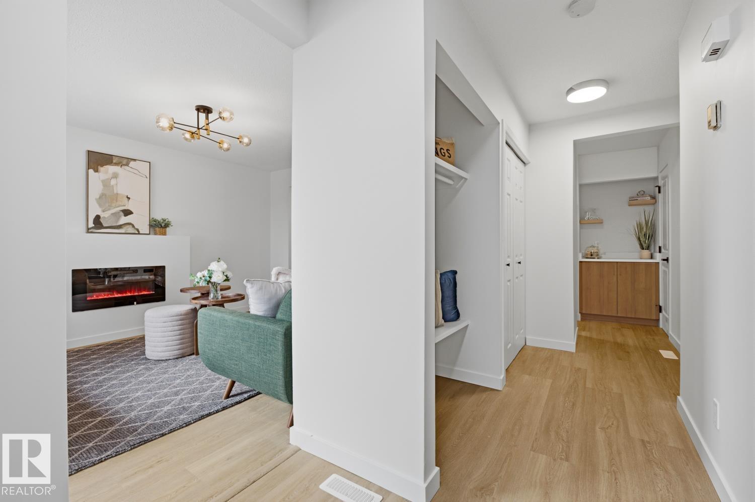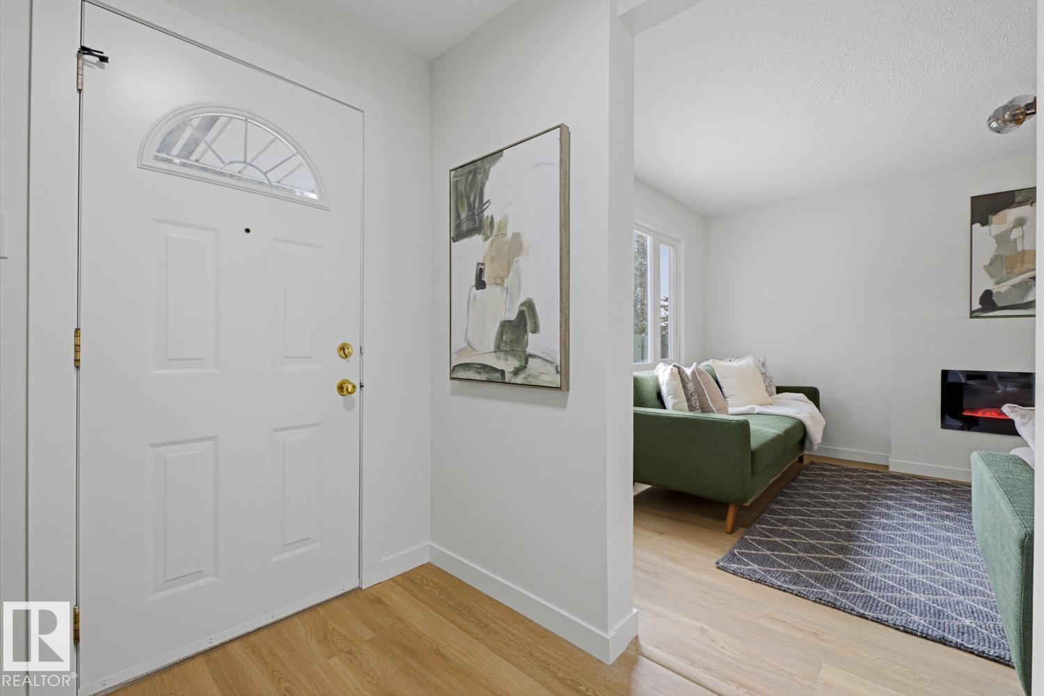FULLY RENOVATED and move in ready, this townhome delivers modern style in an established west end community. The main floor showcases a BRAND NEW KITCHEN with crisp white and wood color cabinetry, QUARTZ counters, tile backsplash, BRAND NEW COSTCO stainless steel appliances, and a dedicated dining area that flows seamlessly into the living space with ELECTRIC FIREPLACE. Updated flooring, contemporary lighting, and neutral finishes create a bright, cohesive feel throughout. Upstairs offers 3 bedrooms and a full BRAND NEW bath, while the FINISHED BASEMENT is a versatile space for home office, or family room. Parking is a breeze with your assigned stall and extra parking right outside the home. Finishing off the home is your SOUTH facing yard. Situated in Callingwood steps to schools, parks, transit, and shopping, with easy access to major routes. UPGRADES INCLUDE: FLOORING, FEATURE WALL, PAINT, TRIM, DOORS, TOILETS, CABINETS, COUNTERTOPS, FIREPLACE SURROUND, LIGHTING, COFFEE BAR, TUB, CUSTOM ENTRY NOOK. (id:51989)