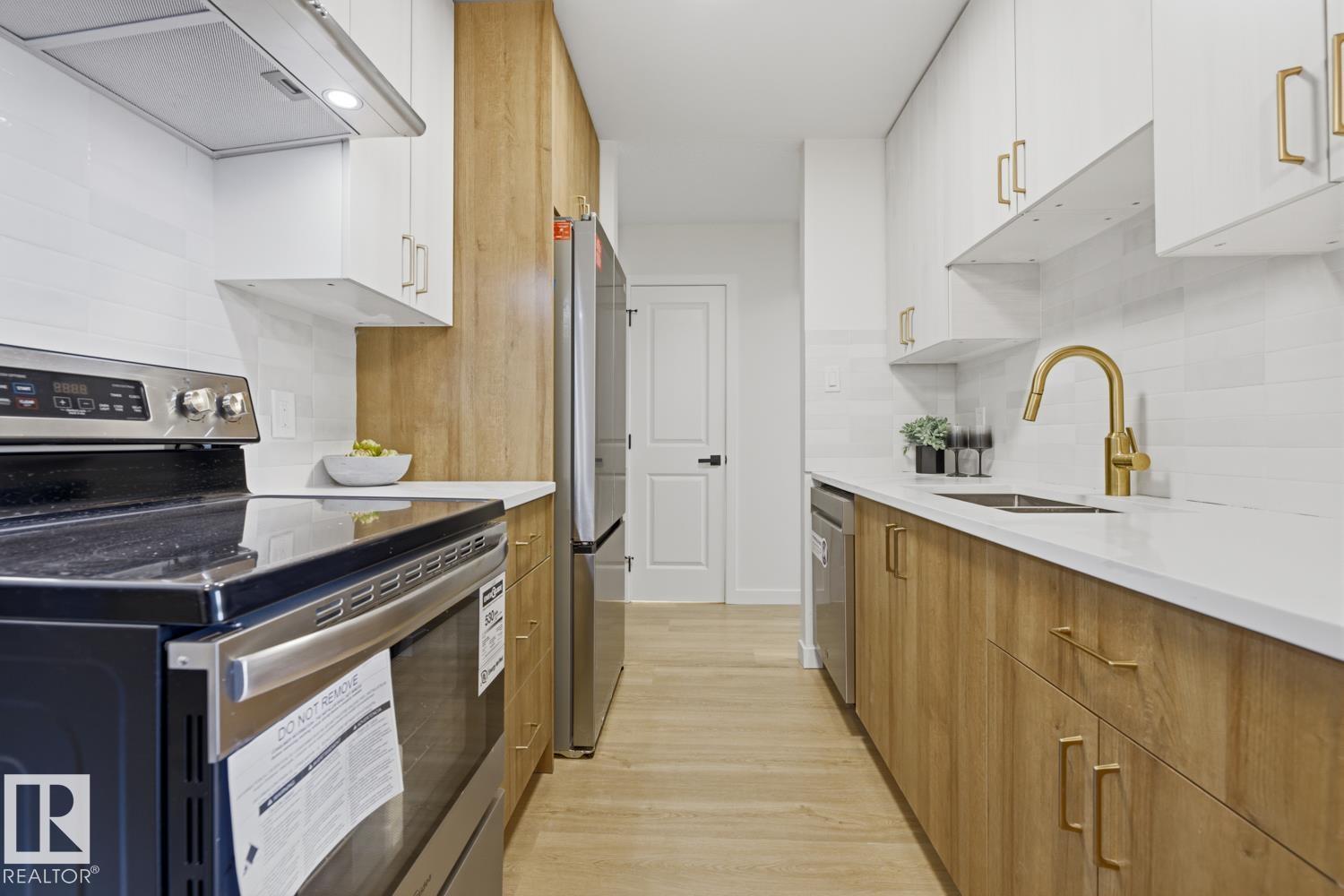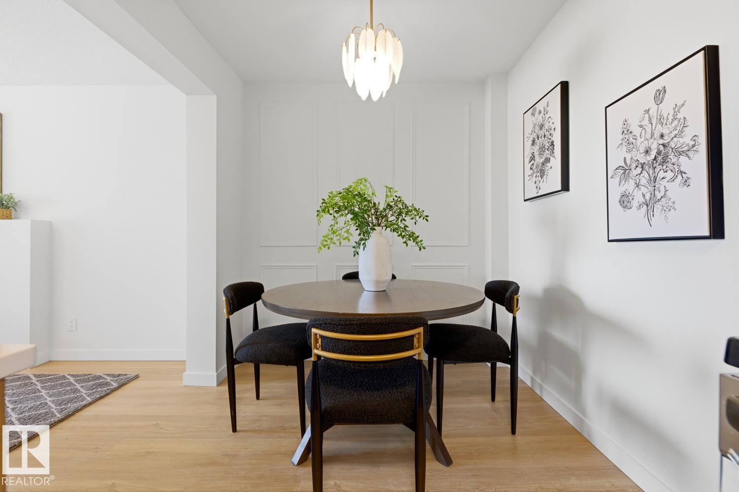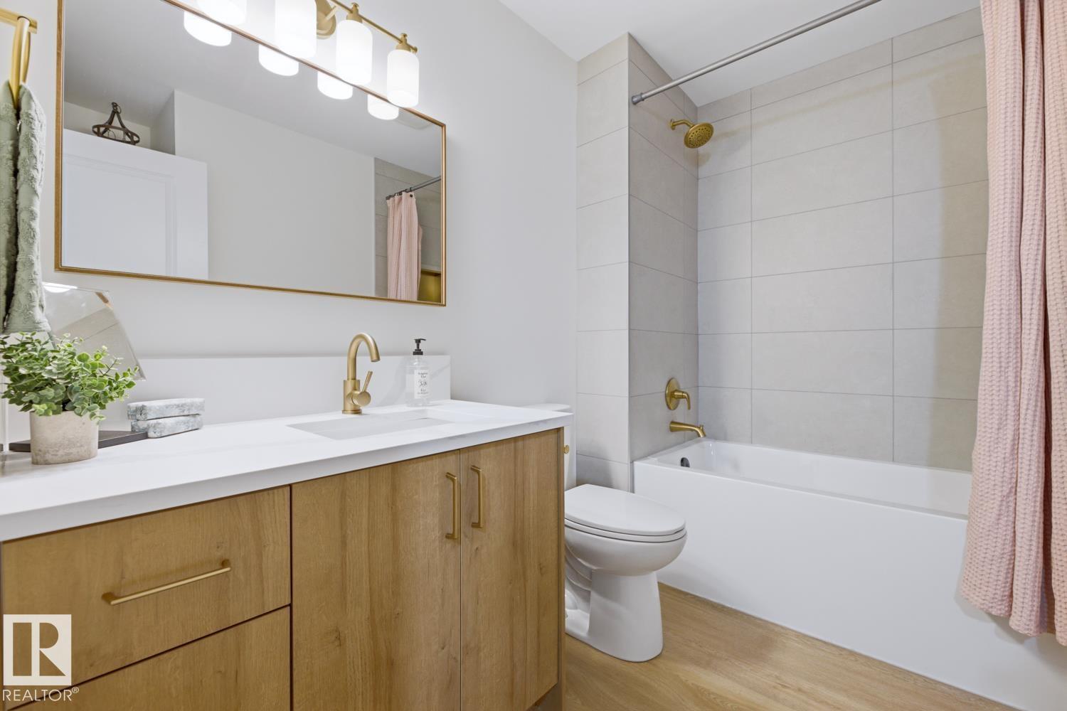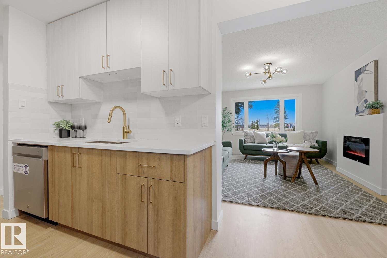 FULLY RENOVATED and move in ready, this townhome delivers modern style in an established west end community. The main floor showcases a BRAND NEW KITCHEN with crisp white and wood color cabinetry, QUARTZ counters, tile backsplash, BRAND NEW COSTCO stainless steel appliances, and a dedicated dining area that flows seamlessly into the living space with ELECTRIC FIREPLACE. Updated flooring, contemporary lighting, and neutral finishes create a bright, cohesive feel throughout. Upstairs offers 3 bedrooms and a full BRAND NEW bath, while the FINISHED BASEMENT is a versatile space for home office, or family room. Parking is a breeze with your assigned stall and extra parking right outside the home. Finishing off the home is your SOUTH facing yard. Situated in Callingwood steps to schools, parks, transit, and shopping, with easy access to major routes. UPGRADES INCLUDE: FLOORING, FEATURE WALL, PAINT, TRIM, DOORS, TOILETS, CABINETS, COUNTERTOPS, FIREPLACE SURROUND, LIGHTING, COFFEE BAR, TUB, CUSTOM ENTRY NOOK. (id:51989)