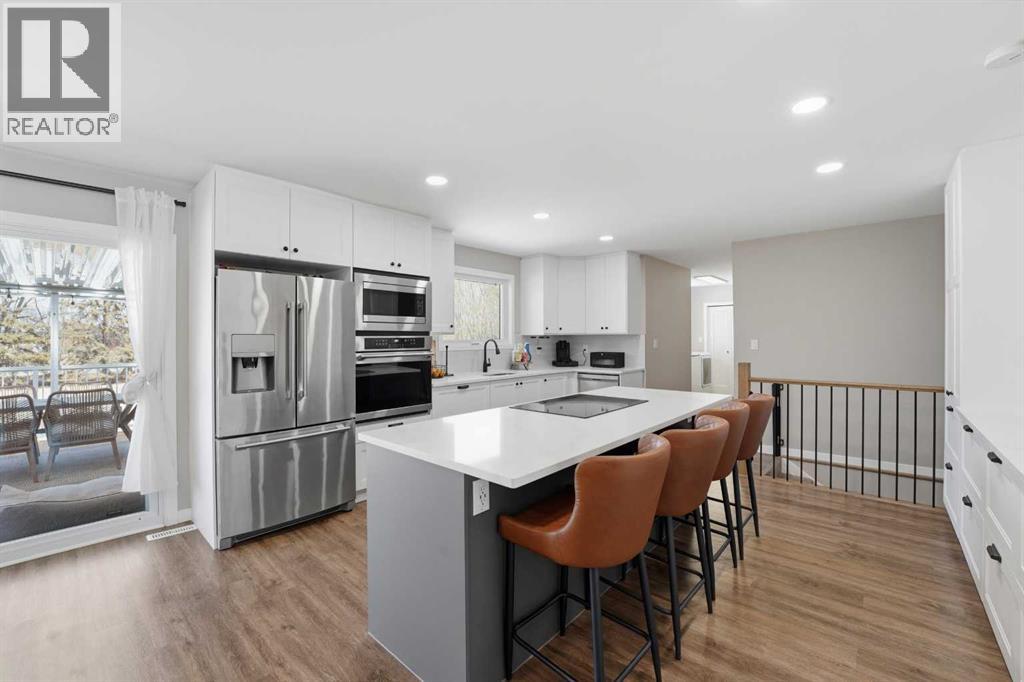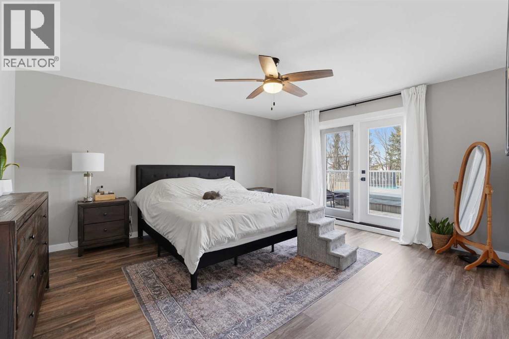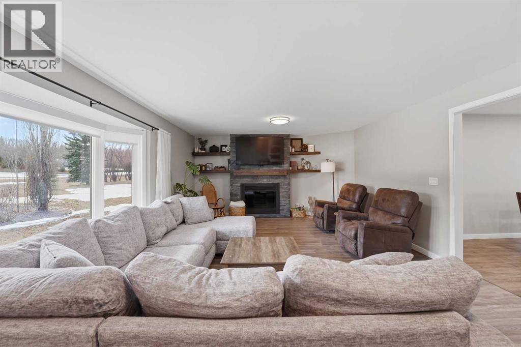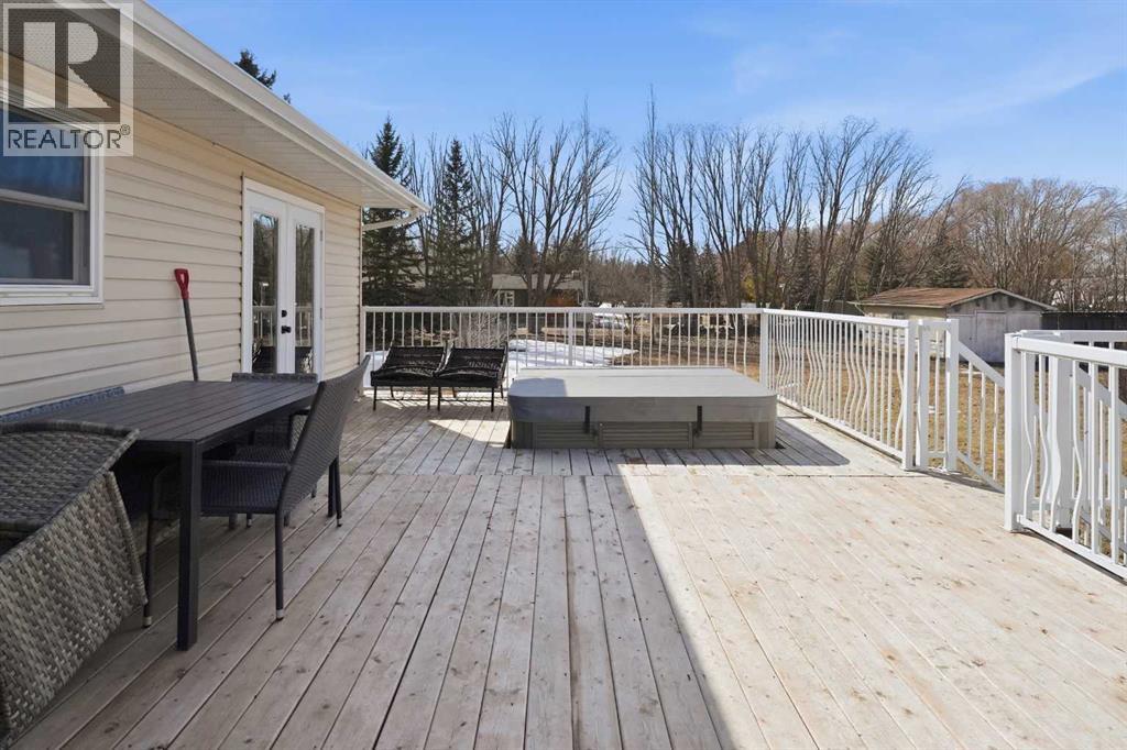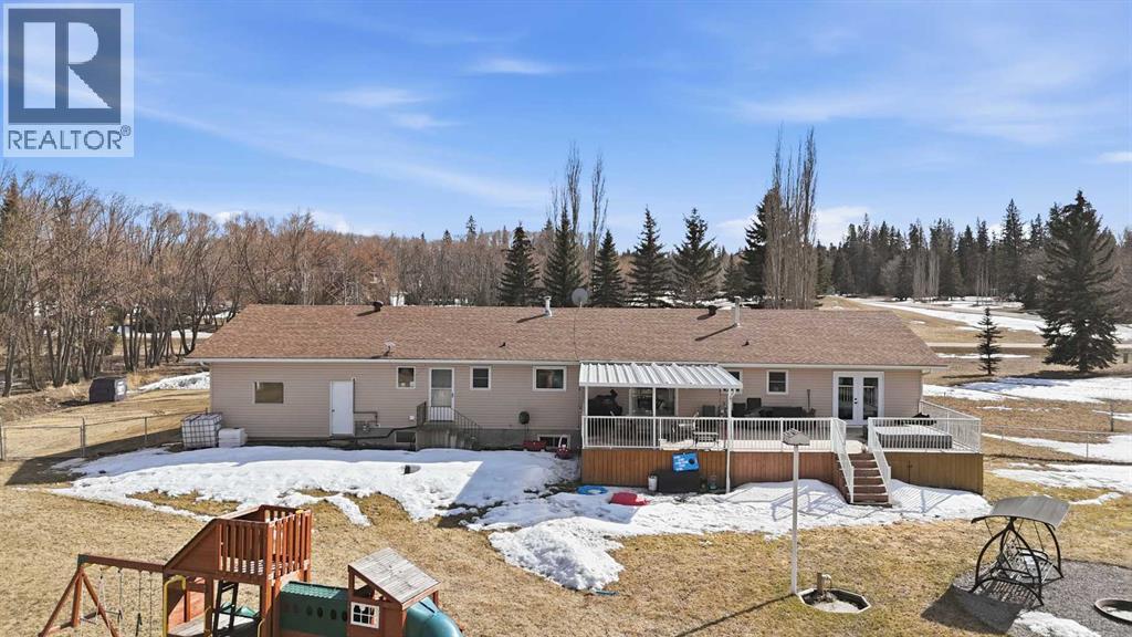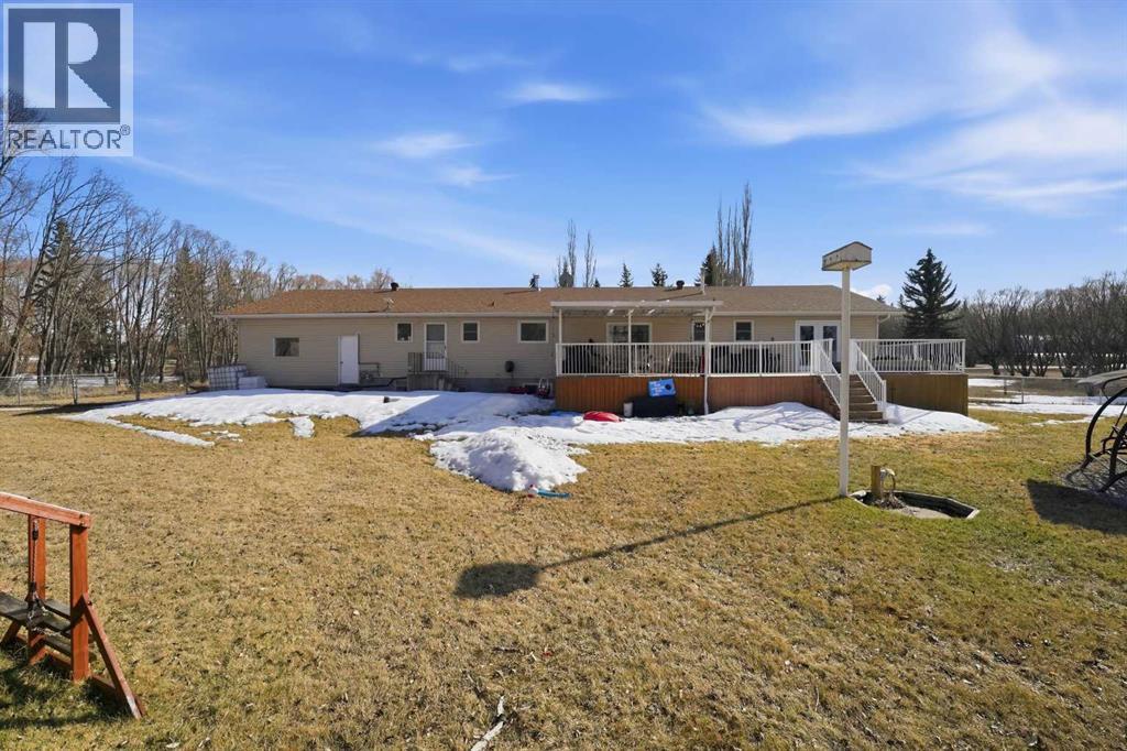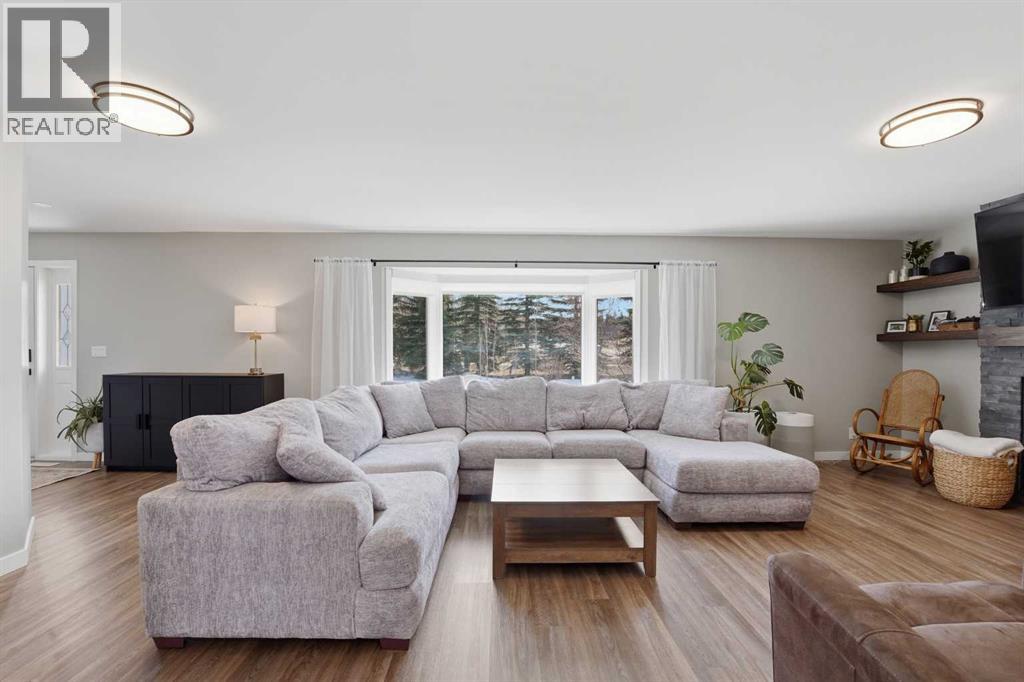 Beautifully updated 1990 bungalow on 1.9 acres in a highly sought-after neighbourhood just minutes from town with direct access to the C & E Trail. This home offers 4 large bedrooms plus an office, new flooring throughout, a fully renovated quartz kitchen, fresh paint, and two upgraded bathrooms. New patio doors off both the kitchen and primary bedroom lead to an expanded deck with hot tub. Electrical panel updated in 2023. Basement window re-welled and brought to proper egress standards in one of the bedrooms. Rear yard is fenced, and a large parking pad has been added. A well-maintained acreage property in a prime location with excellent upgrades throughout. The list is long.... added an office, new flooring throughout, , new lighting,.there is nothing to do to this amazing bungalow but move in and enjoy! (id:51989)