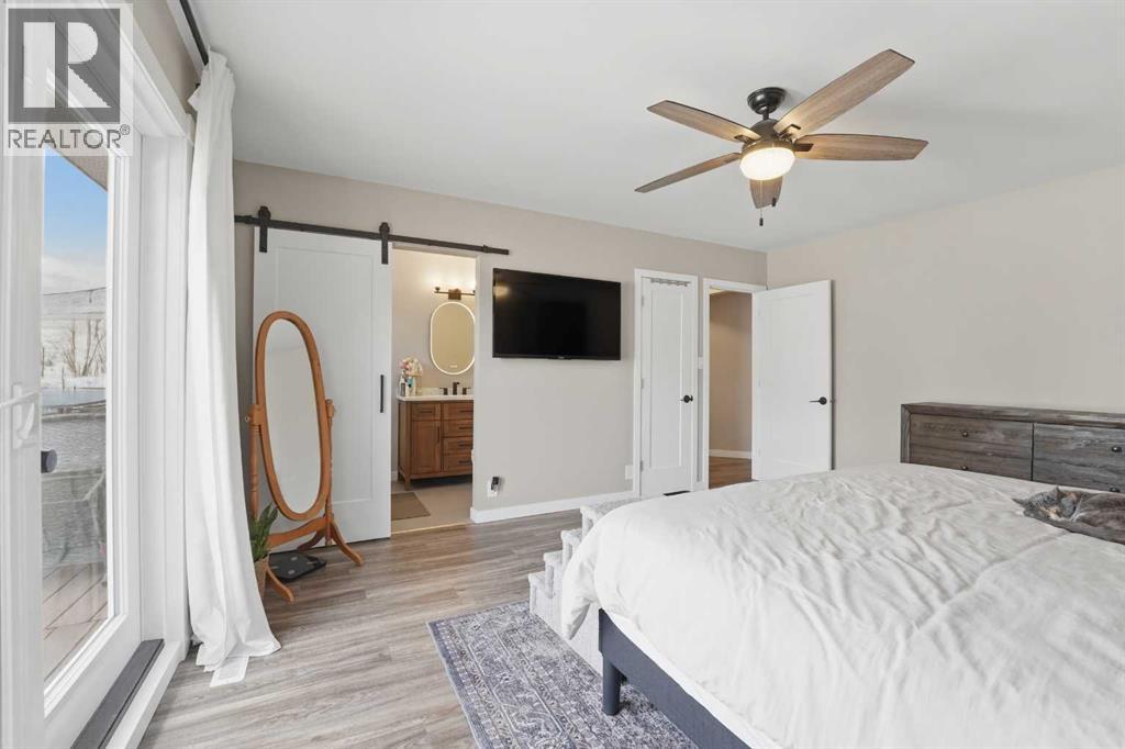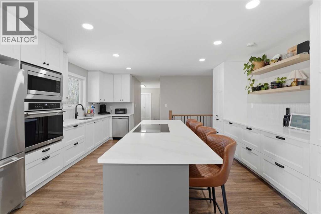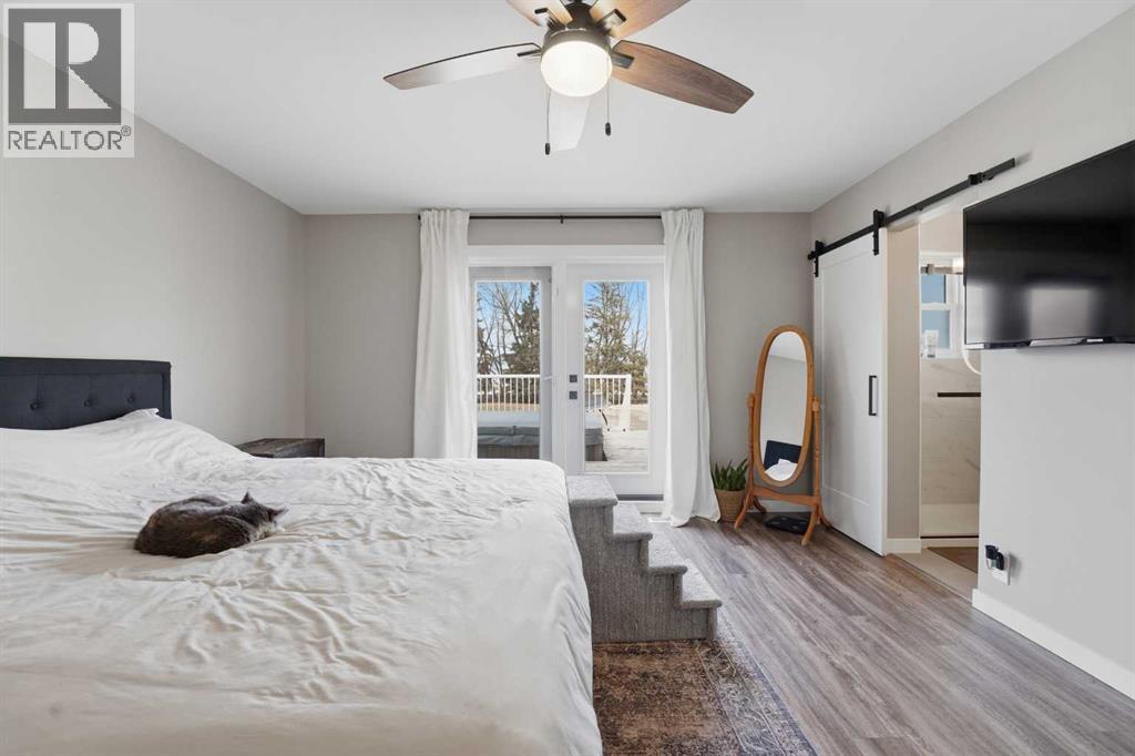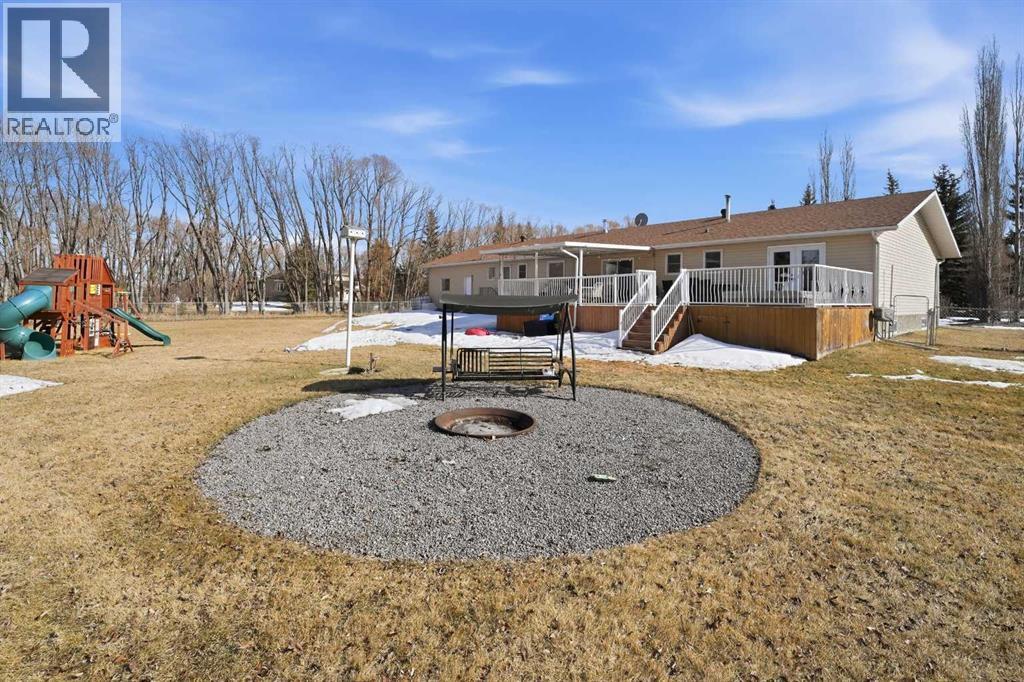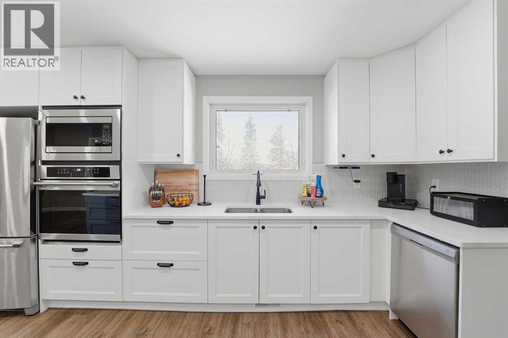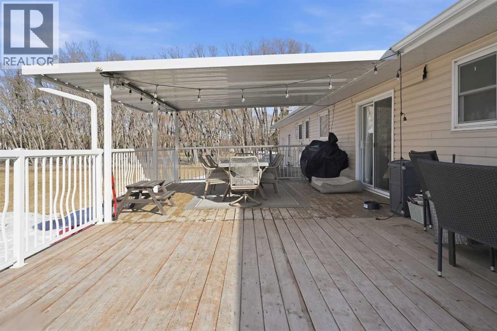 Beautifully updated 1990 bungalow on 1.9 acres in a highly sought-after neighbourhood just minutes from town with direct access to the C & E Trail. This home offers 4 large bedrooms plus an office, new flooring throughout, a fully renovated quartz kitchen, fresh paint, and two upgraded bathrooms. New patio doors off both the kitchen and primary bedroom lead to an expanded deck with hot tub. Electrical panel updated in 2023. Basement window re-welled and brought to proper egress standards in one of the bedrooms. Rear yard is fenced, and a large parking pad has been added. A well-maintained acreage property in a prime location with excellent upgrades throughout. The list is long.... added an office, new flooring throughout, , new lighting,.there is nothing to do to this amazing bungalow but move in and enjoy! (id:51989)