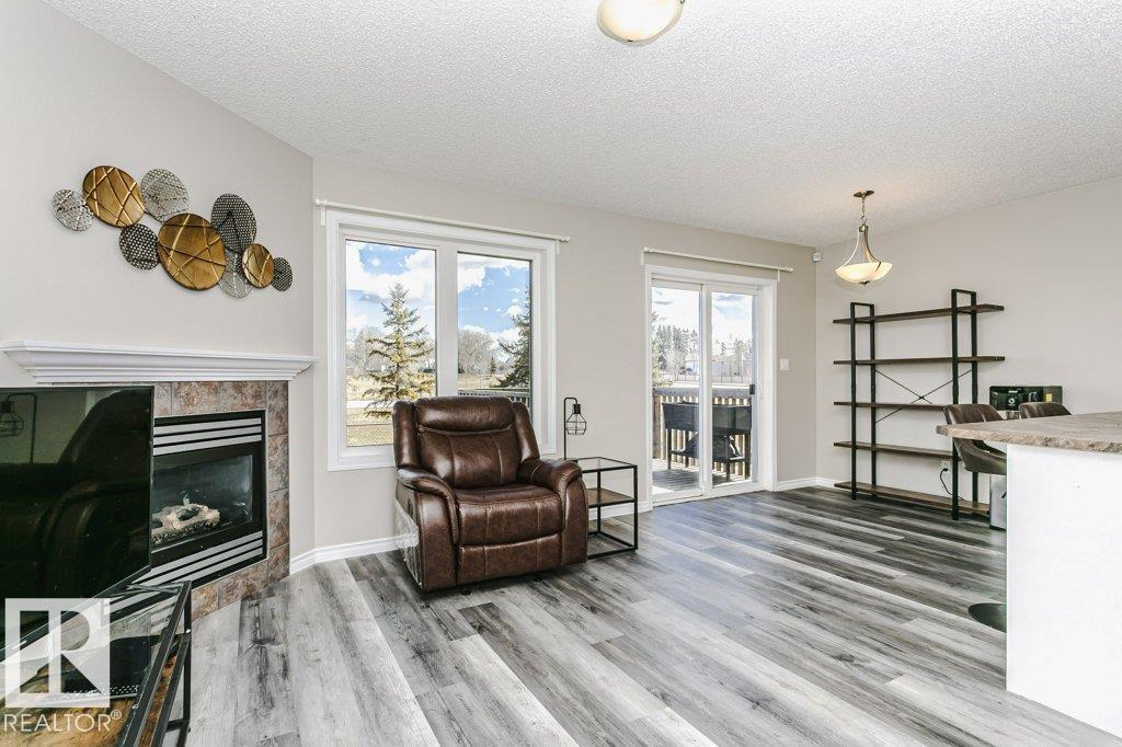 Backing onto a serene pond and park, this end unit townhome offers an exceptional view you’ll enjoy every day. This beautifully maintained 3 bedroom, 2.5 bathroom home welcomes you with a spacious, well-designed layout. Features include vinyl plank flooring throughout, large sun-filled windows, a generous living room with a cozy fireplace, a convenient half bath, and a thoughtfully laid out kitchen complete with stainless steel appliances, ample counter space, and a bright dining area. Upstairs, you’ll find three well sized bedrooms, including a spacious primary retreat with a 3 piece ensuite, along with two additional bedrooms and a full 4-piece bathroom. Step outside to your private back deck, perfect for summer BBQs, overlooking the park for added privacy and tranquility. Additional highlights include an attached garage, neutral paint tones throughout, and convenient upstairs laundry. Ideally located within walking distance to the Recreation Centre, schools, parks, playgrounds, & numerous amenities. (id:51989)