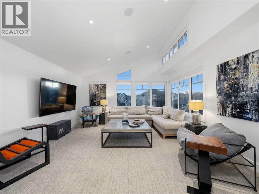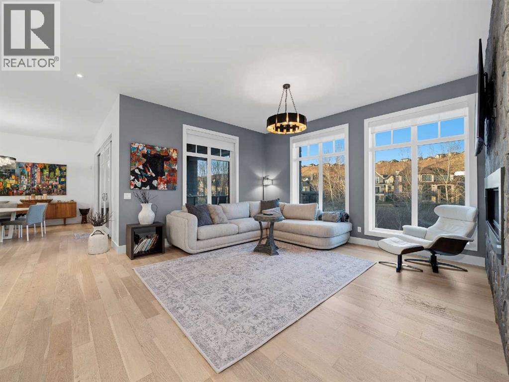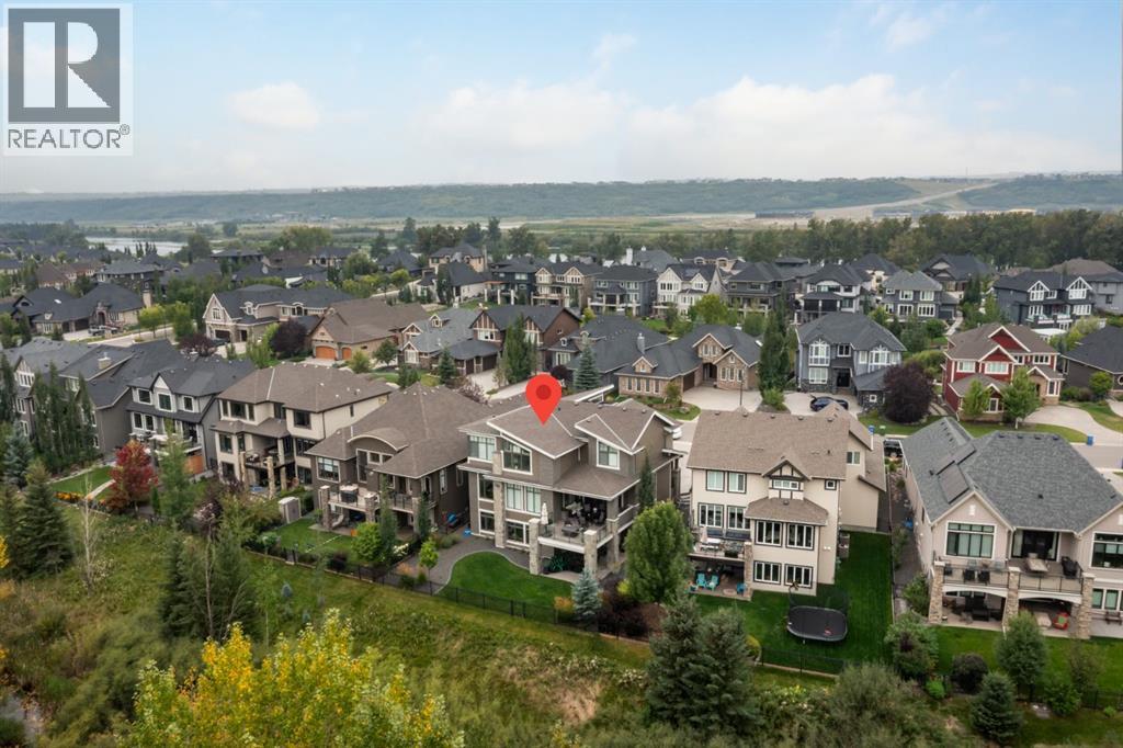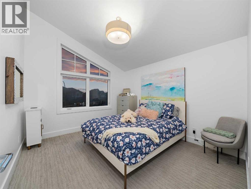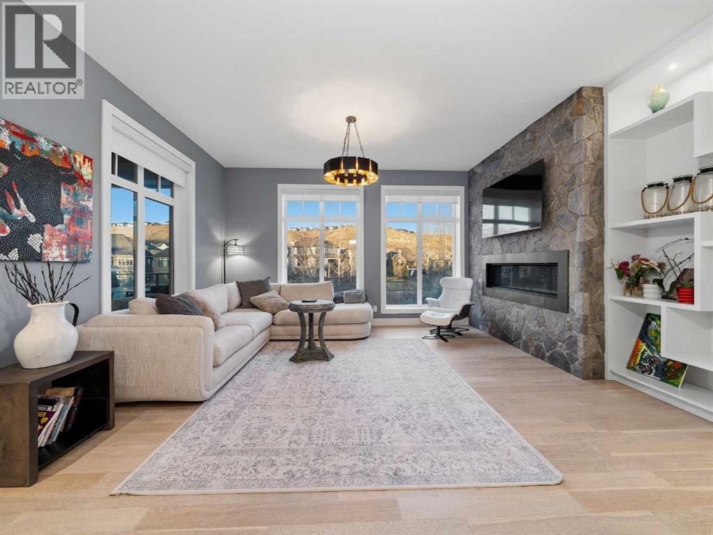 Welcome to a truly exceptional masterpiece (just under 5000 sq.ft of developed space), a 2-storey WALKOUT by Rockcreek Homes, perfectly positioned in the highly sought-after community of Riverstone in Cranston. Featuring an OVERSIZED TRIPLE ATTACHED GARAGE with IN-FLOOR HEATING, this home BACKS onto a stunning NATURAL RESERVE with a creek, rolling hills, pathway systems, and is just steps to the Bow River—offering a rare opportunity to own in one of Calgary’s most scenic and exclusive locations.Designed specifically for this lot (7500+ sq.ft), the home showcases a bright and expansive layout with soaring ceilings and oversized windows that capture the surrounding views. The main living area is anchored by a striking FLOOR-TO-CEILING STONE FIREPLACE, creating a warm yet upscale focal point, while the open-concept design flows effortlessly into the dining space and CHEF-INSPIRED KITCHEN. There is also a dining area with access to the covered, heated deck/patio overlooking the ravine, as well as a private office. The kitchen features custom cabinetry, premium (SUB ZERO, BOSCH) stainless steel appliances including a gas cooktop and built-in wall ovens, and a clean, modern aesthetic that blends contemporary and transitional design. Every detail has been thoughtfully selected, with layers of light tones and high-end finishes carried throughout the home. Upstairs, you will find 3 LARGE BEDROOMS, each uniquely designed, including a stunning primary retreat with beautiful views and a spa-inspired ensuite complete with dual vanities, a freestanding soaker tub, and a glass shower. There is also a large SOUTH-FACING FAMILY/BONUS ROOM, another 5PC bathroom, a laundry room, and a wet bar. The fully finished lower WALKOUT level offers a spacious RECREATION/ENTERTAINMENT ROOM, a 4TH BEDROOM, a full bathroom, a custom WET BAR with built-in cabinetry, and a fully enclosed glass HOME GYM—an incredibly rare and impressive addition. There is also access to a covered patio an d a beautifully landscaped backyard. Additional upgrades include IN-FLOOR HEATING in the basement, CENTRAL A/C, elevator rough-in, and a modern open staircase with glass railing. Often referred to as “Calgary’s best-kept secret,” this premier estate community is nestled along Fish Creek Park and the Bow River, and features countless trails and parks. Conveniently located just minutes from South Health Campus, Seton YMCA, numerous schools, restaurants, shopping centres, and more. Book your private viewing NOW! (id:51989)