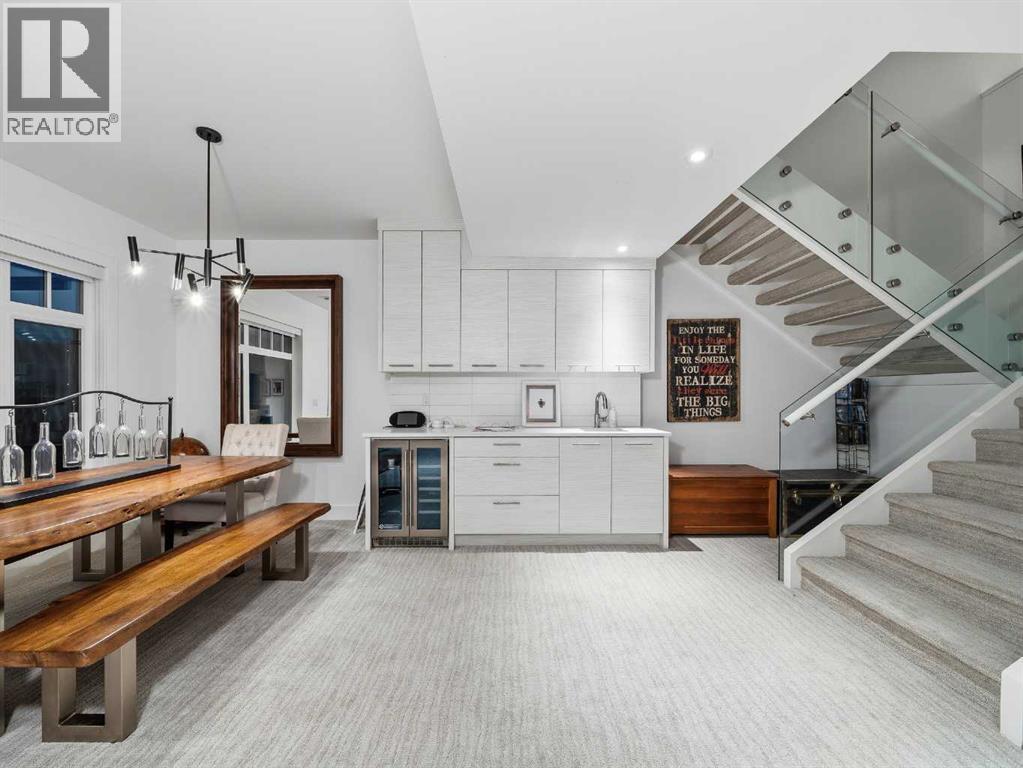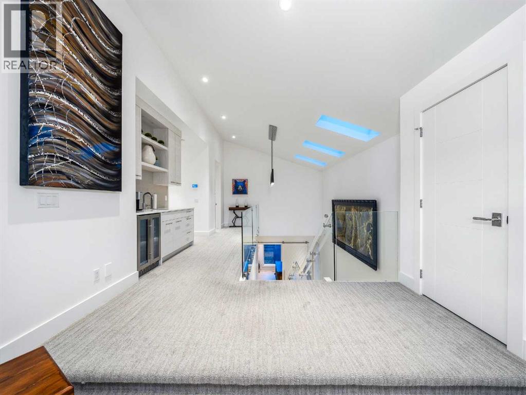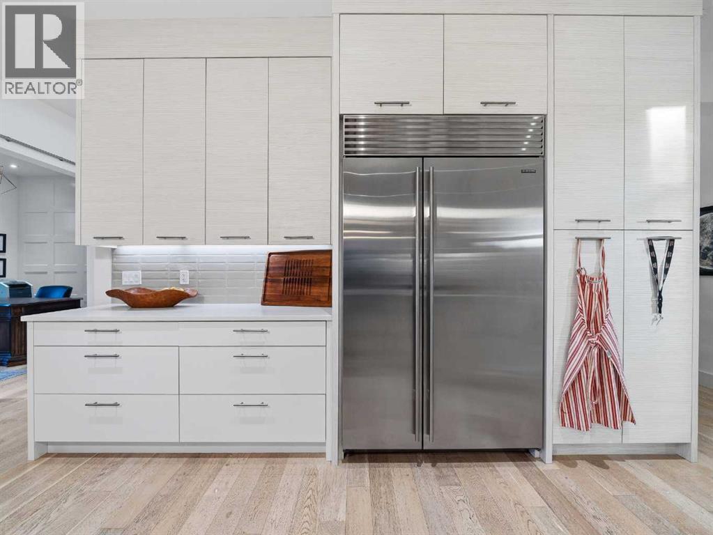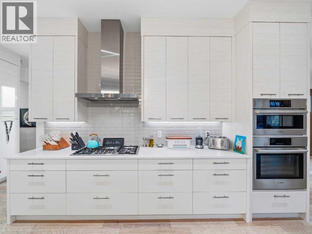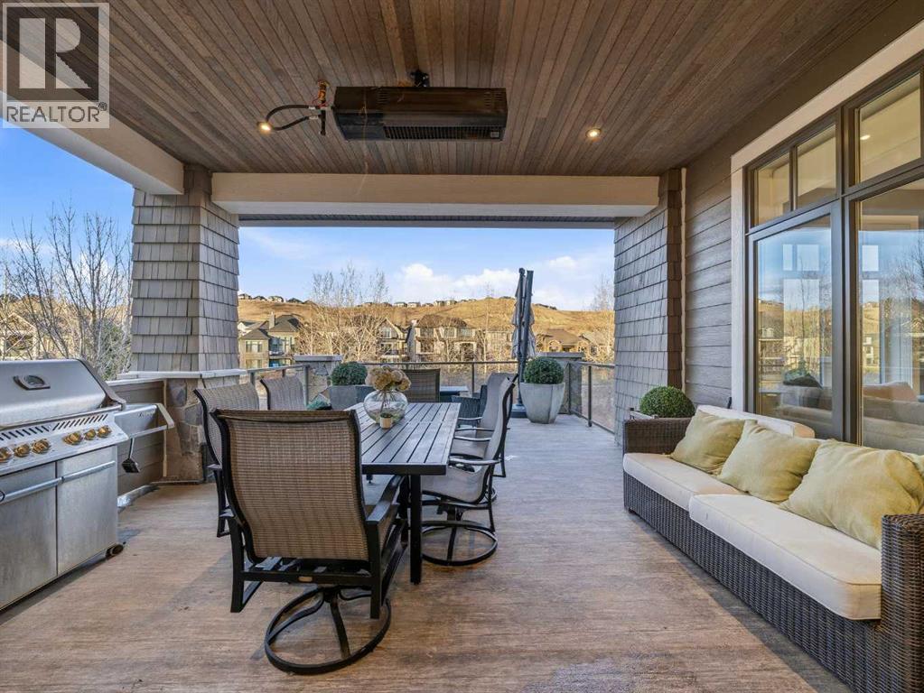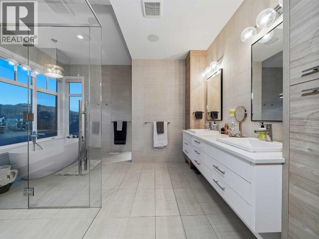 Welcome to a truly exceptional masterpiece (just under 5000 sq.ft of developed space), a 2-storey WALKOUT by Rockcreek Homes, perfectly positioned in the highly sought-after community of Riverstone in Cranston. Featuring an OVERSIZED TRIPLE ATTACHED GARAGE with IN-FLOOR HEATING, this home BACKS onto a stunning NATURAL RESERVE with a creek, rolling hills, pathway systems, and is just steps to the Bow River—offering a rare opportunity to own in one of Calgary’s most scenic and exclusive locations.Designed specifically for this lot (7500+ sq.ft), the home showcases a bright and expansive layout with soaring ceilings and oversized windows that capture the surrounding views. The main living area is anchored by a striking FLOOR-TO-CEILING STONE FIREPLACE, creating a warm yet upscale focal point, while the open-concept design flows effortlessly into the dining space and CHEF-INSPIRED KITCHEN. There is also a dining area with access to the covered, heated deck/patio overlooking the ravine, as well as a private office. The kitchen features custom cabinetry, premium (SUB ZERO, BOSCH) stainless steel appliances including a gas cooktop and built-in wall ovens, and a clean, modern aesthetic that blends contemporary and transitional design. Every detail has been thoughtfully selected, with layers of light tones and high-end finishes carried throughout the home. Upstairs, you will find 3 LARGE BEDROOMS, each uniquely designed, including a stunning primary retreat with beautiful views and a spa-inspired ensuite complete with dual vanities, a freestanding soaker tub, and a glass shower. There is also a large SOUTH-FACING FAMILY/BONUS ROOM, another 5PC bathroom, a laundry room, and a wet bar. The fully finished lower WALKOUT level offers a spacious RECREATION/ENTERTAINMENT ROOM, a 4TH BEDROOM, a full bathroom, a custom WET BAR with built-in cabinetry, and a fully enclosed glass HOME GYM—an incredibly rare and impressive addition. There is also access to a covered patio an d a beautifully landscaped backyard. Additional upgrades include IN-FLOOR HEATING in the basement, CENTRAL A/C, elevator rough-in, and a modern open staircase with glass railing. Often referred to as “Calgary’s best-kept secret,” this premier estate community is nestled along Fish Creek Park and the Bow River, and features countless trails and parks. Conveniently located just minutes from South Health Campus, Seton YMCA, numerous schools, restaurants, shopping centres, and more. Book your private viewing NOW! (id:51989)
