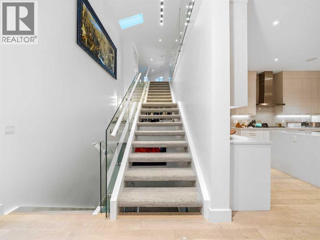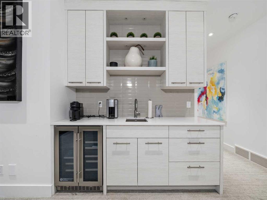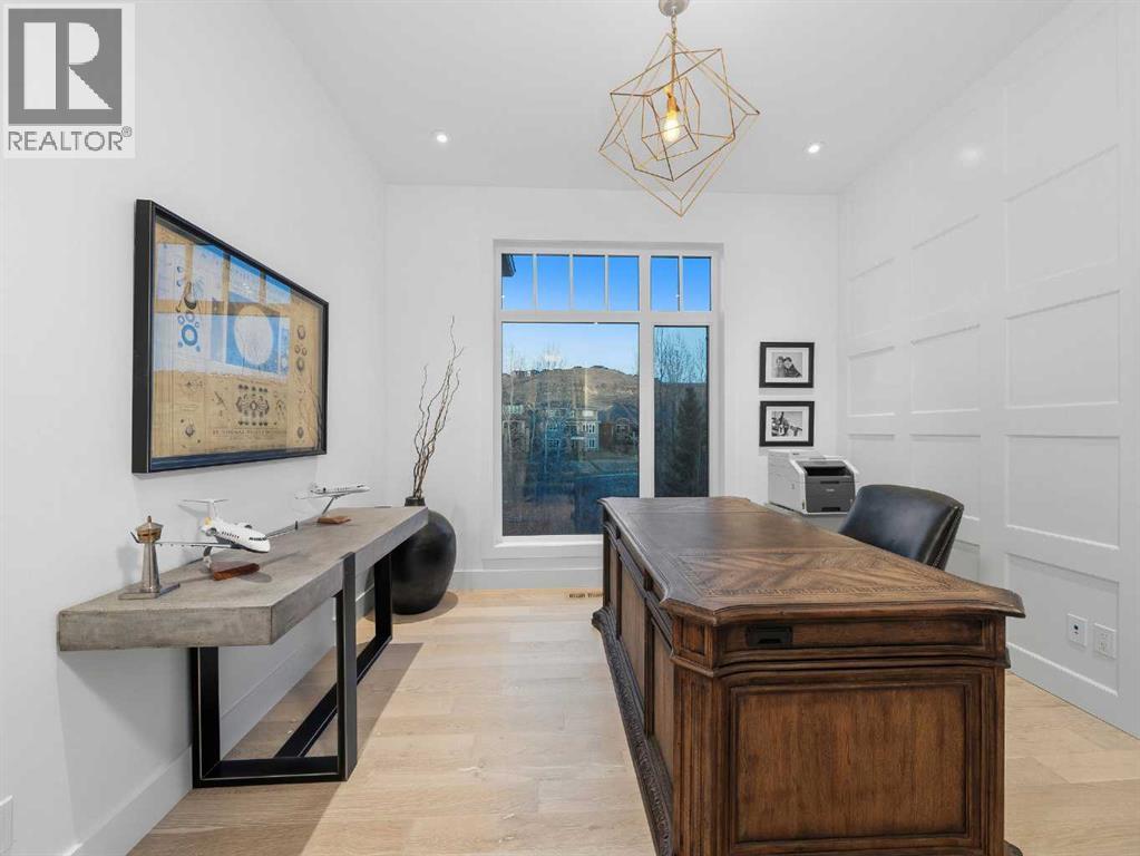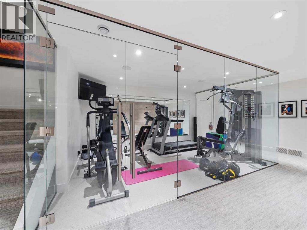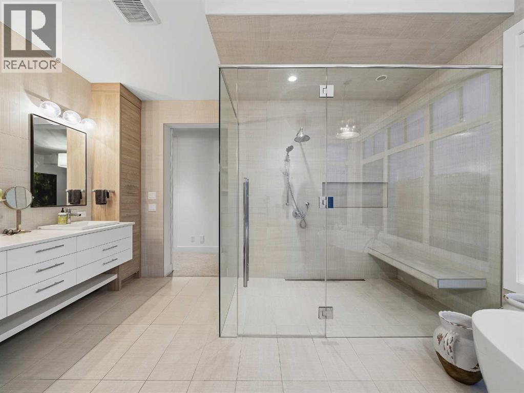 Welcome to a truly exceptional masterpiece (just under 5000 sq.ft of developed space), a 2-storey WALKOUT by Rockcreek Homes, perfectly positioned in the highly sought-after community of Riverstone in Cranston. Featuring an OVERSIZED TRIPLE ATTACHED GARAGE with IN-FLOOR HEATING, this home BACKS onto a stunning NATURAL RESERVE with a creek, rolling hills, pathway systems, and is just steps to the Bow River—offering a rare opportunity to own in one of Calgary’s most scenic and exclusive locations.Designed specifically for this lot (7500+ sq.ft), the home showcases a bright and expansive layout with soaring ceilings and oversized windows that capture the surrounding views. The main living area is anchored by a striking FLOOR-TO-CEILING STONE FIREPLACE, creating a warm yet upscale focal point, while the open-concept design flows effortlessly into the dining space and CHEF-INSPIRED KITCHEN. There is also a dining area with access to the covered, heated deck/patio overlooking the ravine, as well as a private office. The kitchen features custom cabinetry, premium (SUB ZERO, BOSCH) stainless steel appliances including a gas cooktop and built-in wall ovens, and a clean, modern aesthetic that blends contemporary and transitional design. Every detail has been thoughtfully selected, with layers of light tones and high-end finishes carried throughout the home. Upstairs, you will find 3 LARGE BEDROOMS, each uniquely designed, including a stunning primary retreat with beautiful views and a spa-inspired ensuite complete with dual vanities, a freestanding soaker tub, and a glass shower. There is also a large SOUTH-FACING FAMILY/BONUS ROOM, another 5PC bathroom, a laundry room, and a wet bar. The fully finished lower WALKOUT level offers a spacious RECREATION/ENTERTAINMENT ROOM, a 4TH BEDROOM, a full bathroom, a custom WET BAR with built-in cabinetry, and a fully enclosed glass HOME GYM—an incredibly rare and impressive addition. There is also access to a covered patio an d a beautifully landscaped backyard. Additional upgrades include IN-FLOOR HEATING in the basement, CENTRAL A/C, elevator rough-in, and a modern open staircase with glass railing. Often referred to as “Calgary’s best-kept secret,” this premier estate community is nestled along Fish Creek Park and the Bow River, and features countless trails and parks. Conveniently located just minutes from South Health Campus, Seton YMCA, numerous schools, restaurants, shopping centres, and more. Book your private viewing NOW! (id:51989)
